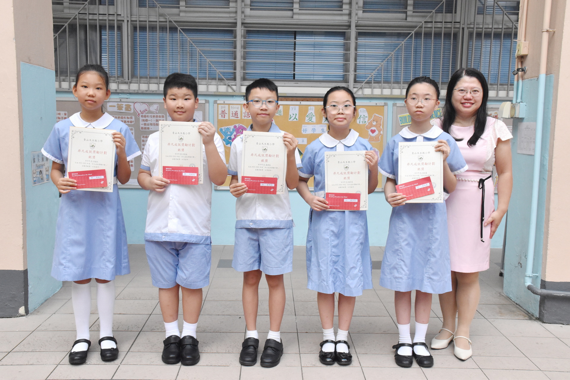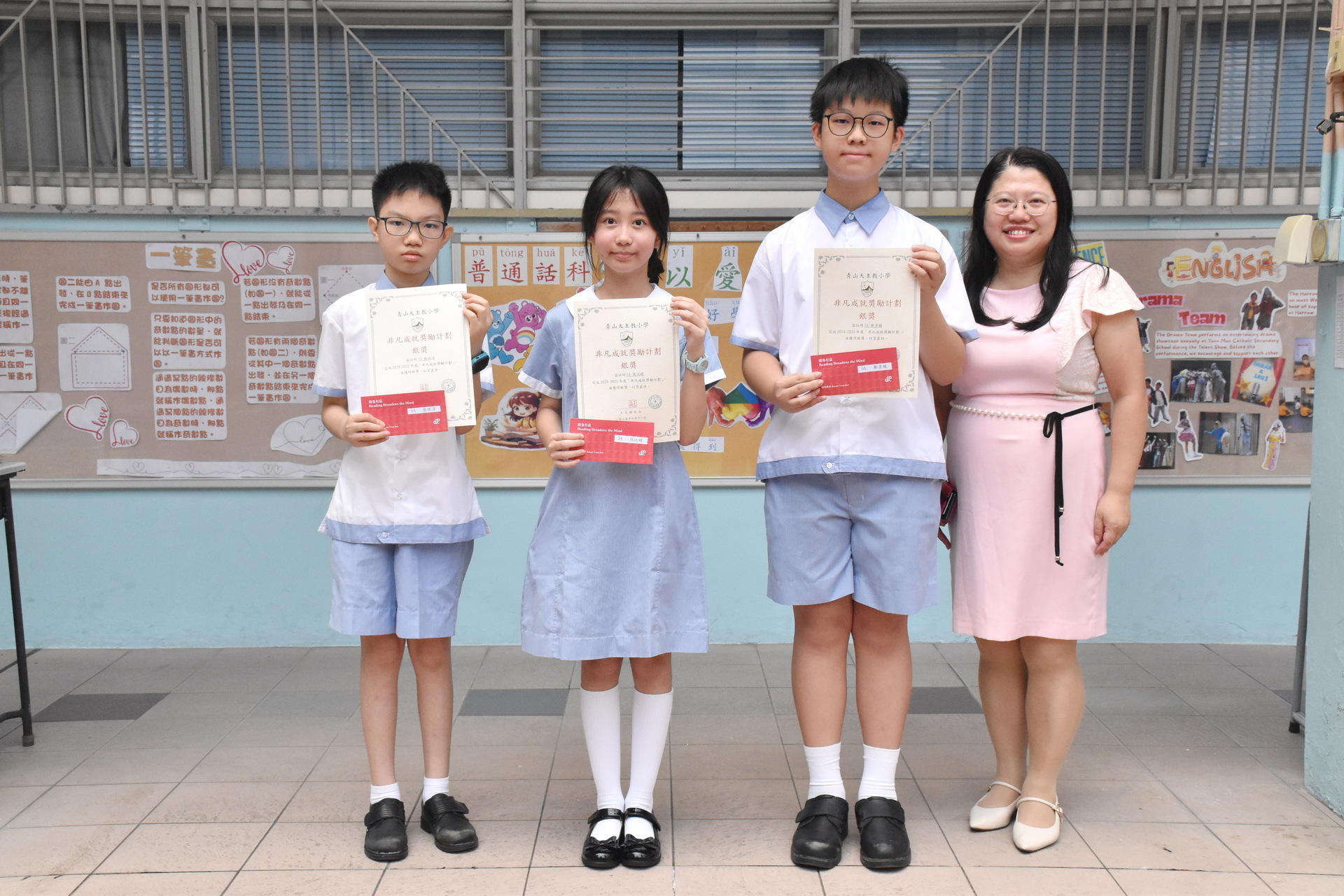 銀獎 | 1B陳效之、2C林浩軒、2C呂昊正、 2D王祉萱、3A黃子翀、3C勞浚喬、 3D何展樂、4A黃倍曼、4A賴沛苓、 4A雷梓悠、4B何峻逸、4B薛穎然、 5A鄭景駿、5A張諾淳、5A張沅晴、 6A陳巧心、6A廖學森、6B鍾詠進、 6B姜予晴、6B盧卓嵐、6B文躍希、 6D黃梓玲 |