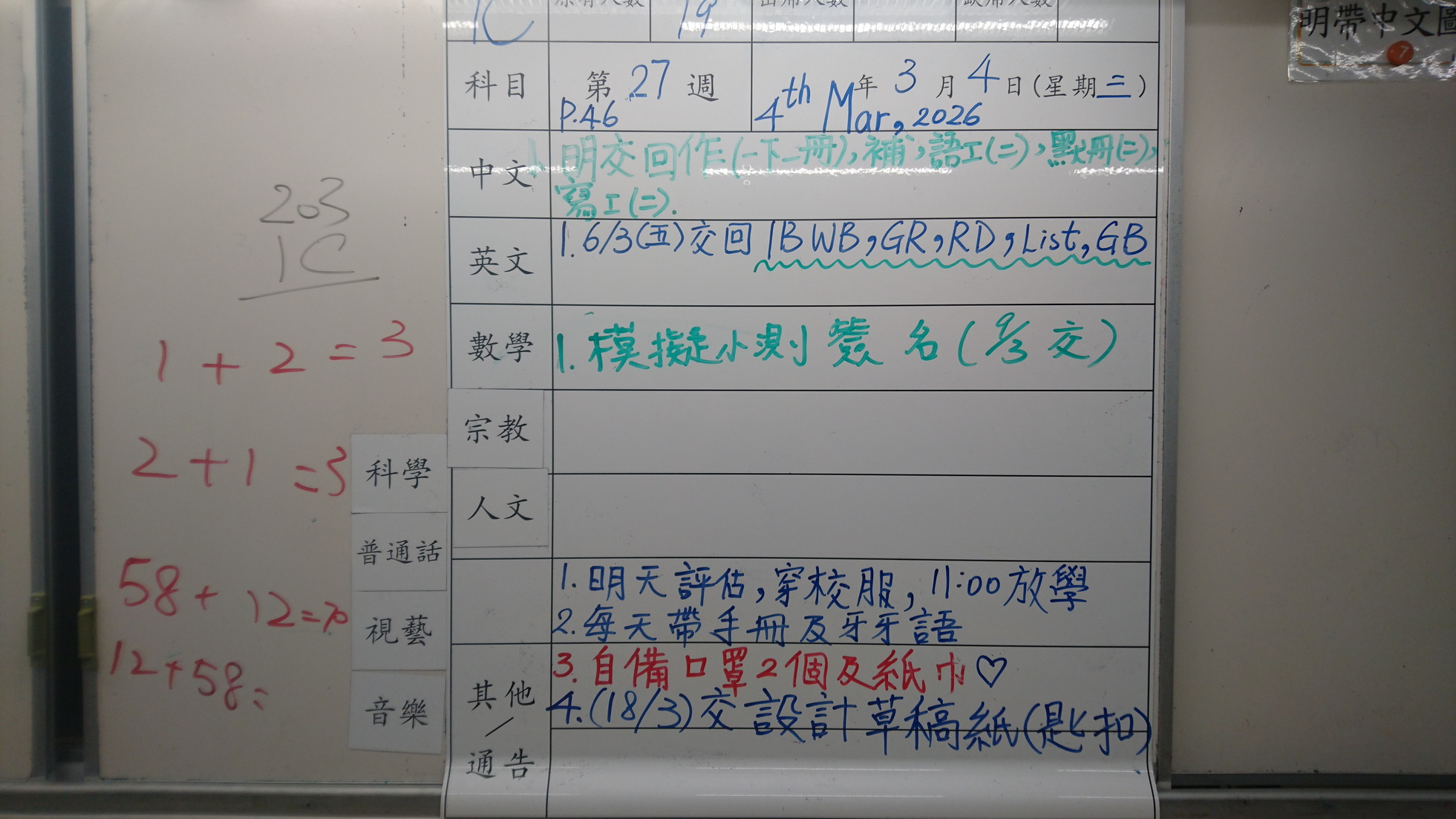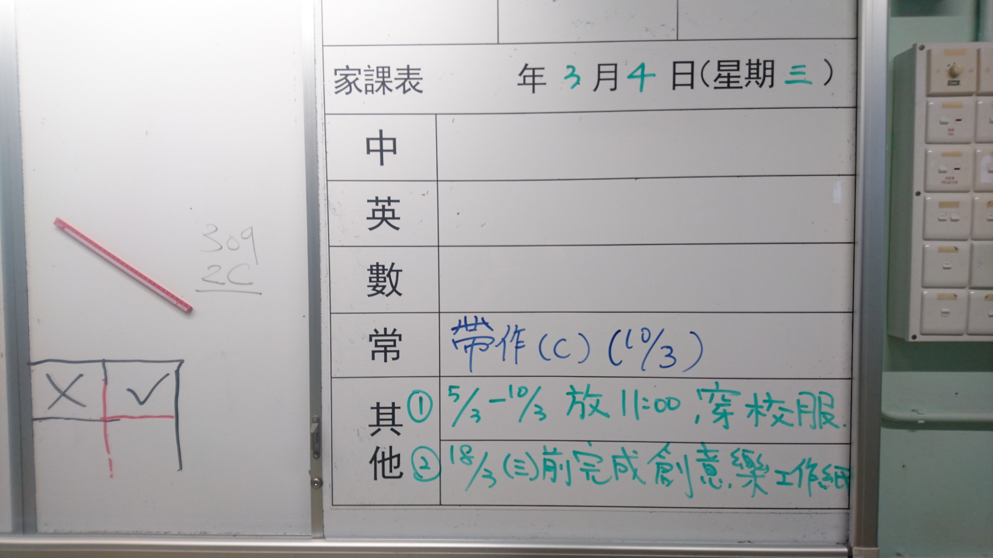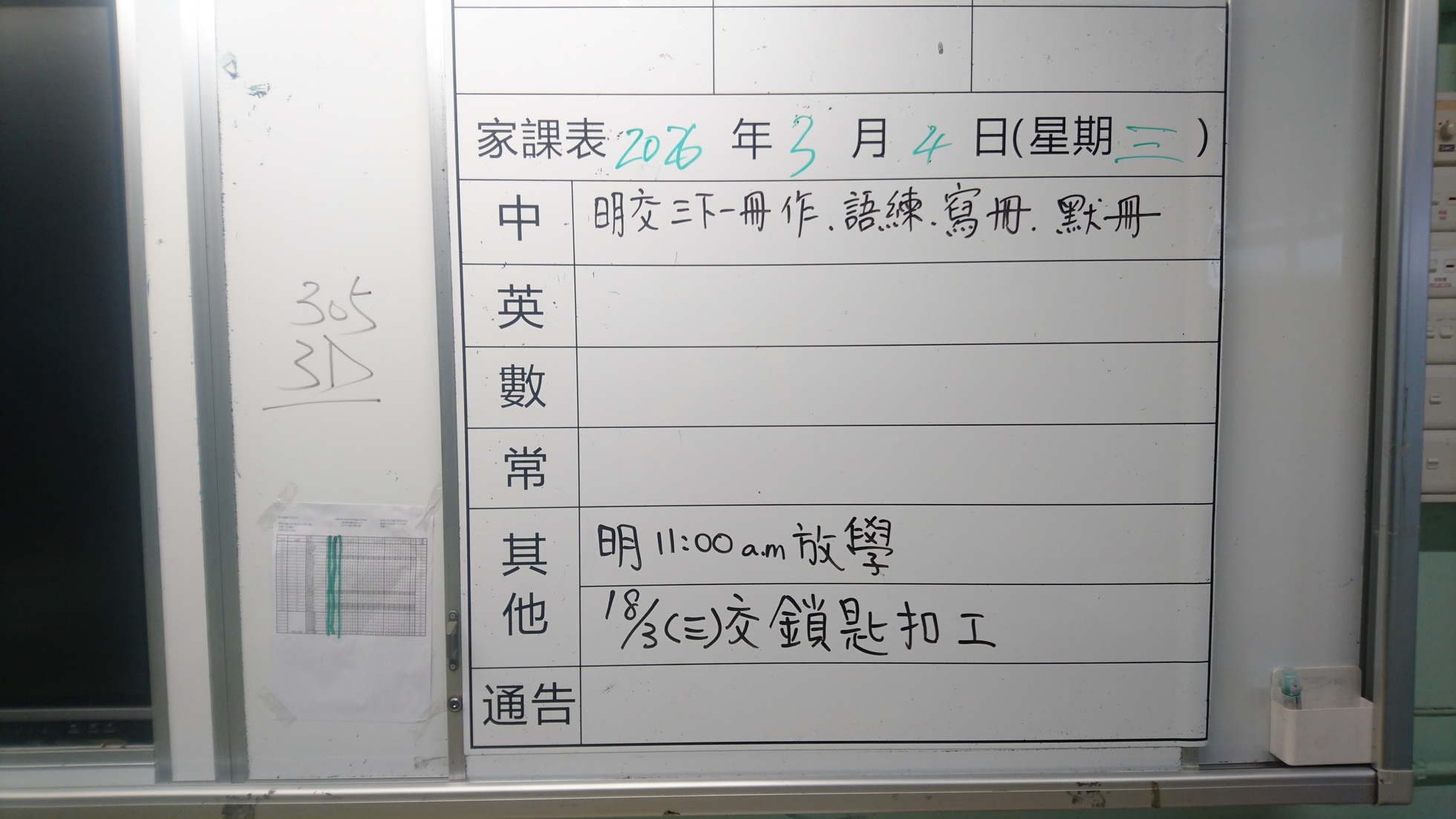 四年級家課代號表