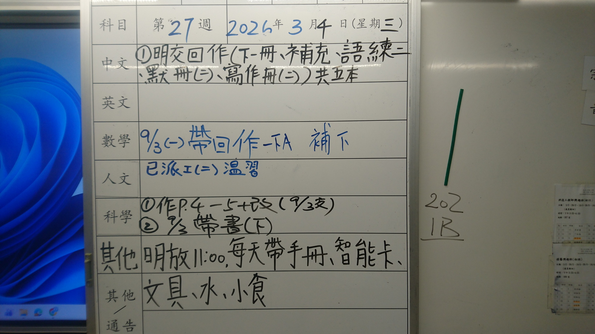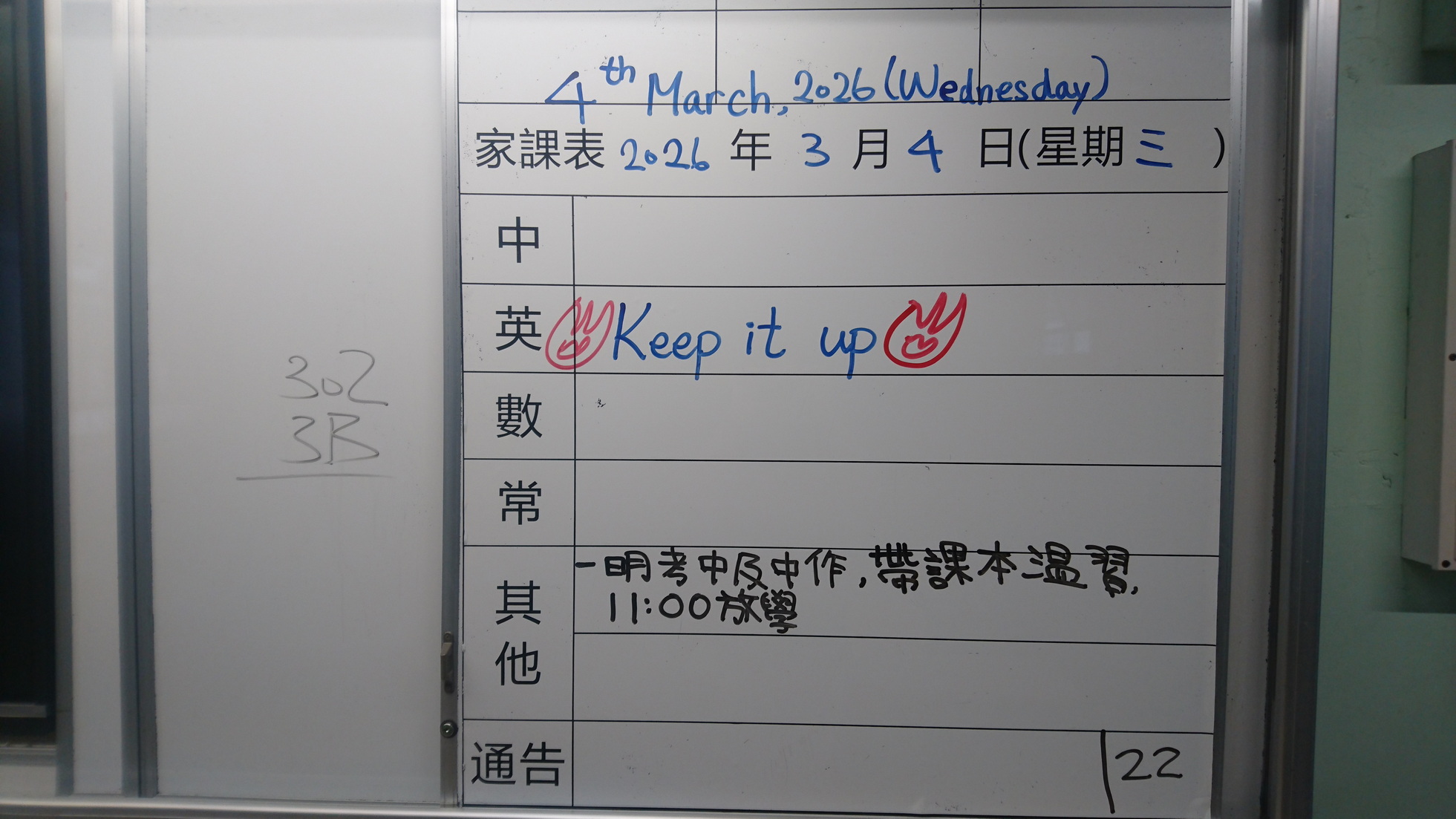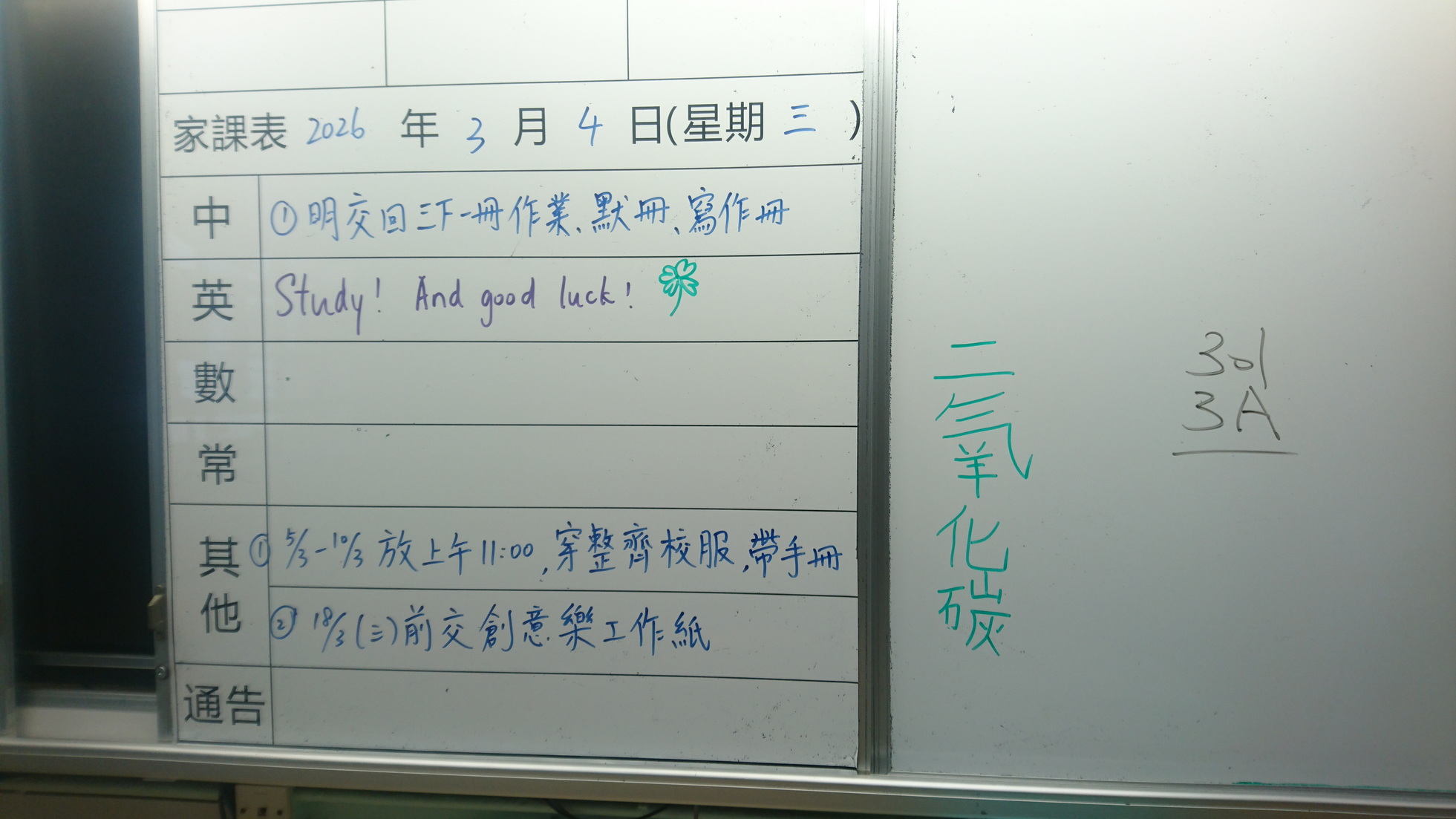 四年級家課代號表