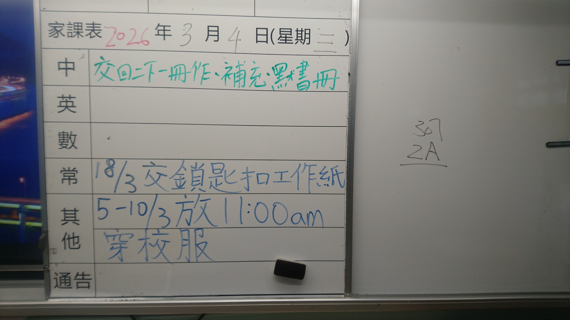 二至三年級家課代號表