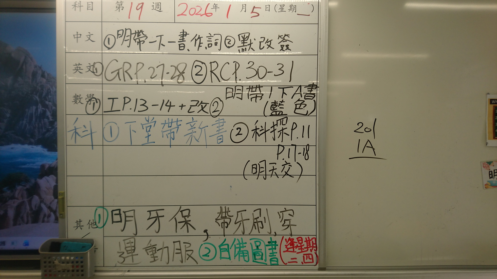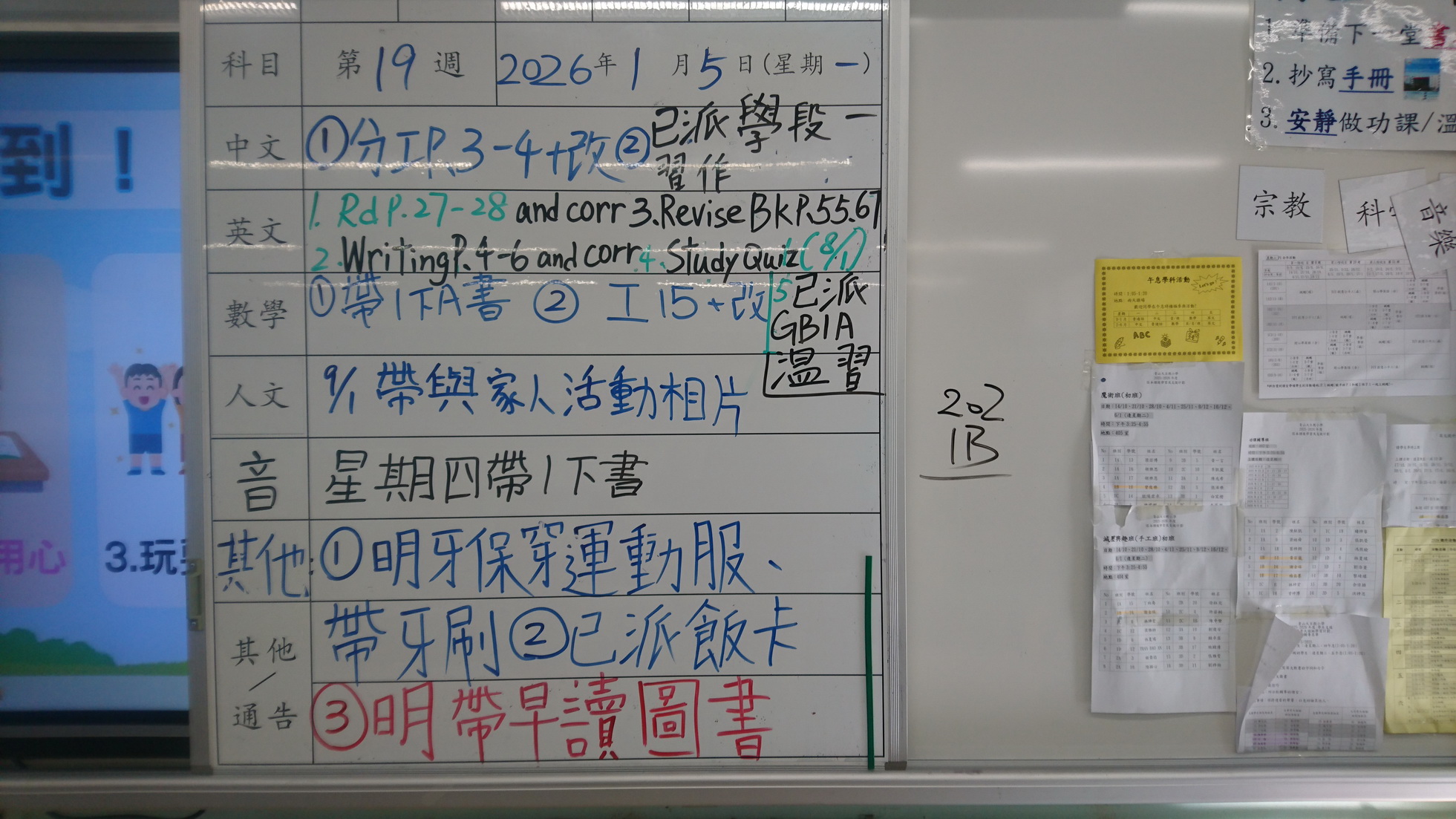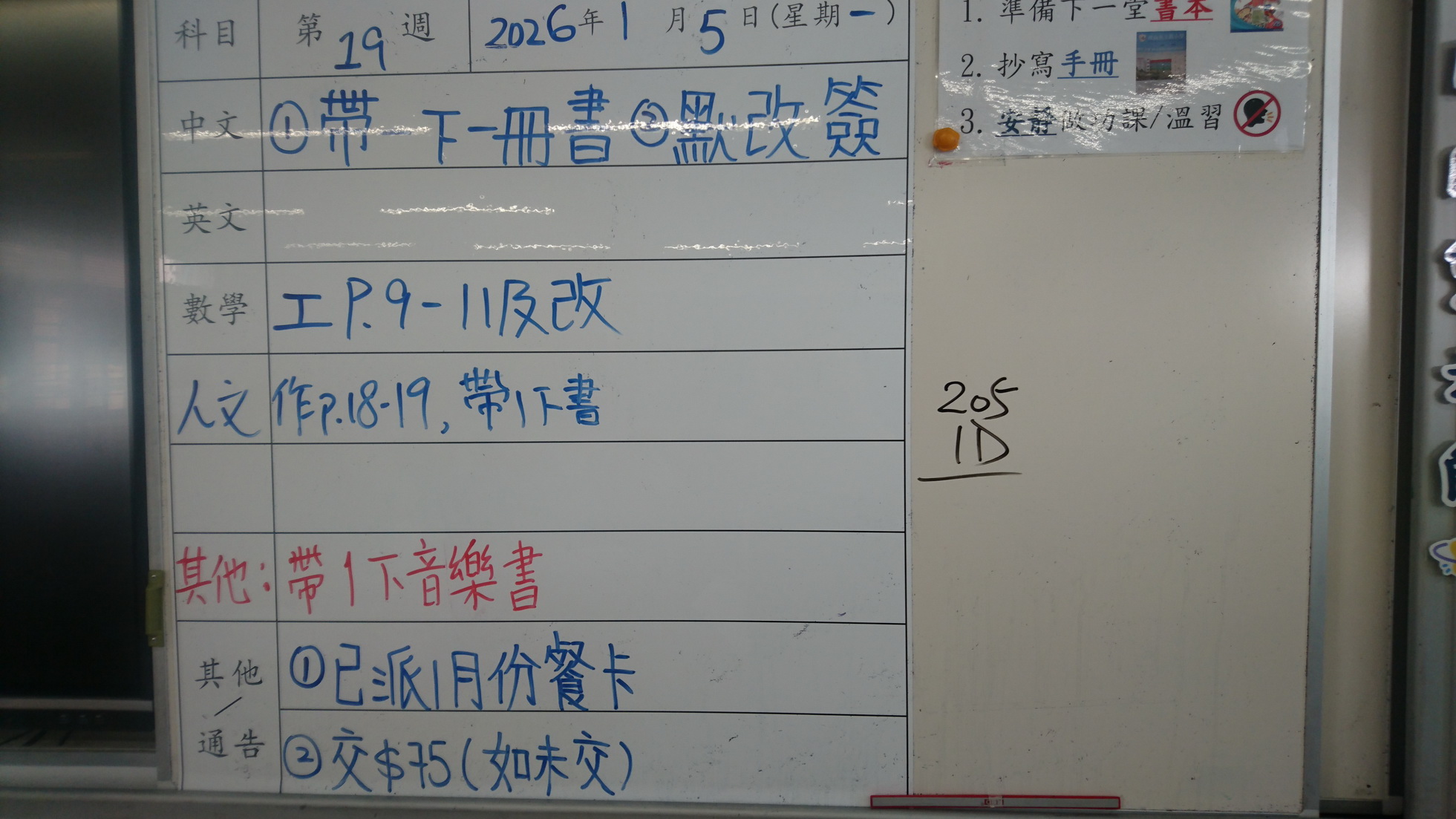 四年級家課代號表
