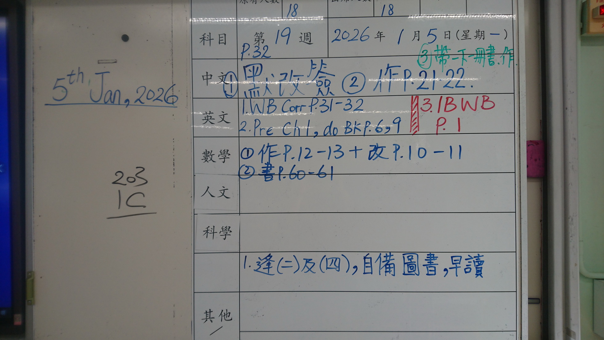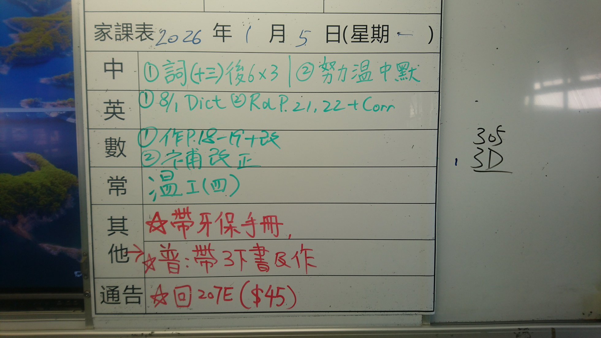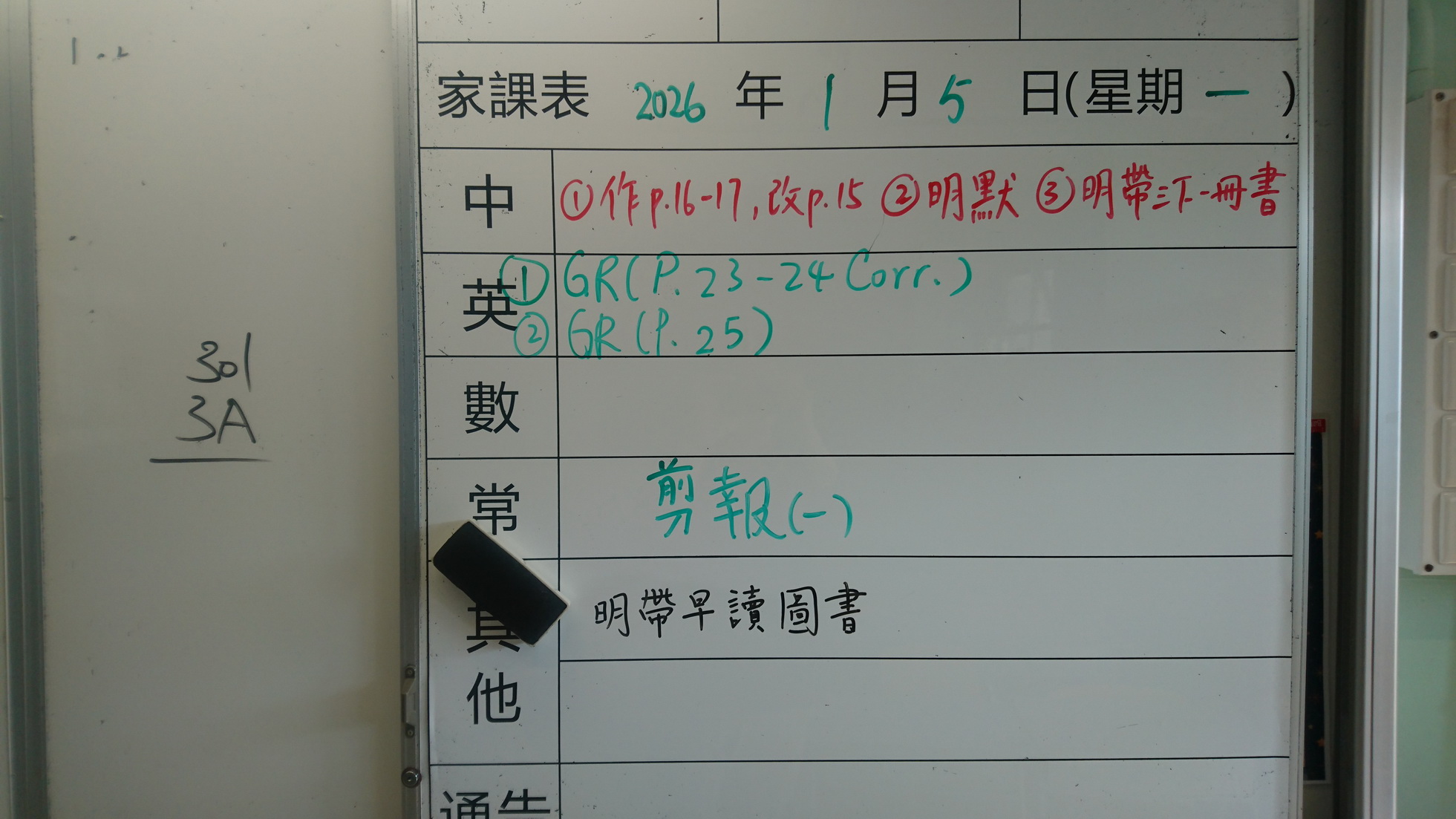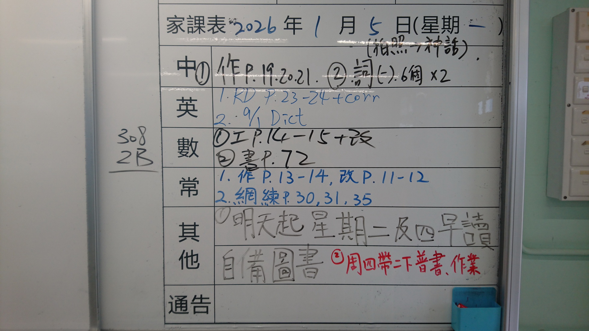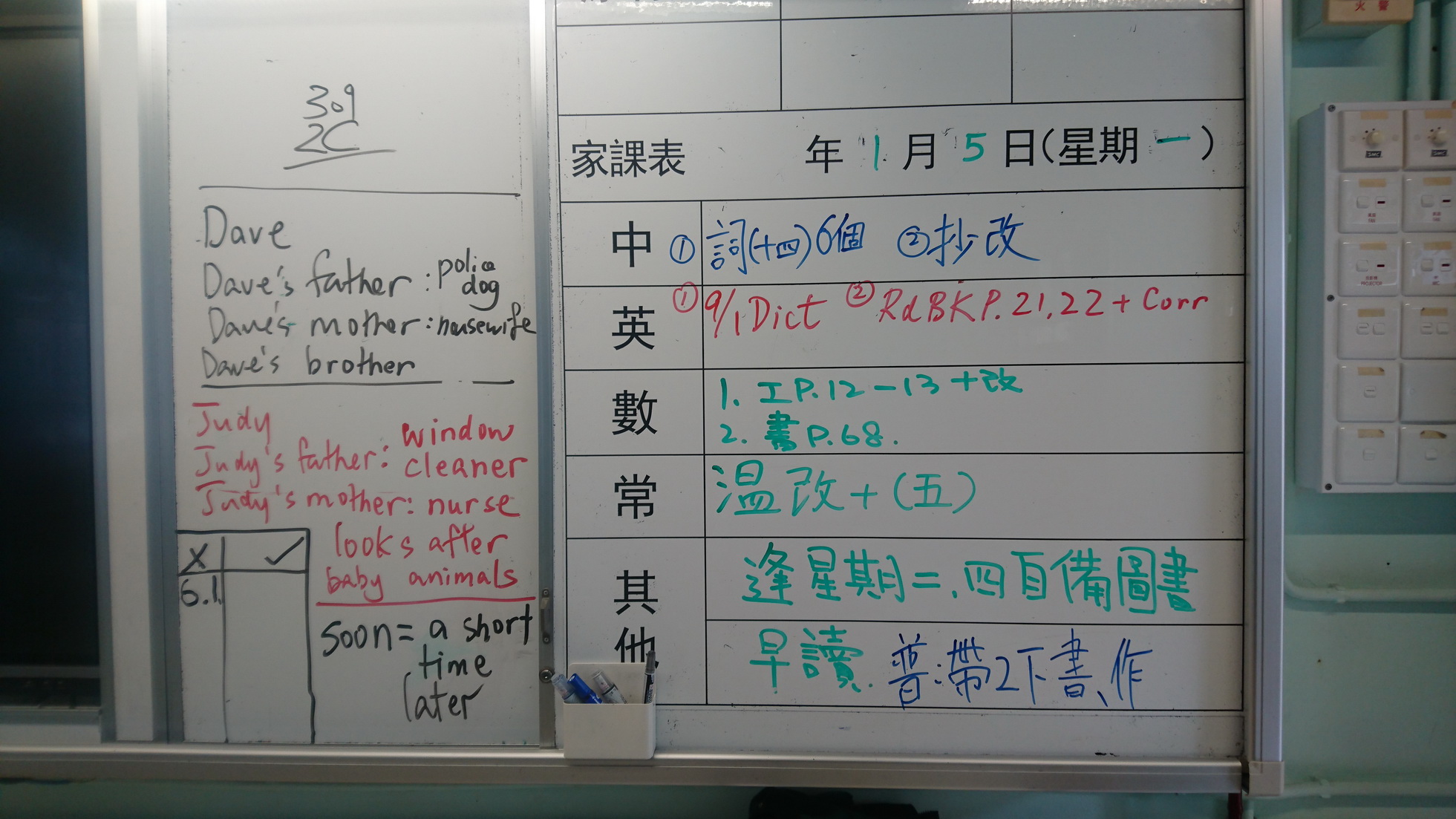 五至六年級家課代號表