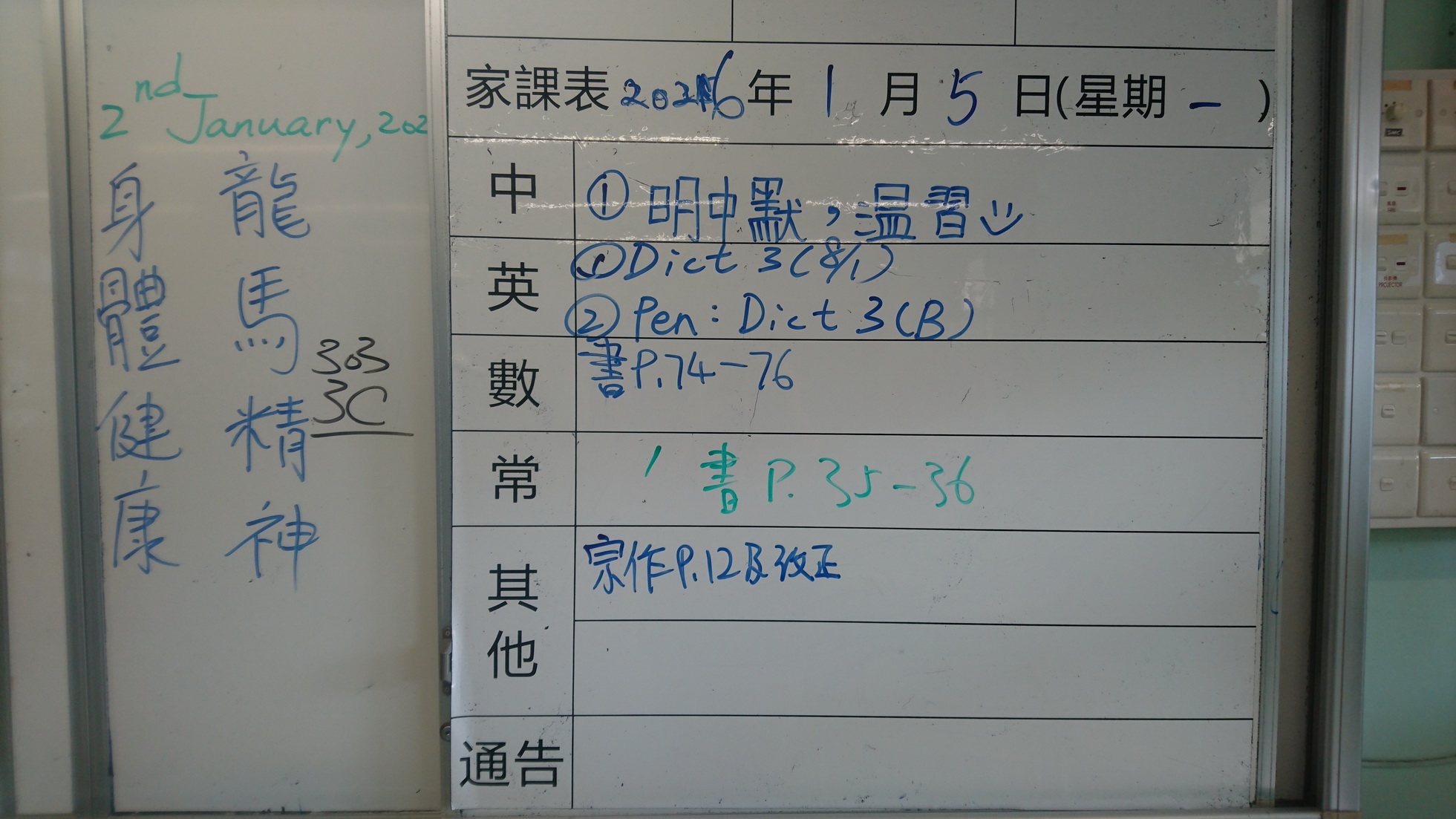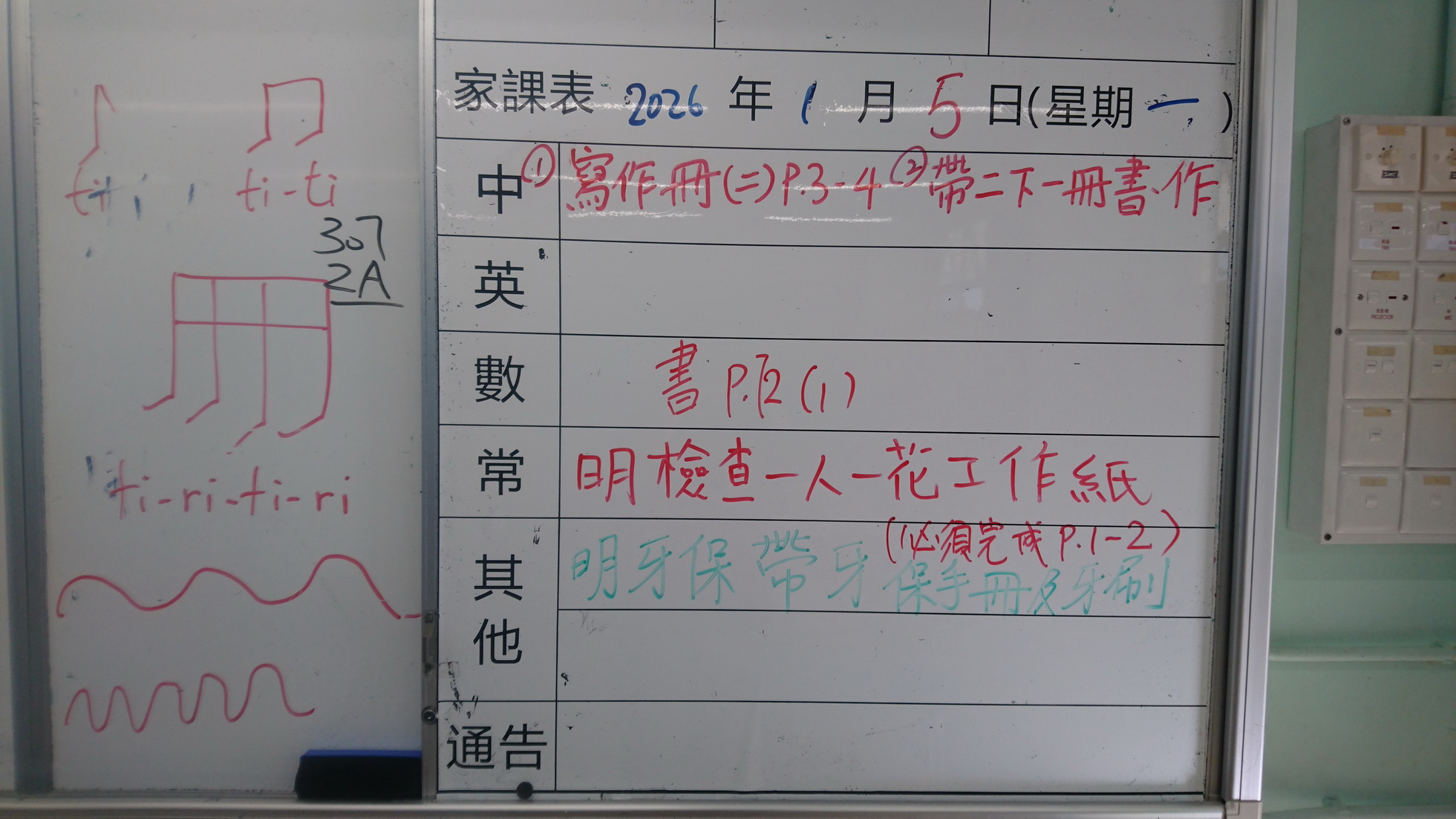 二至三年級家課代號表