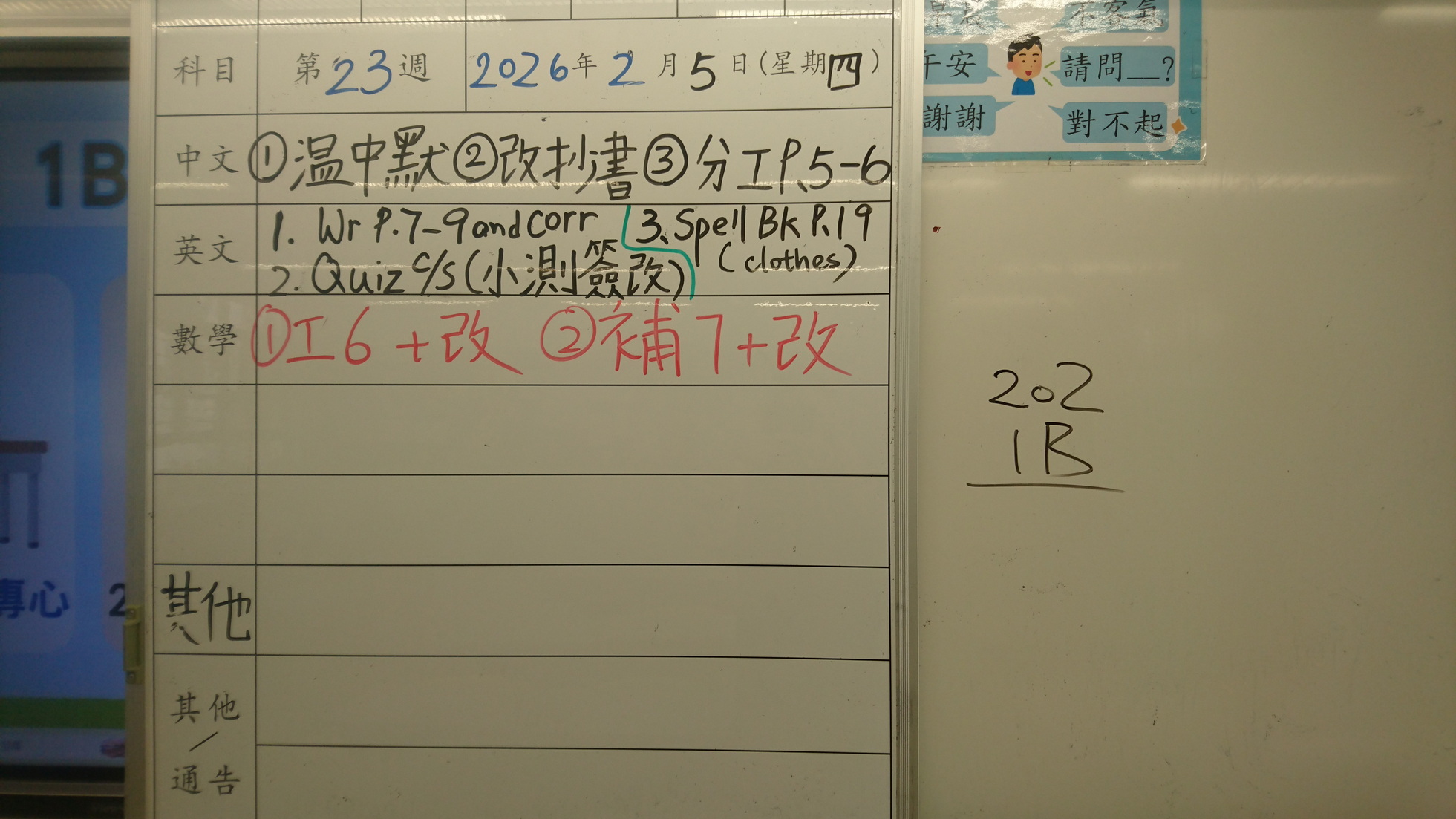 五至六年級家課代號表