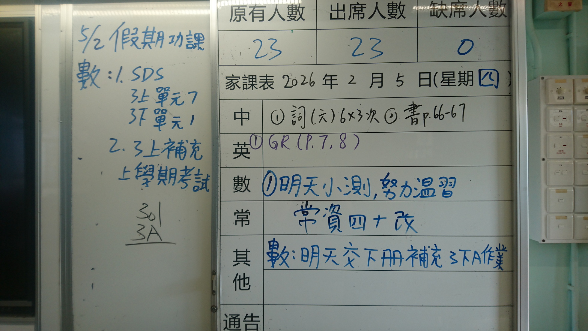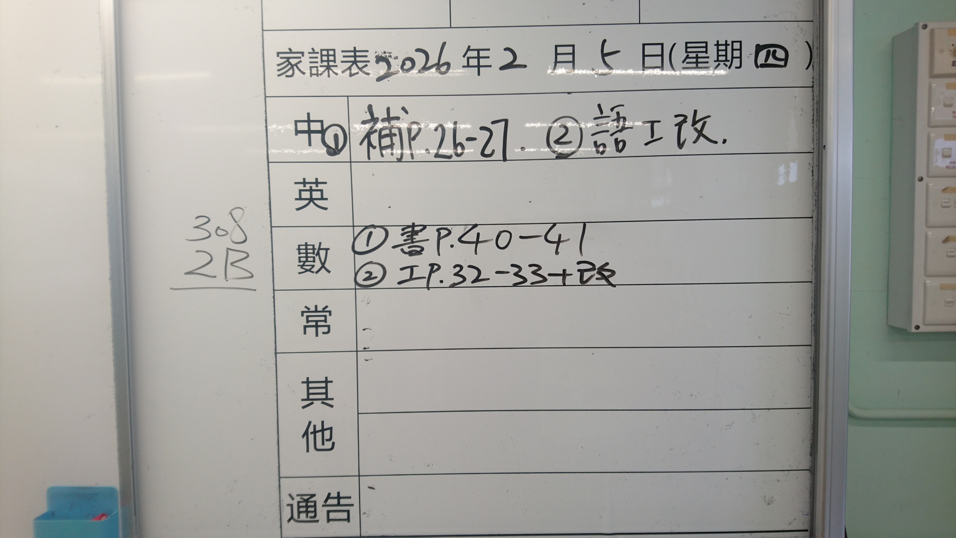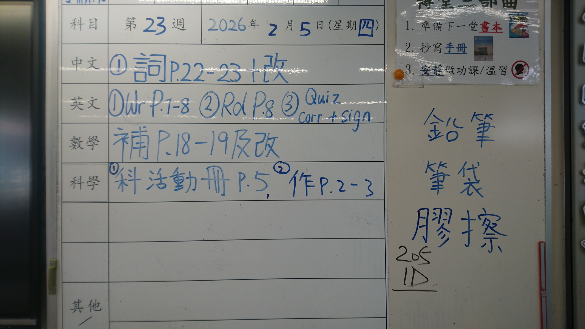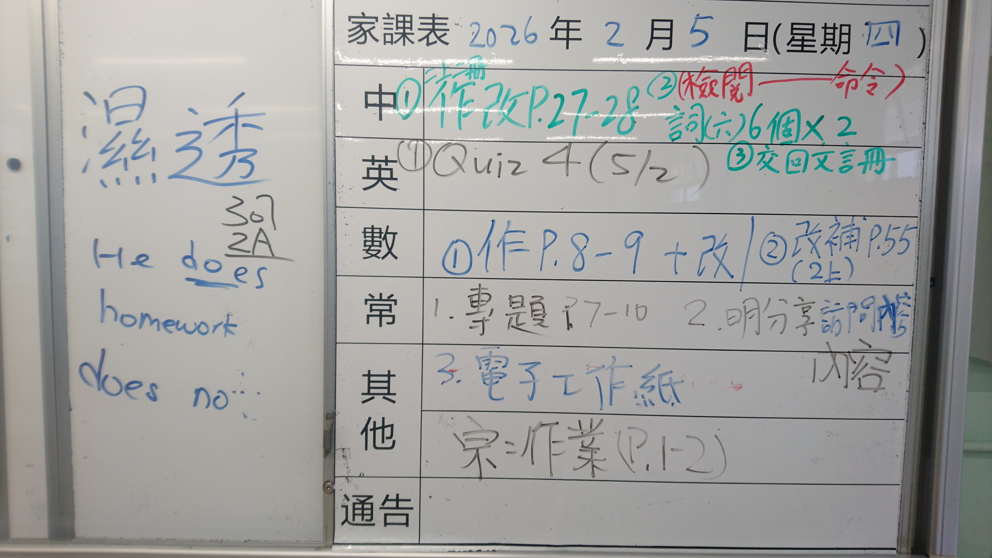 四年級家課代號表