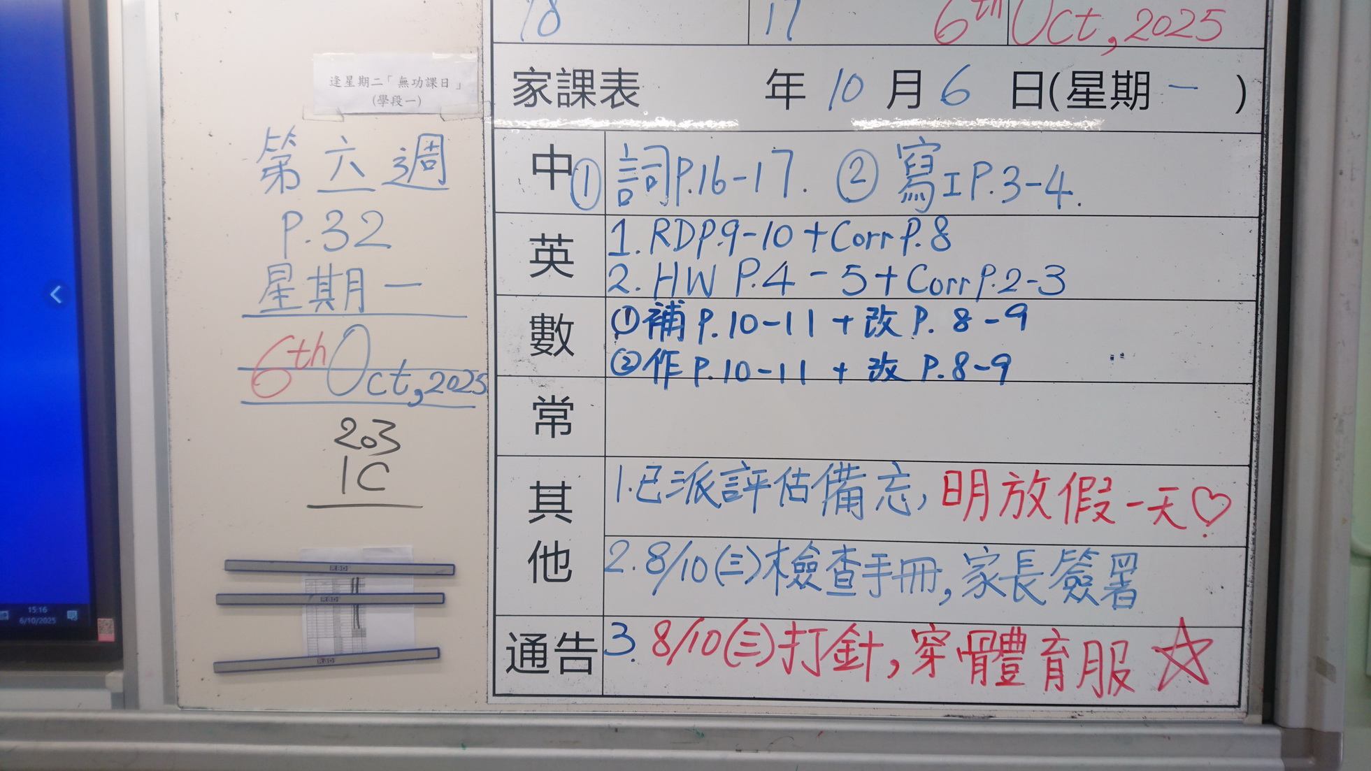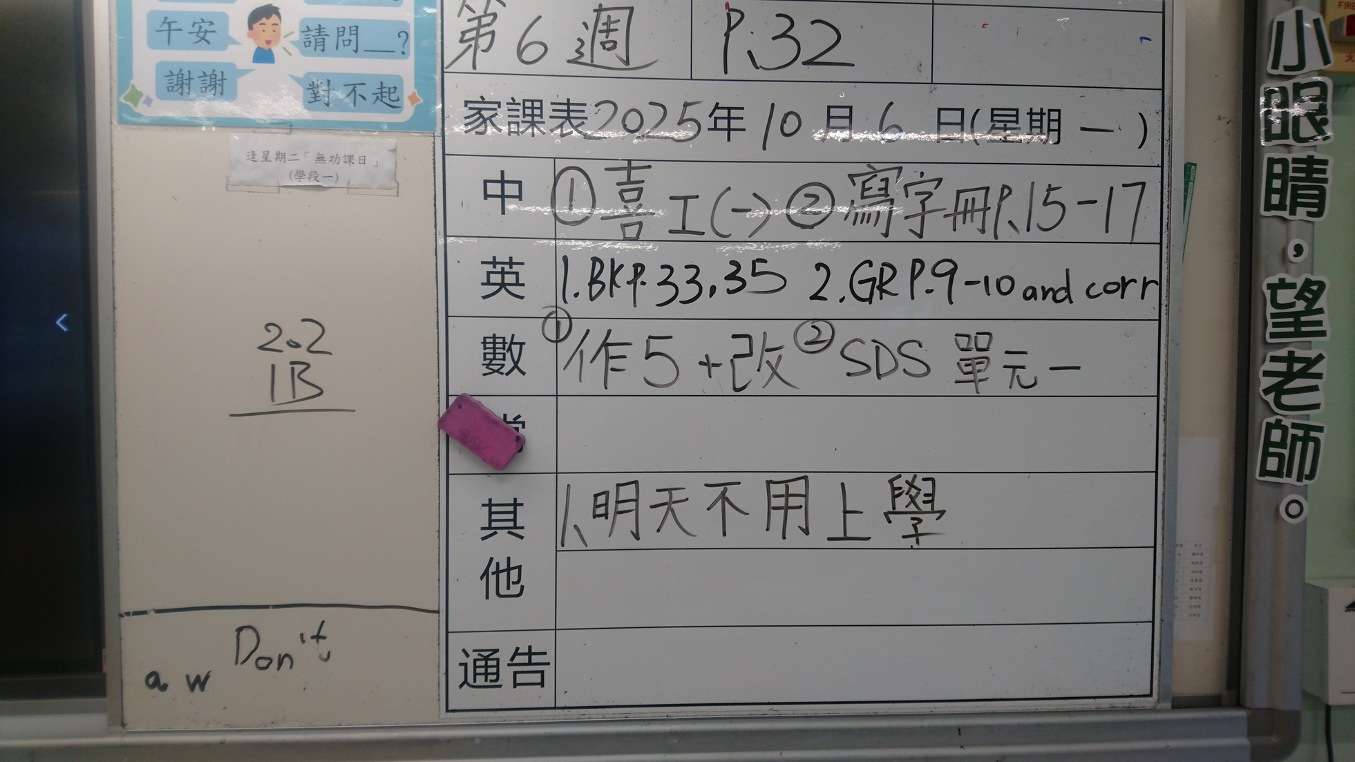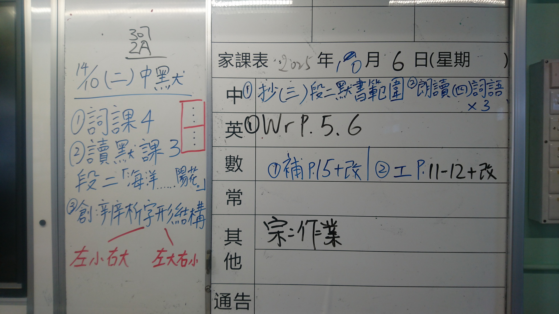 五至六年級家課代號表