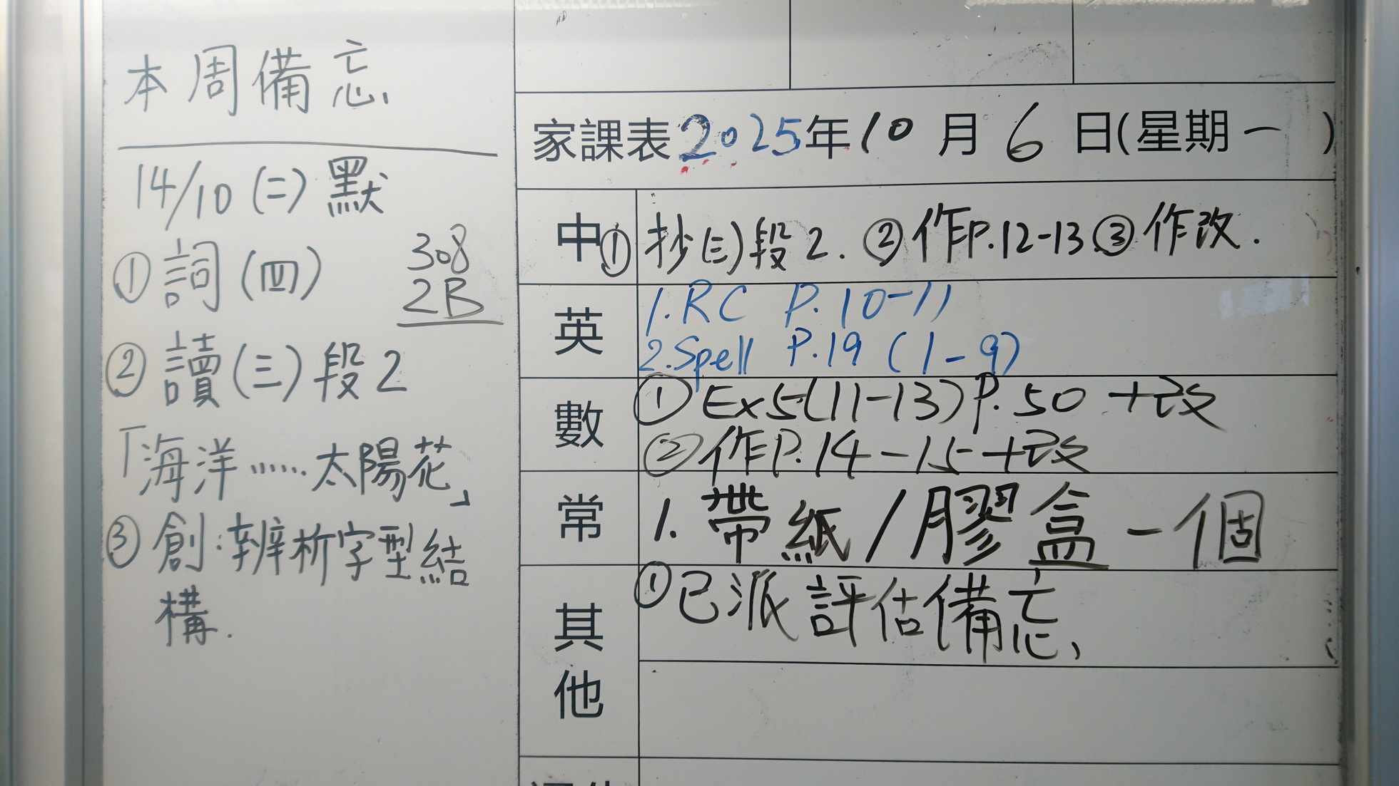 一年級家課代號表