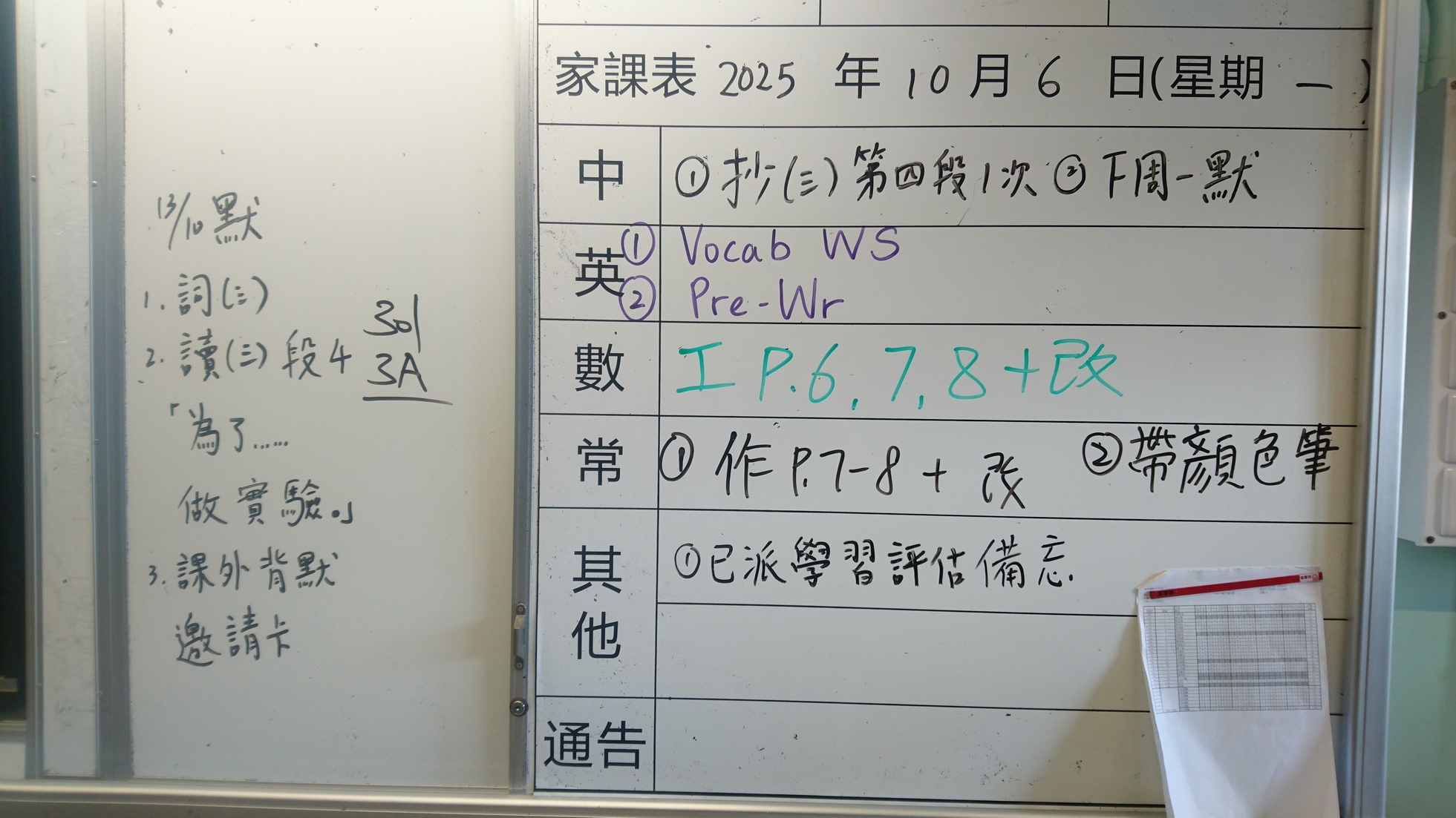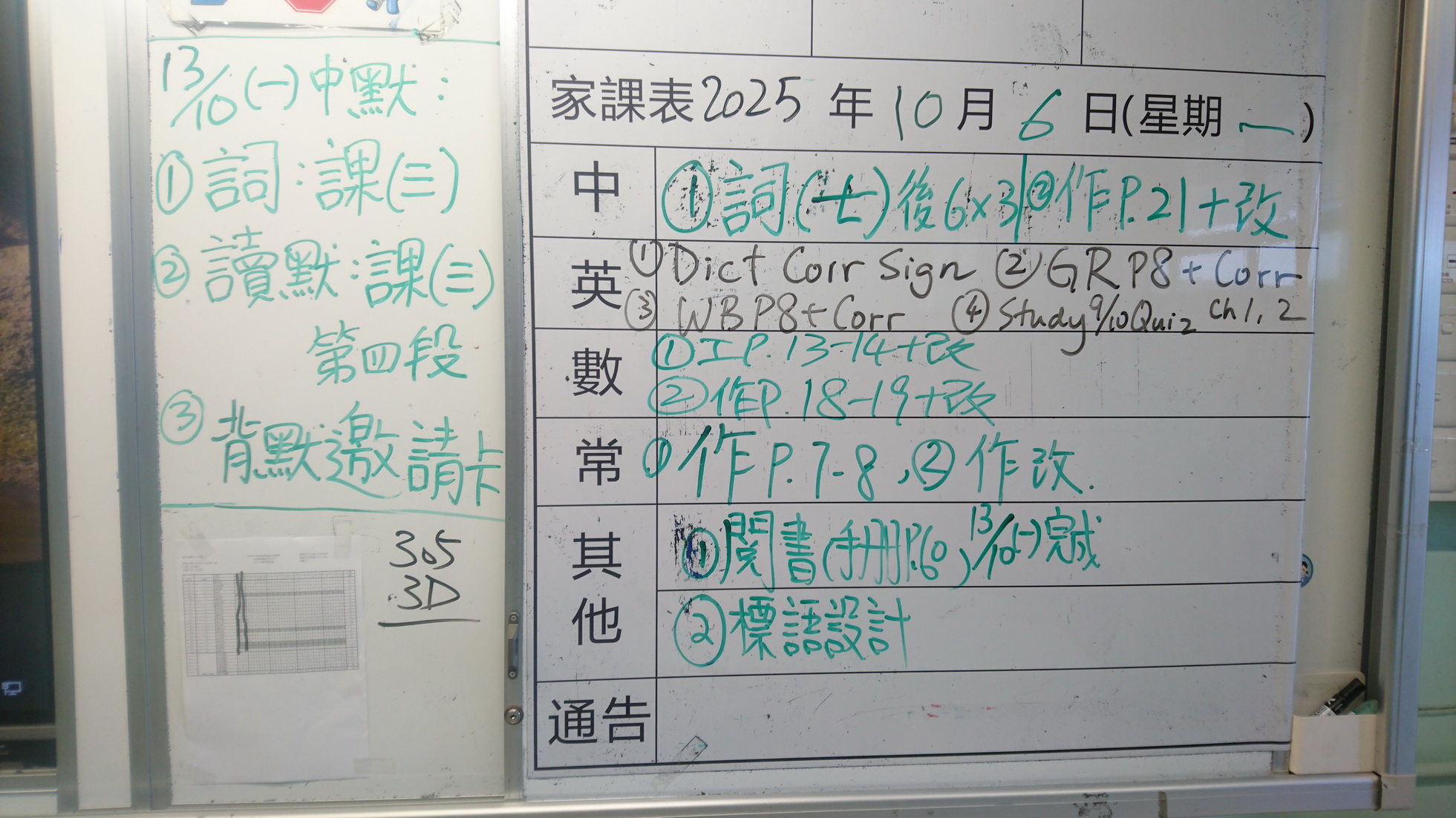 四年級家課代號表