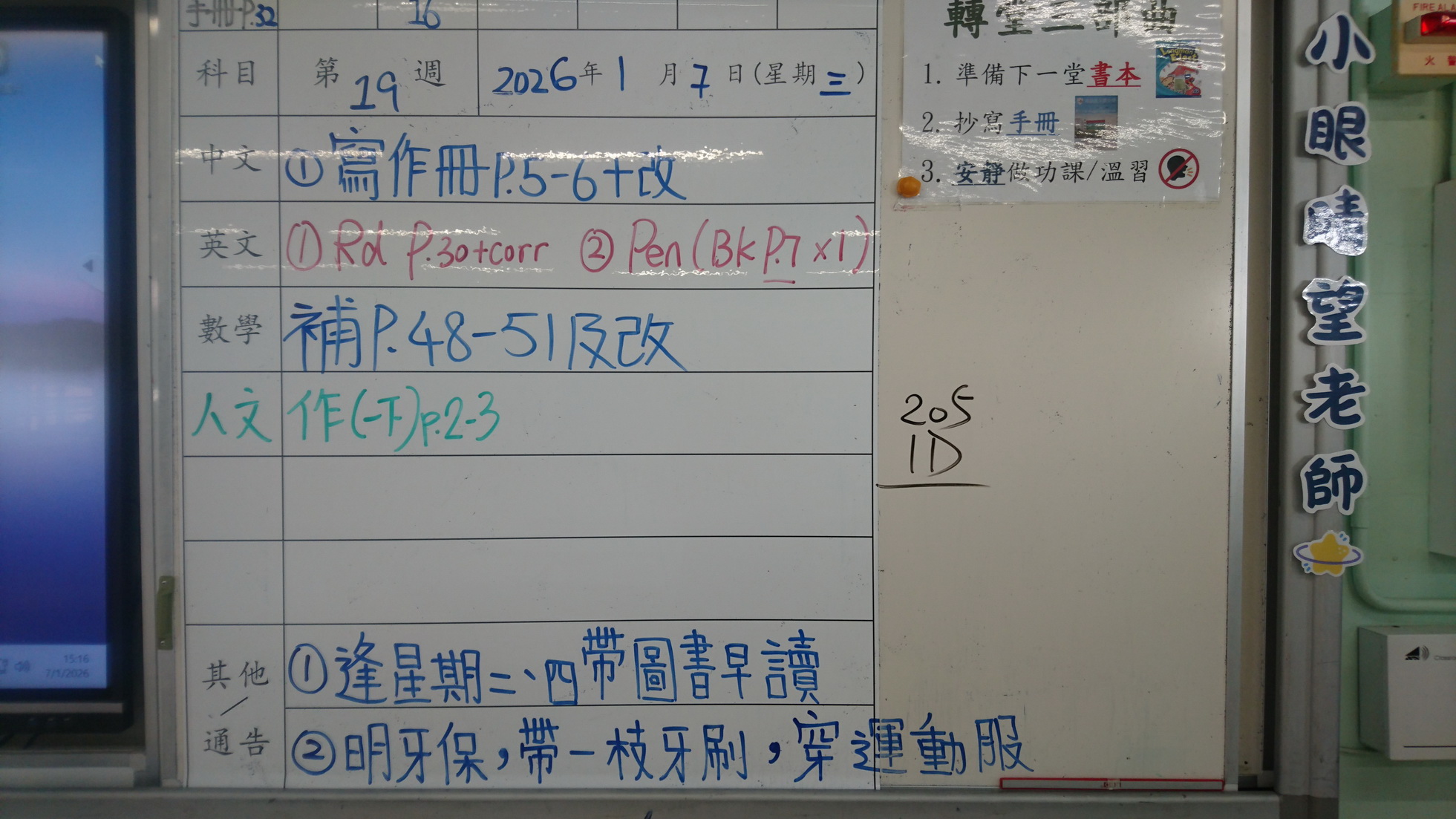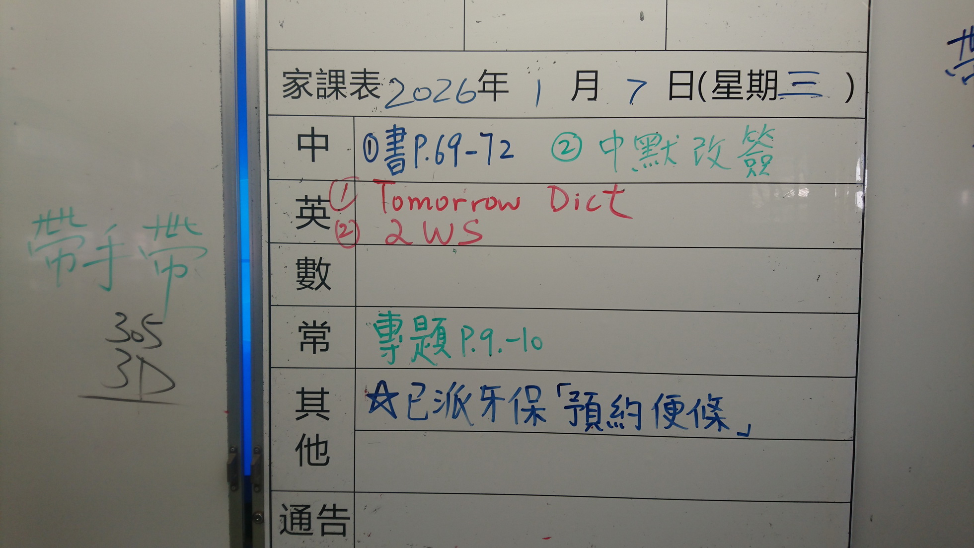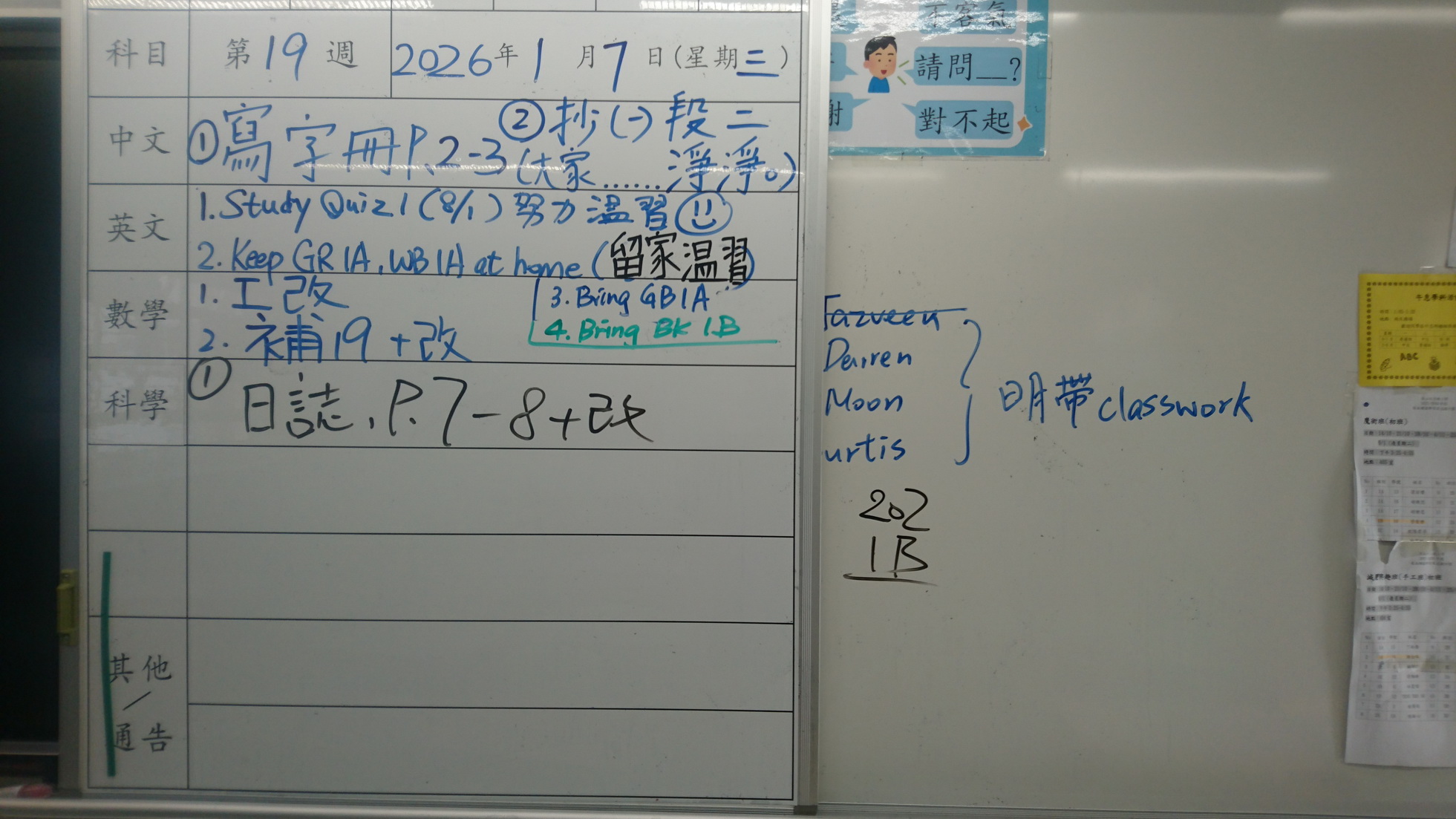 四年級家課代號表