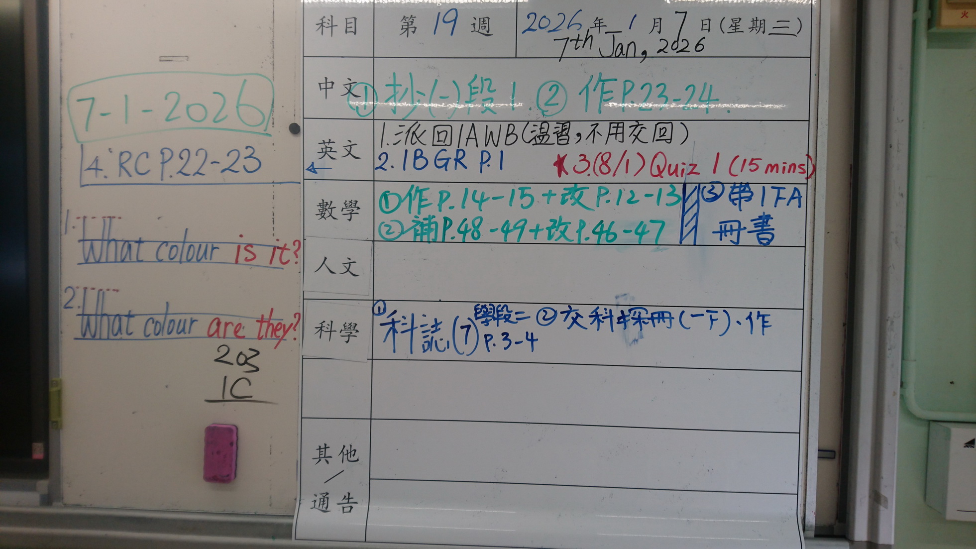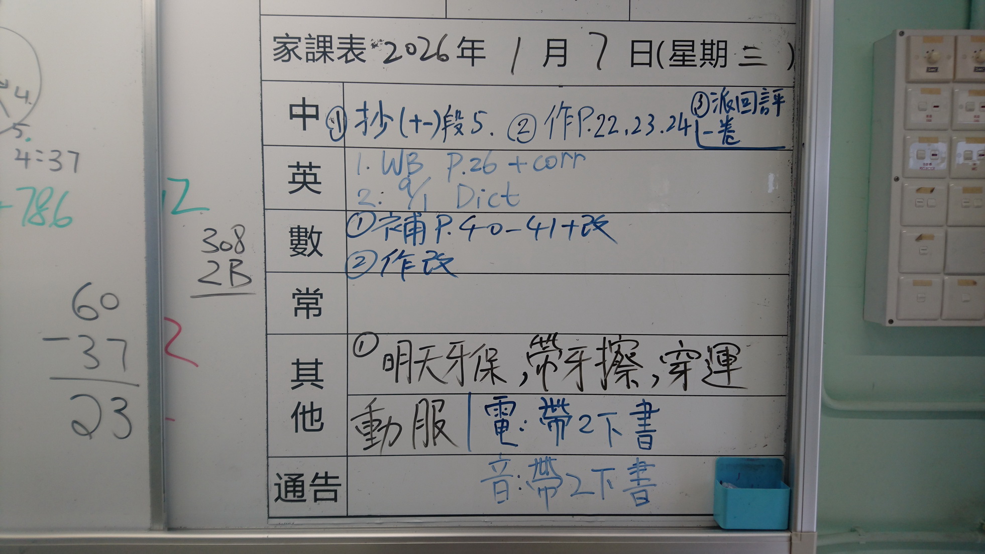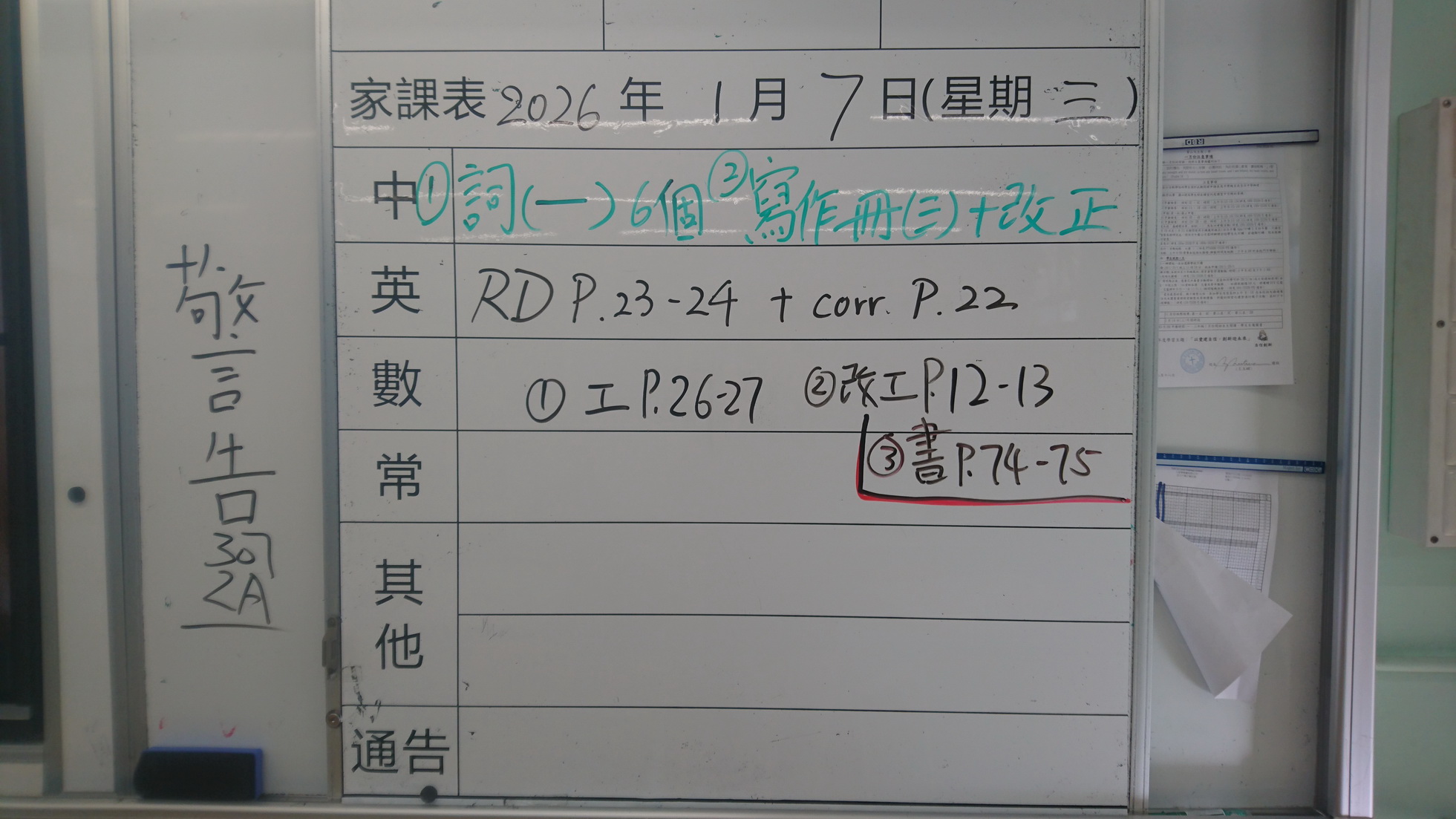 四年級家課代號表