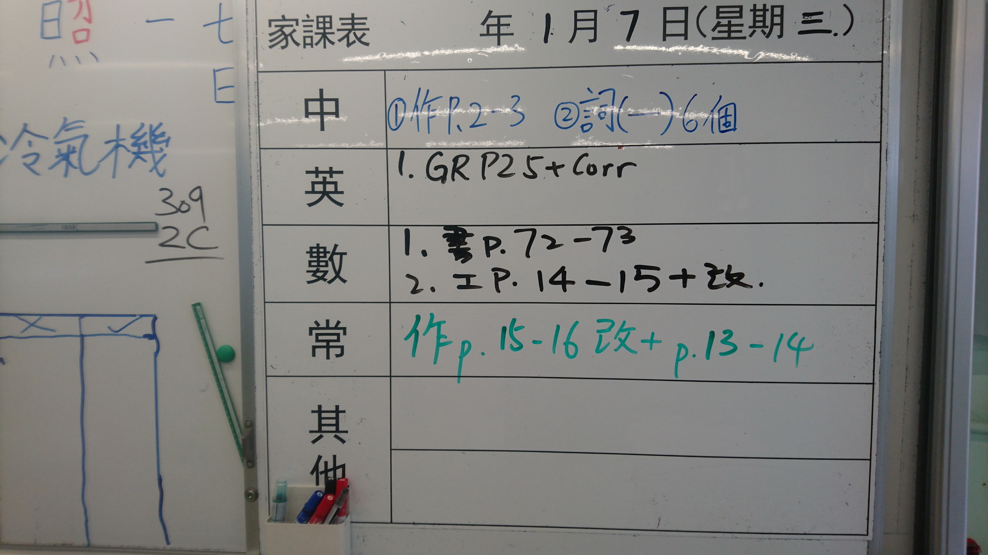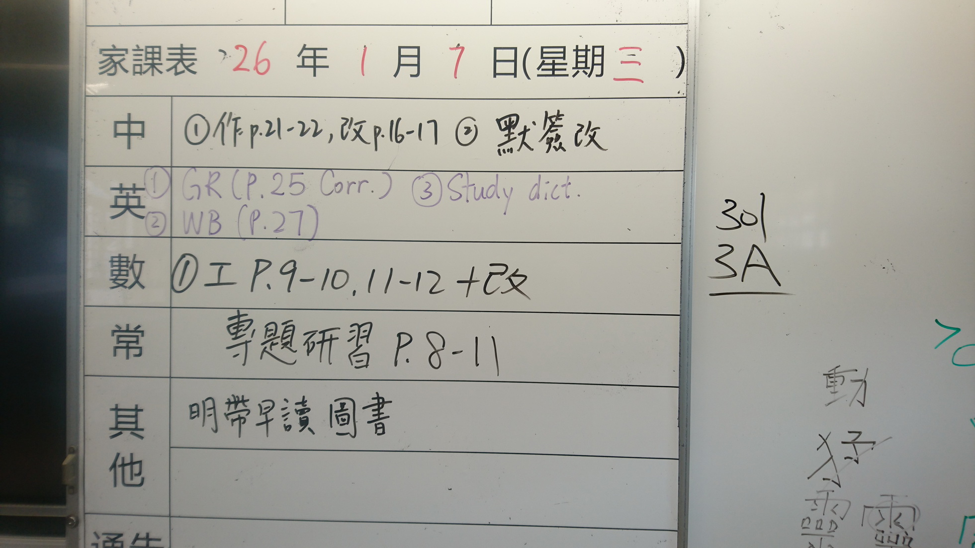 二至三年級家課代號表
