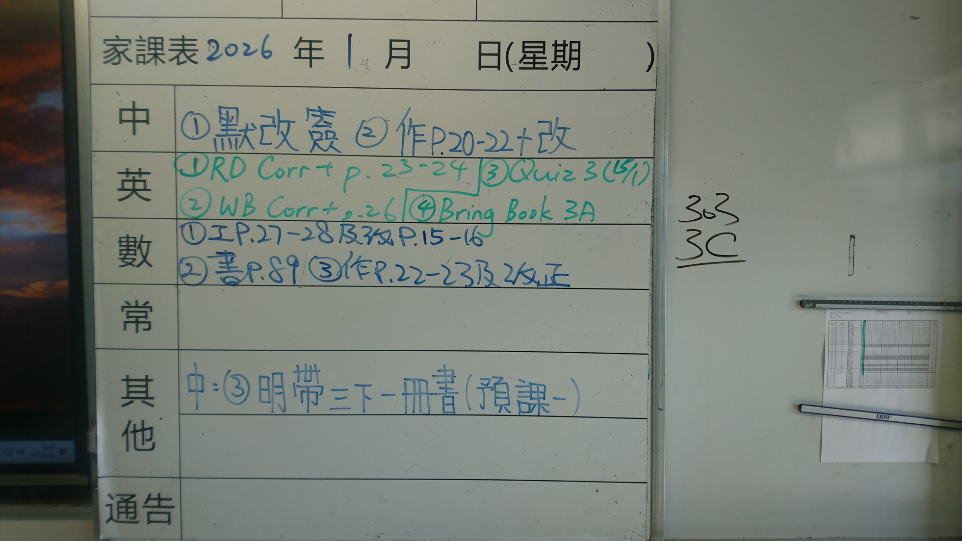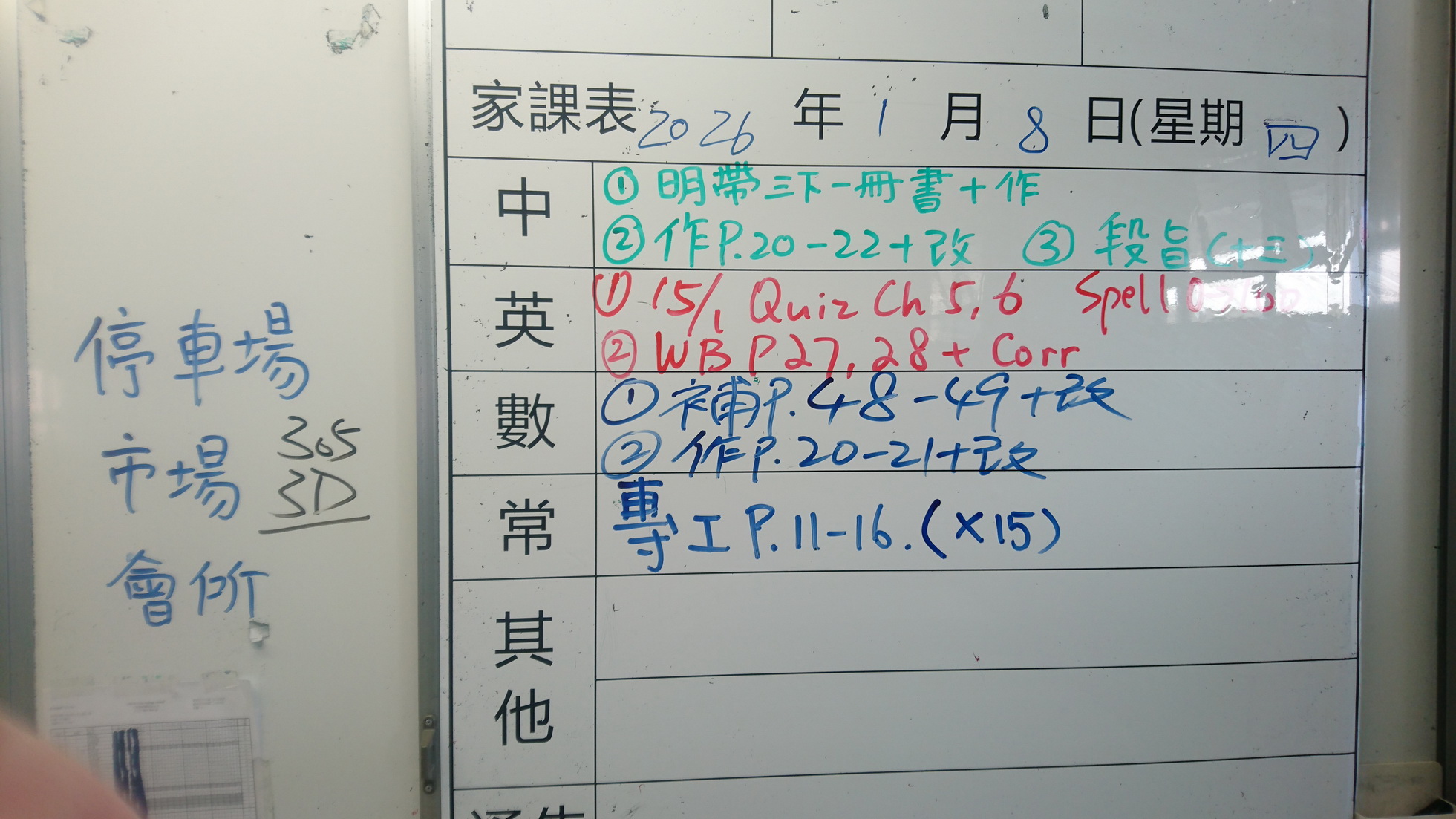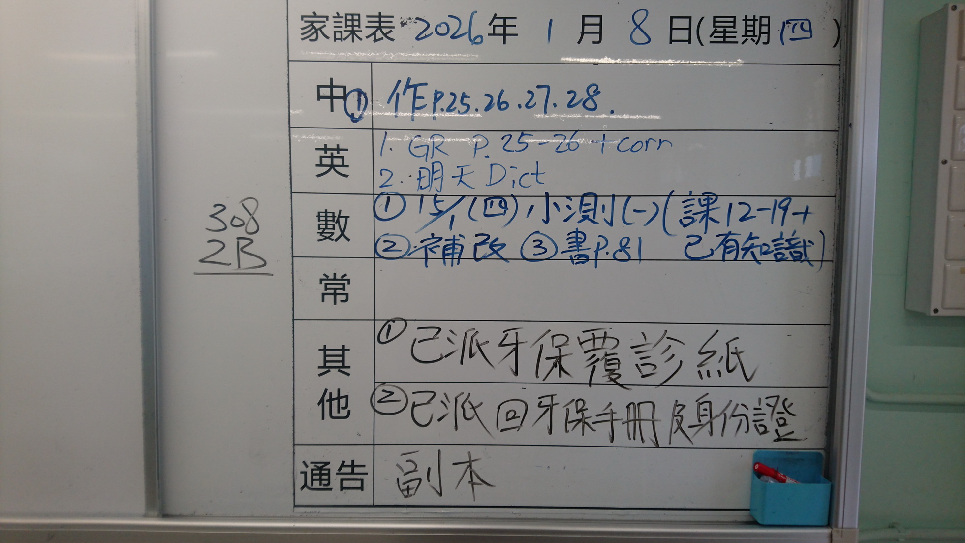 四年級家課代號表