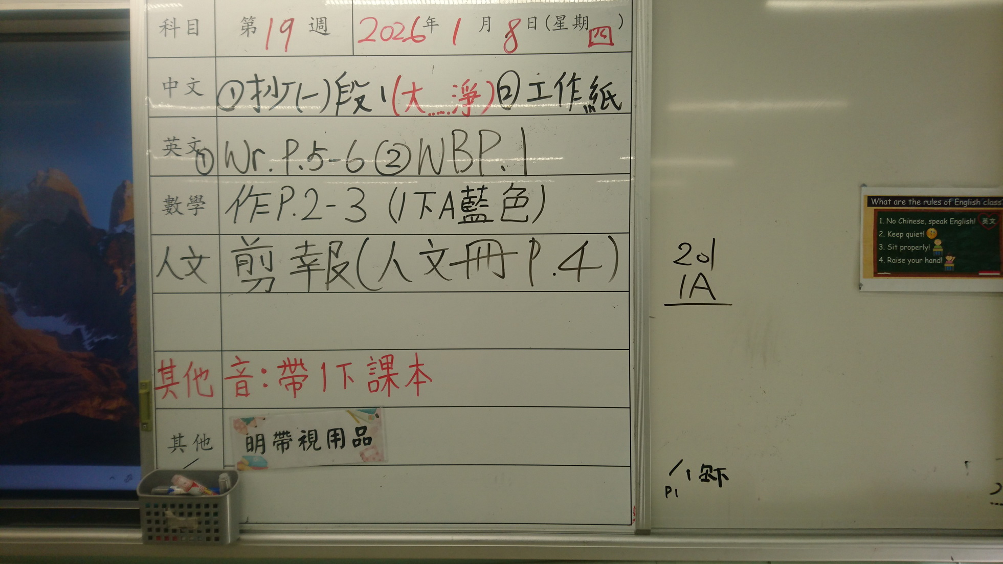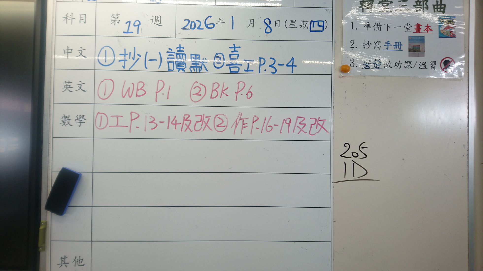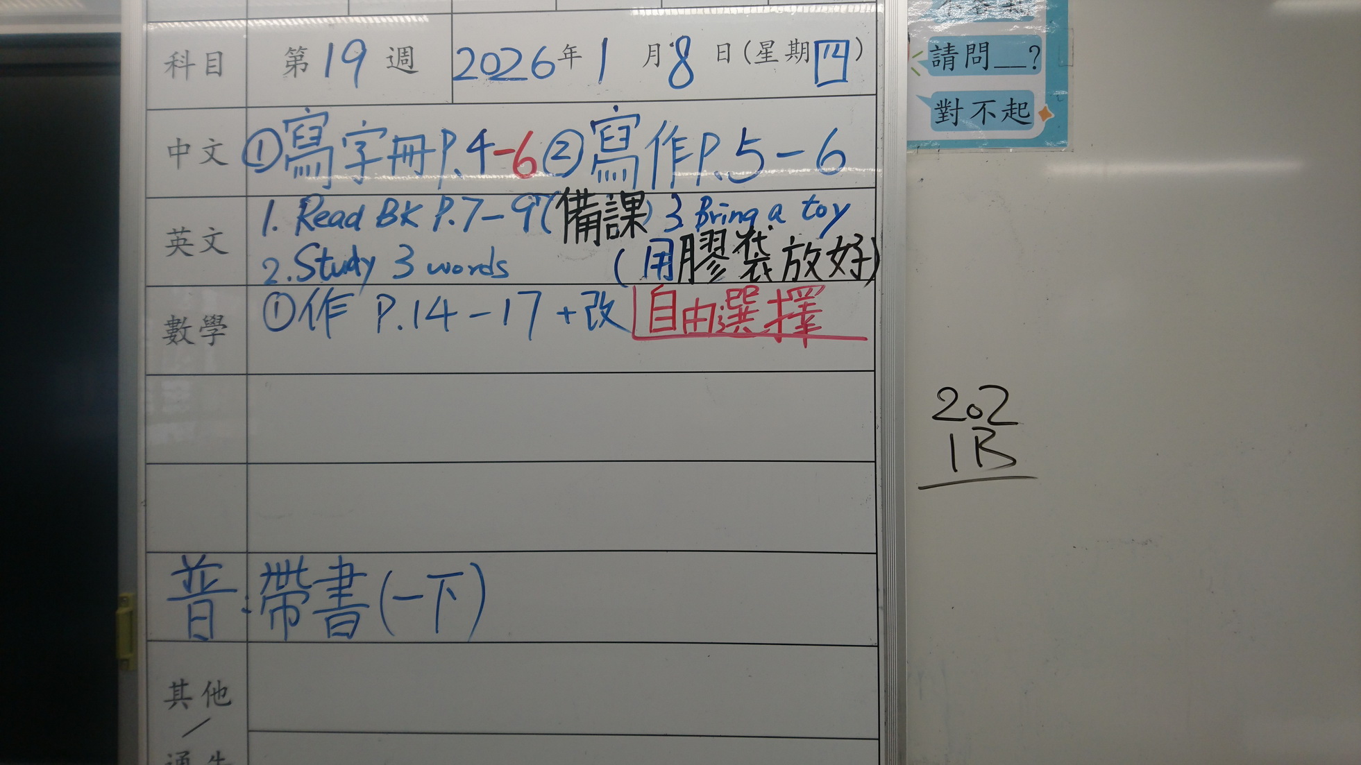 四年級家課代號表
