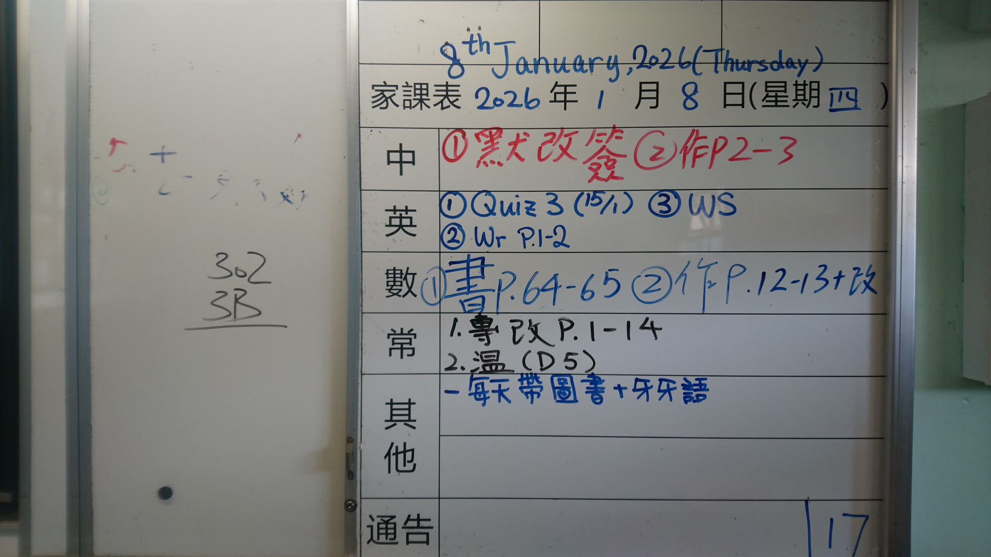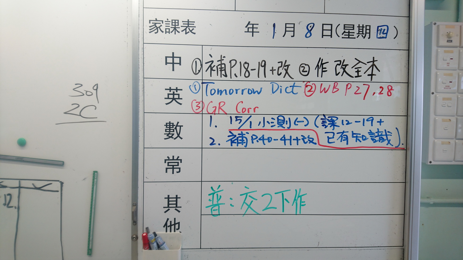二至三年級家課代號表