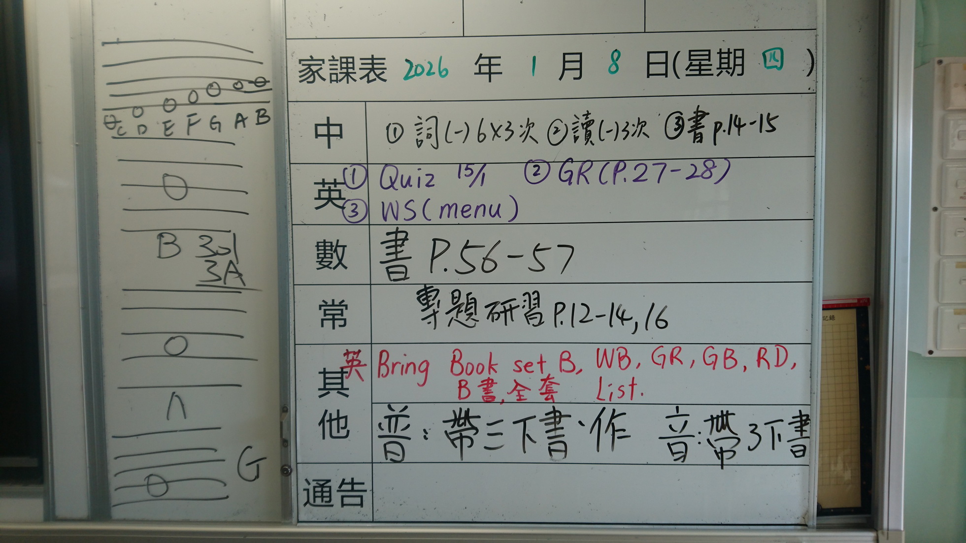 五至六年級家課代號表