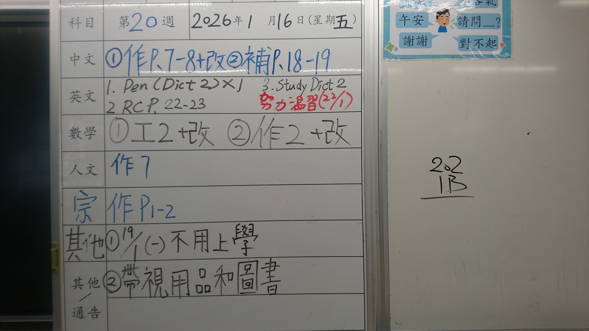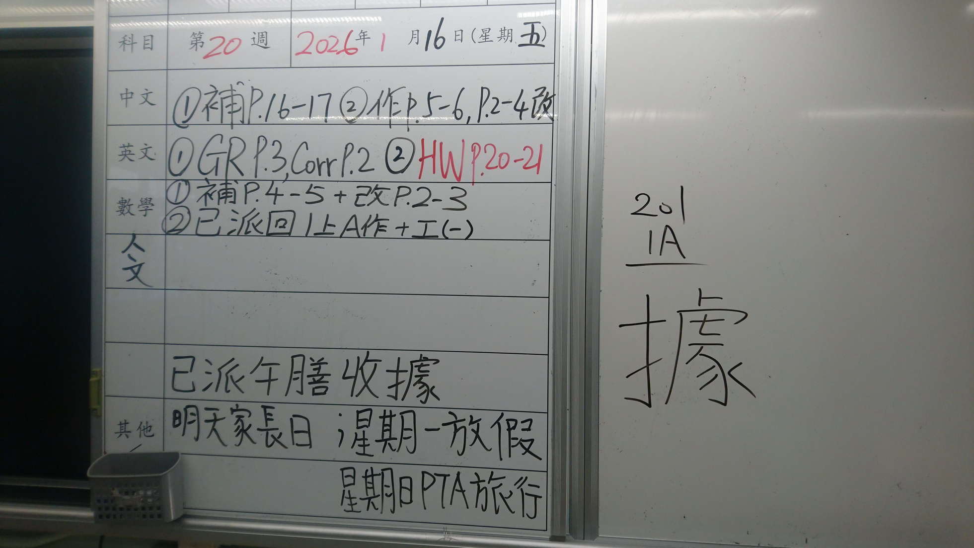 一年級家課代號表