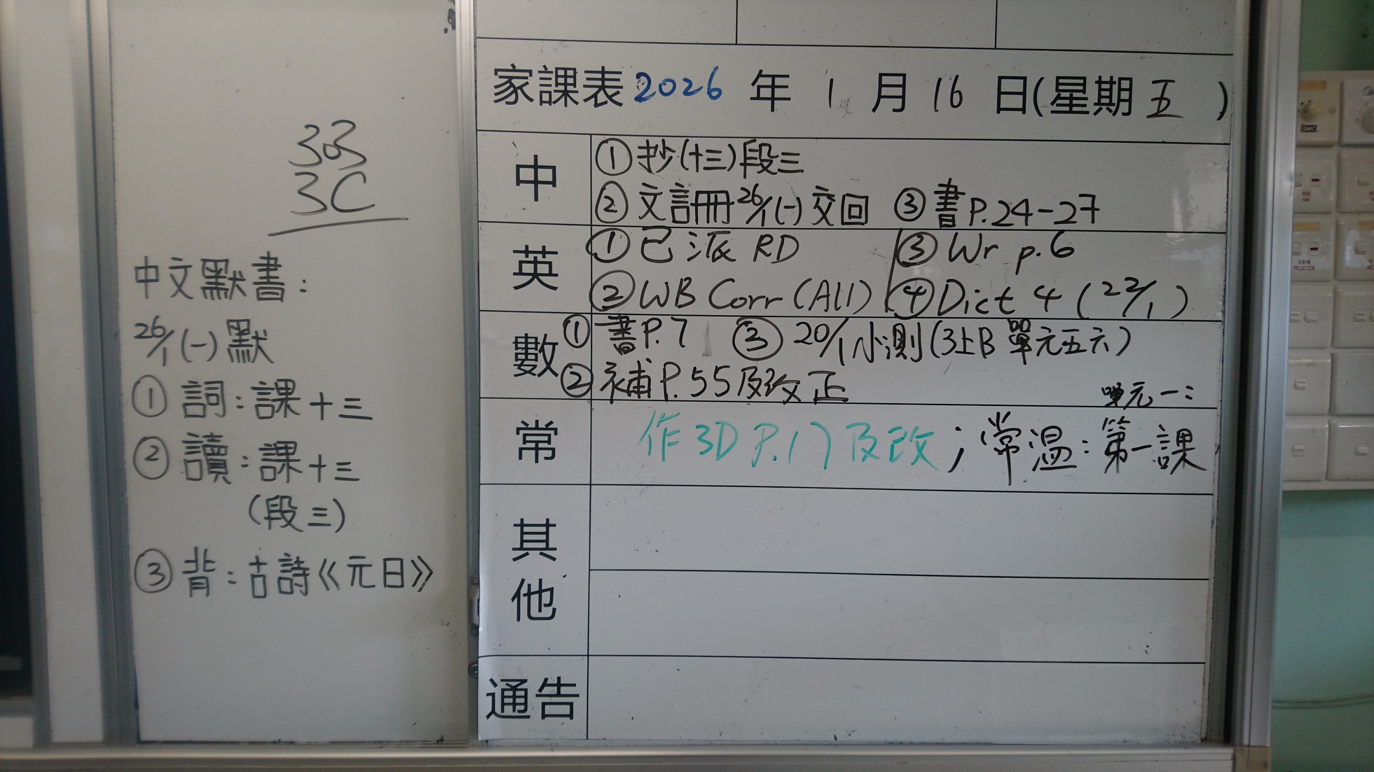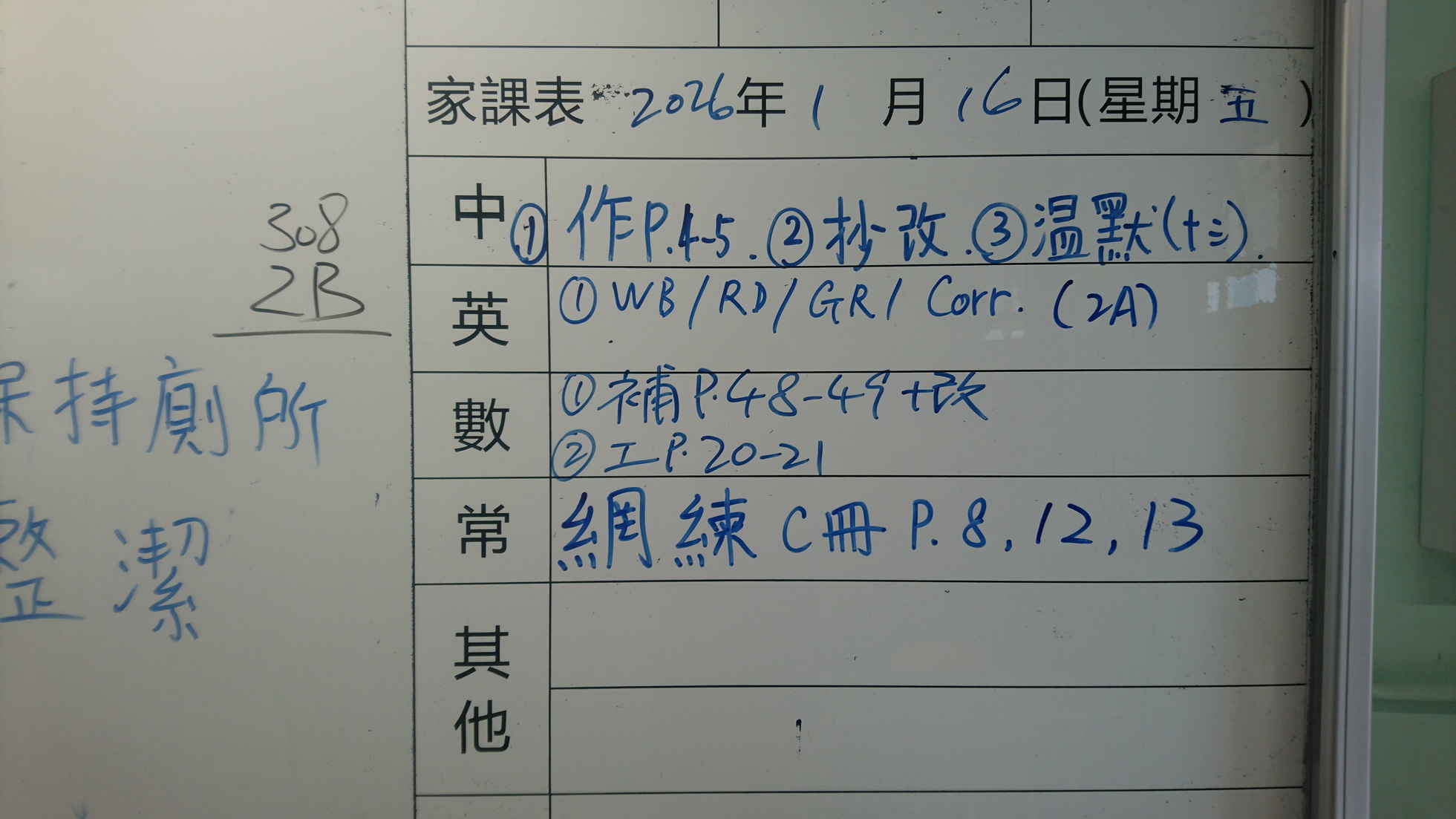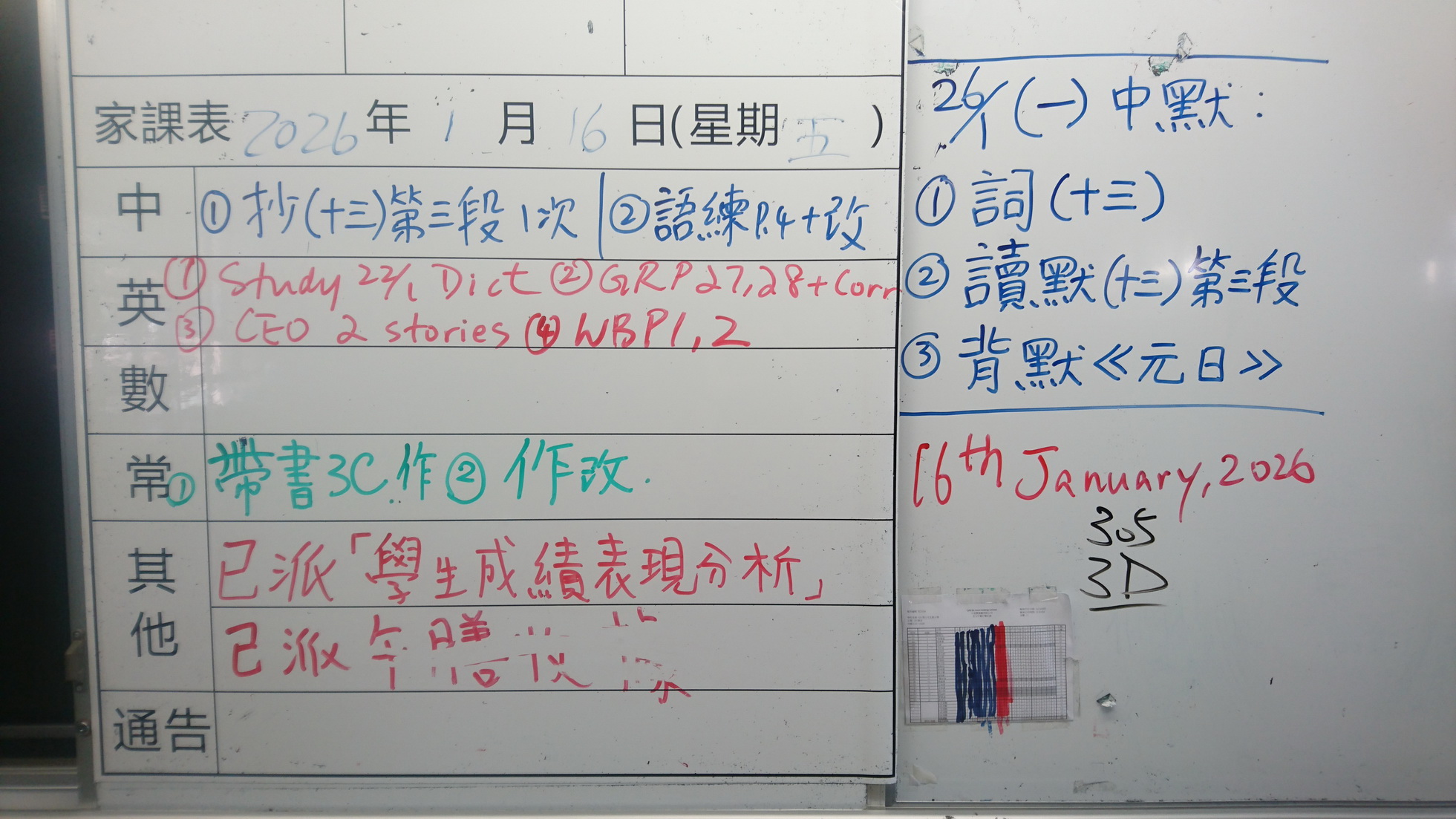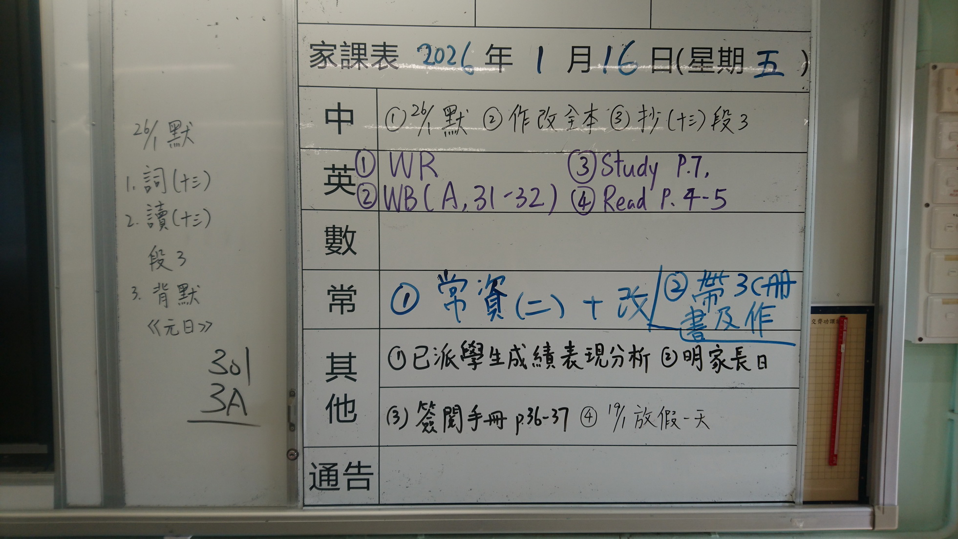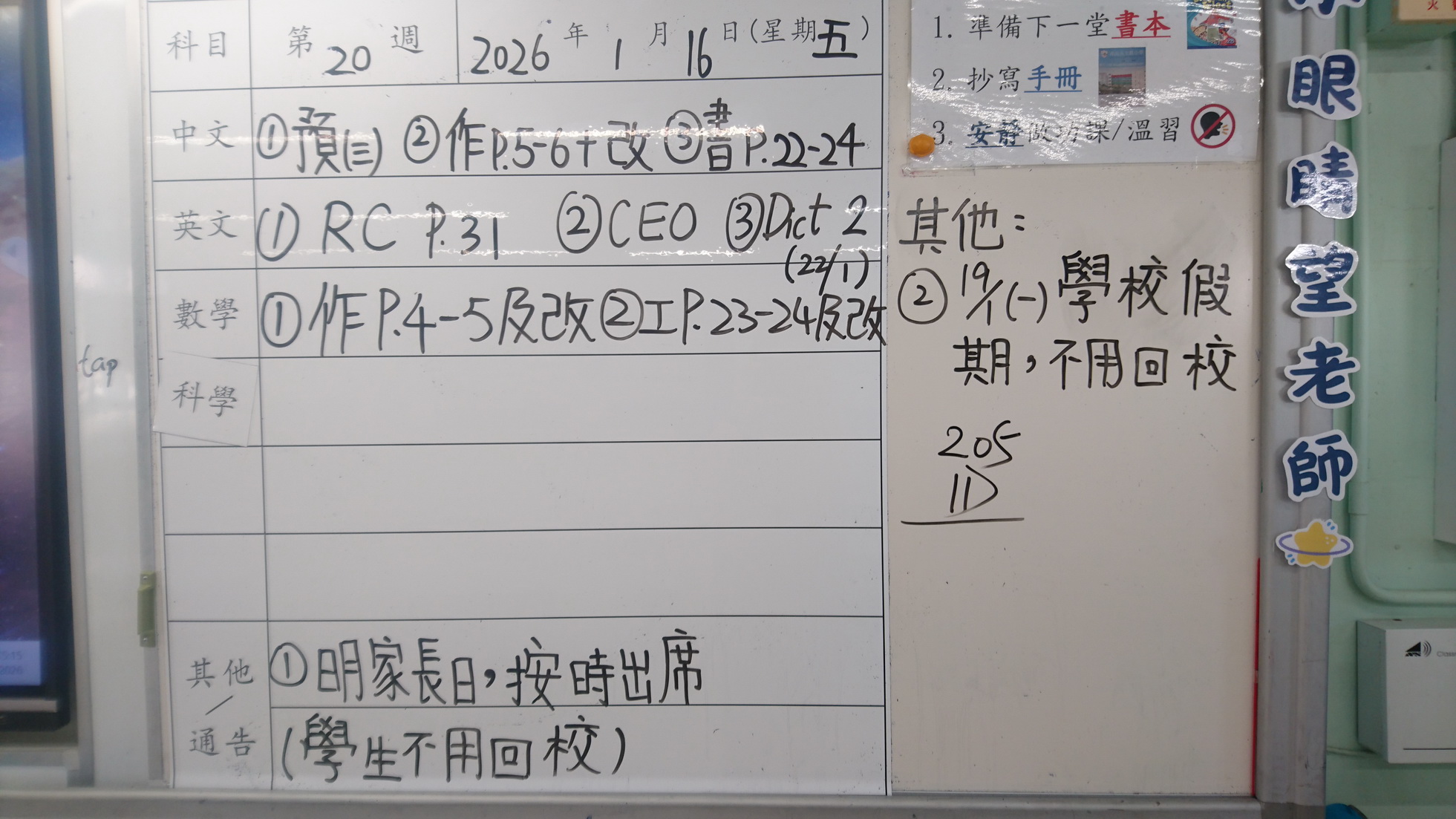 四年級家課代號表