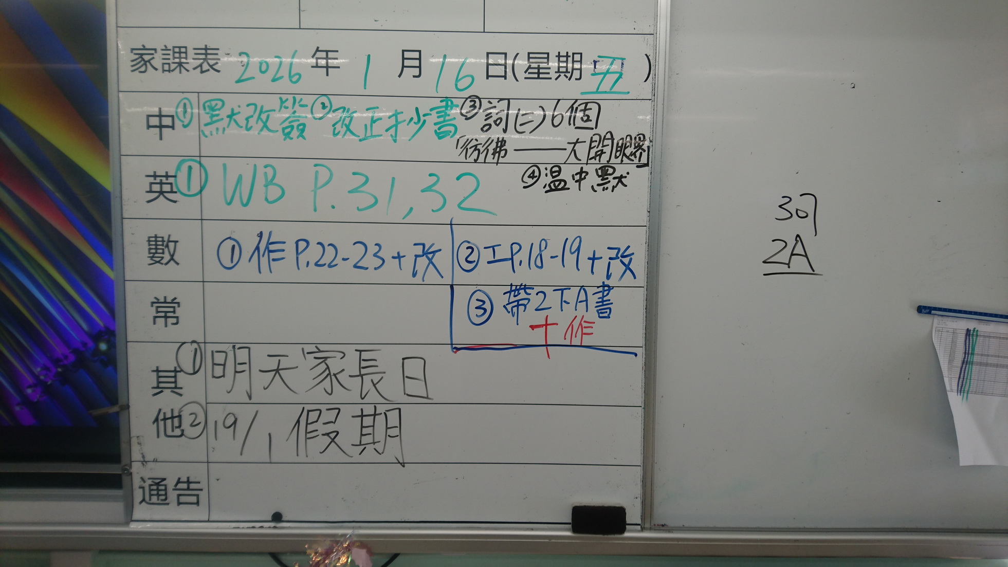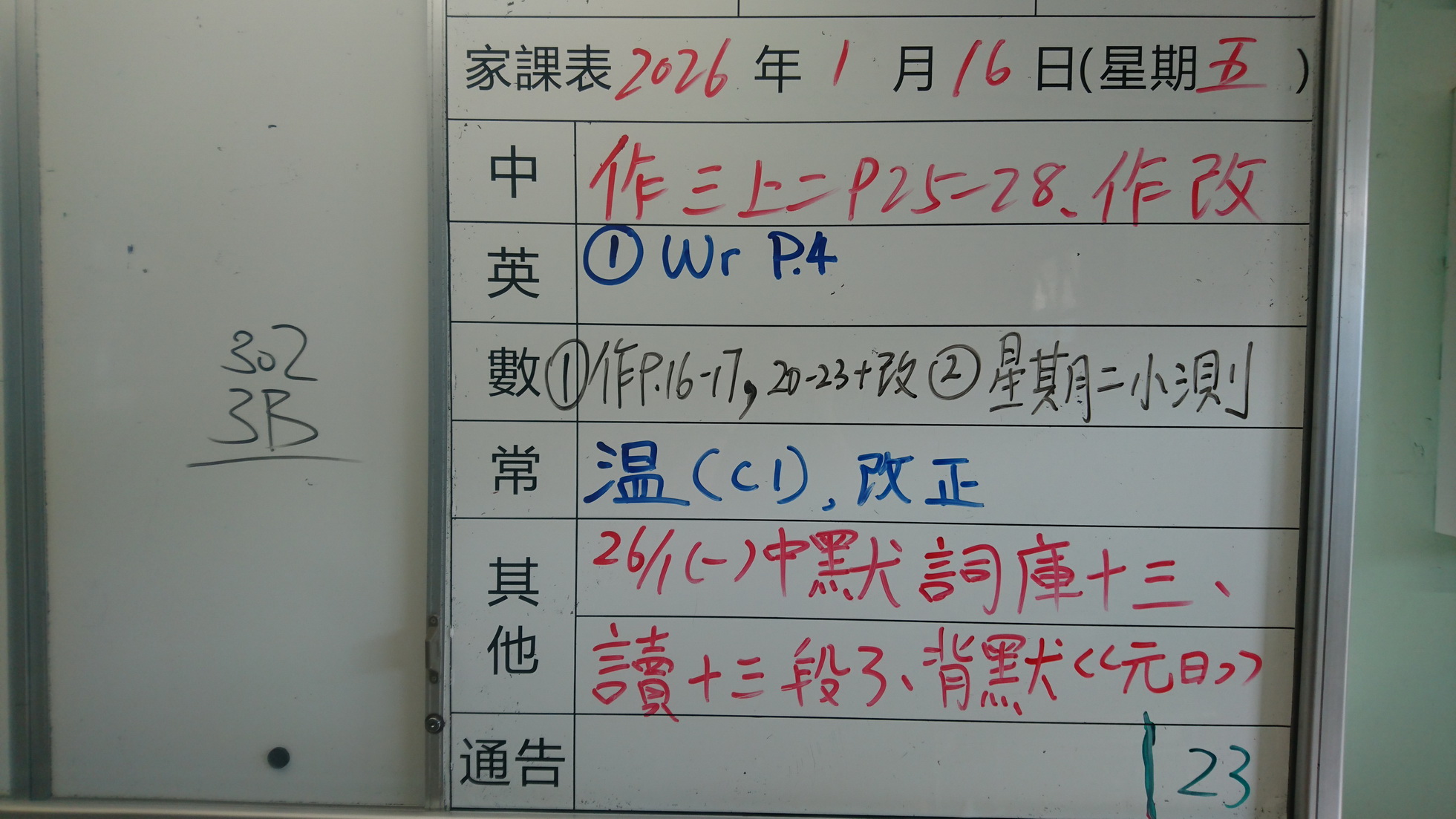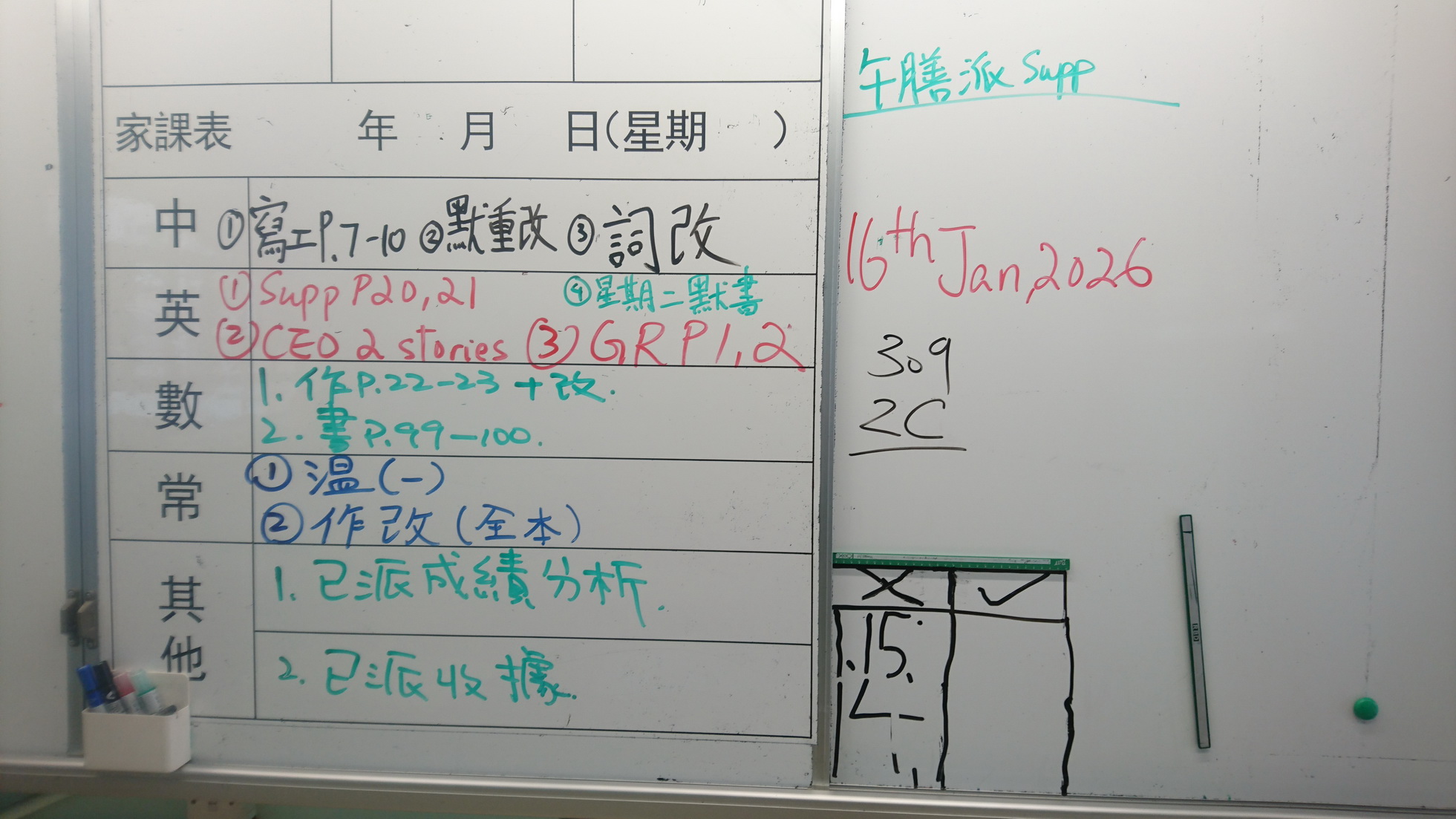 二至三年級家課代號表