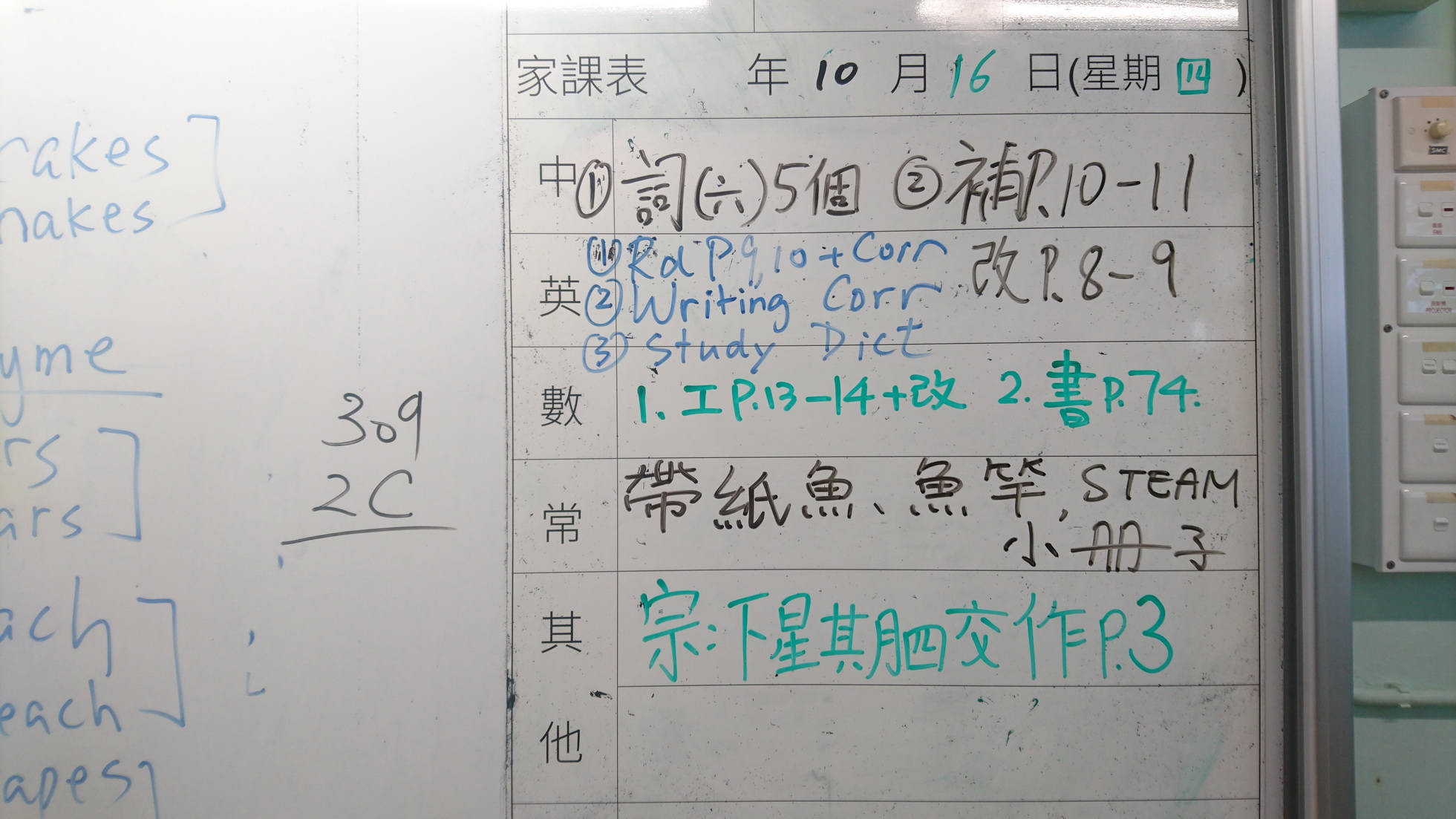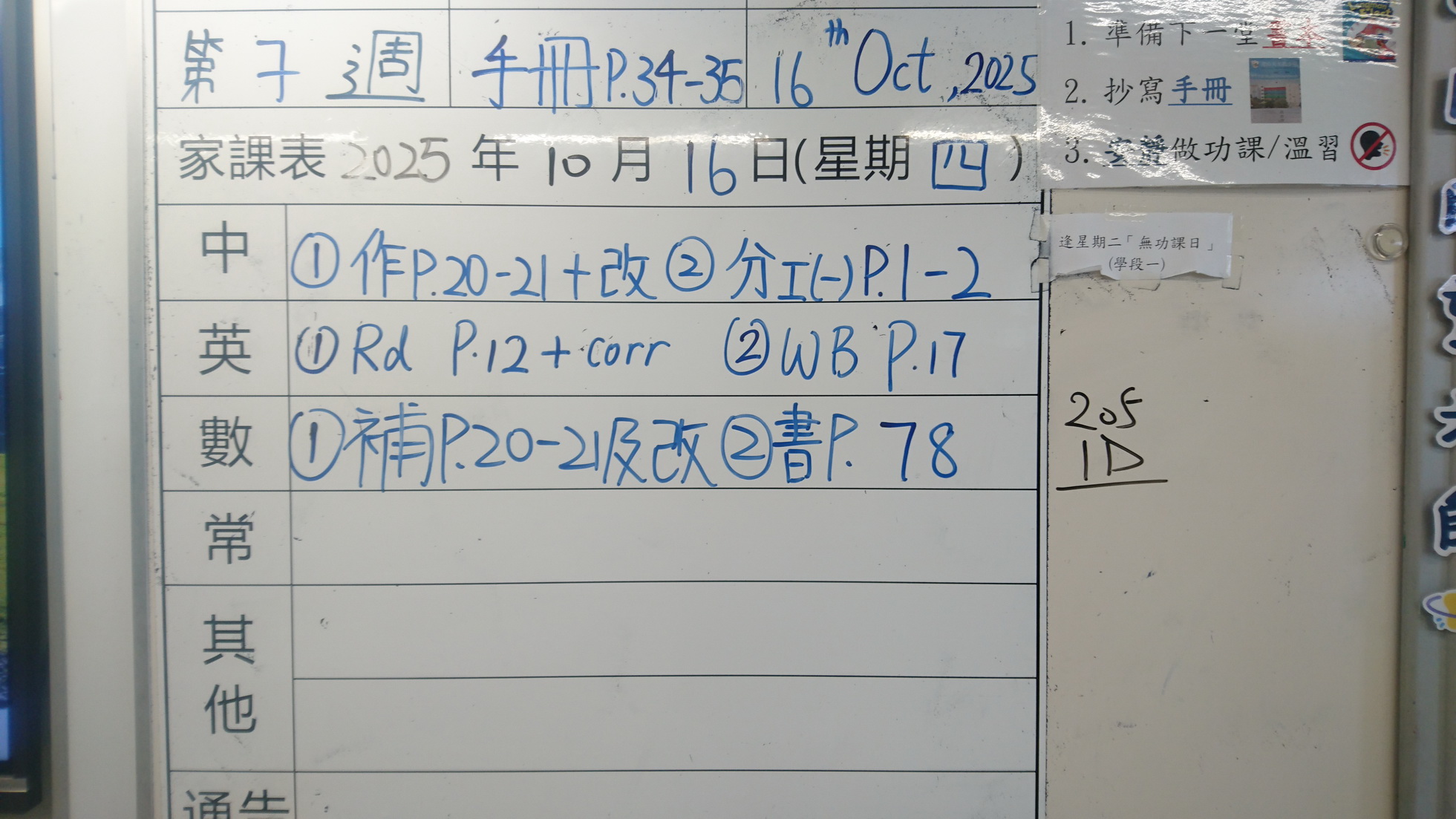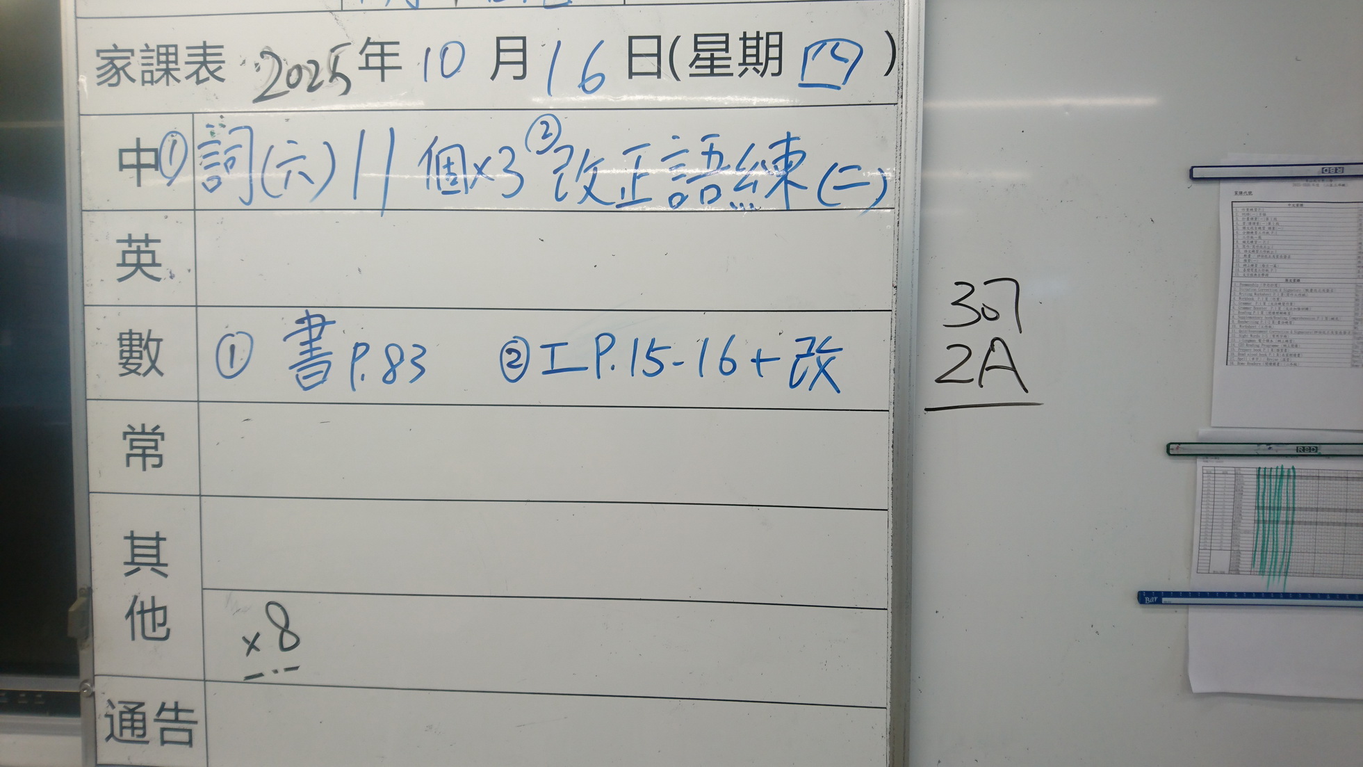 四年級家課代號表