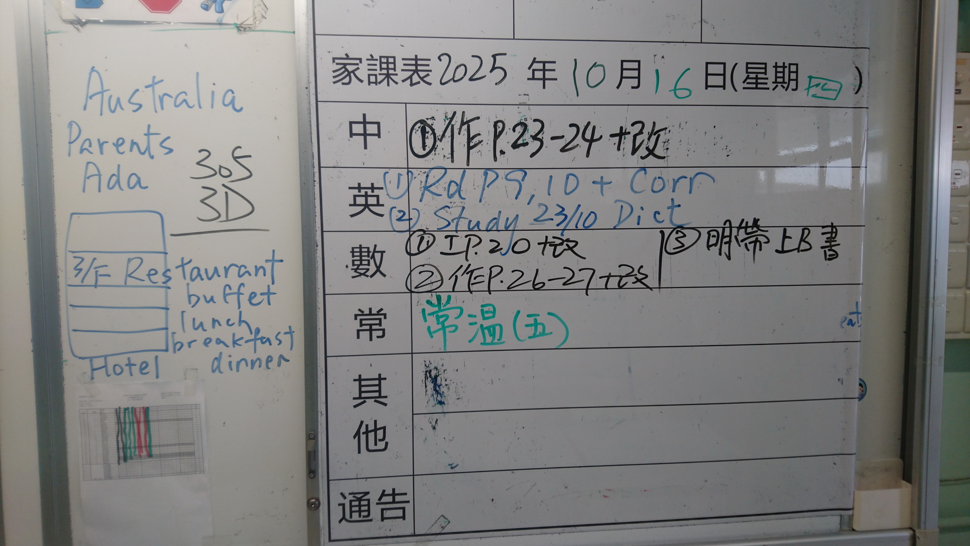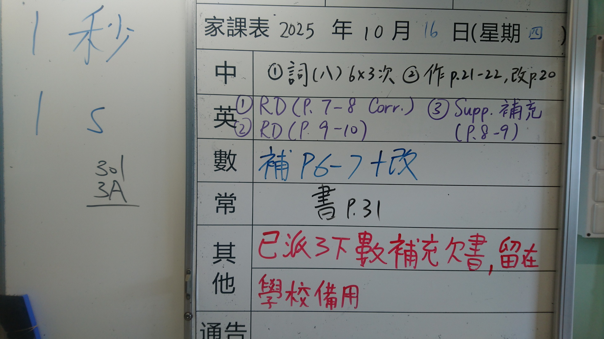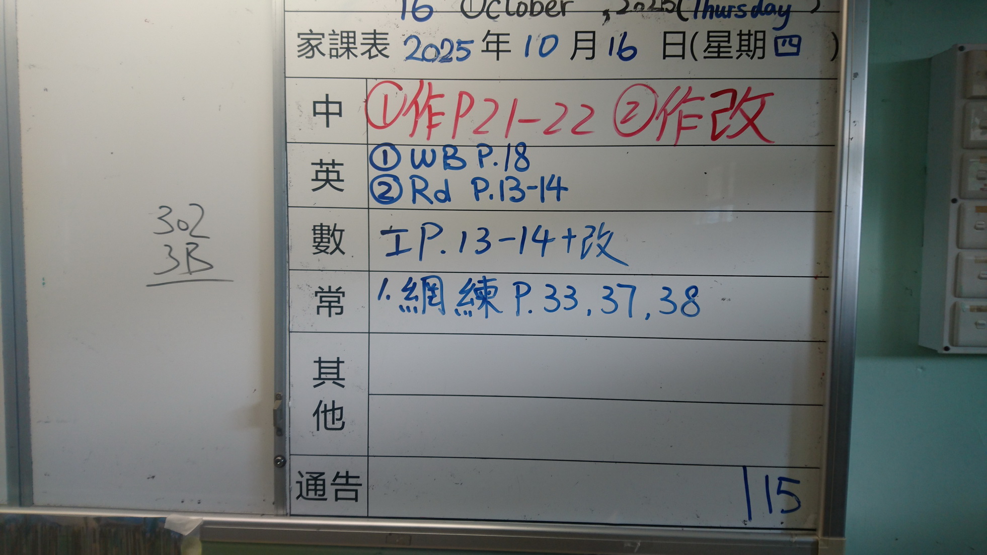 四年級家課代號表