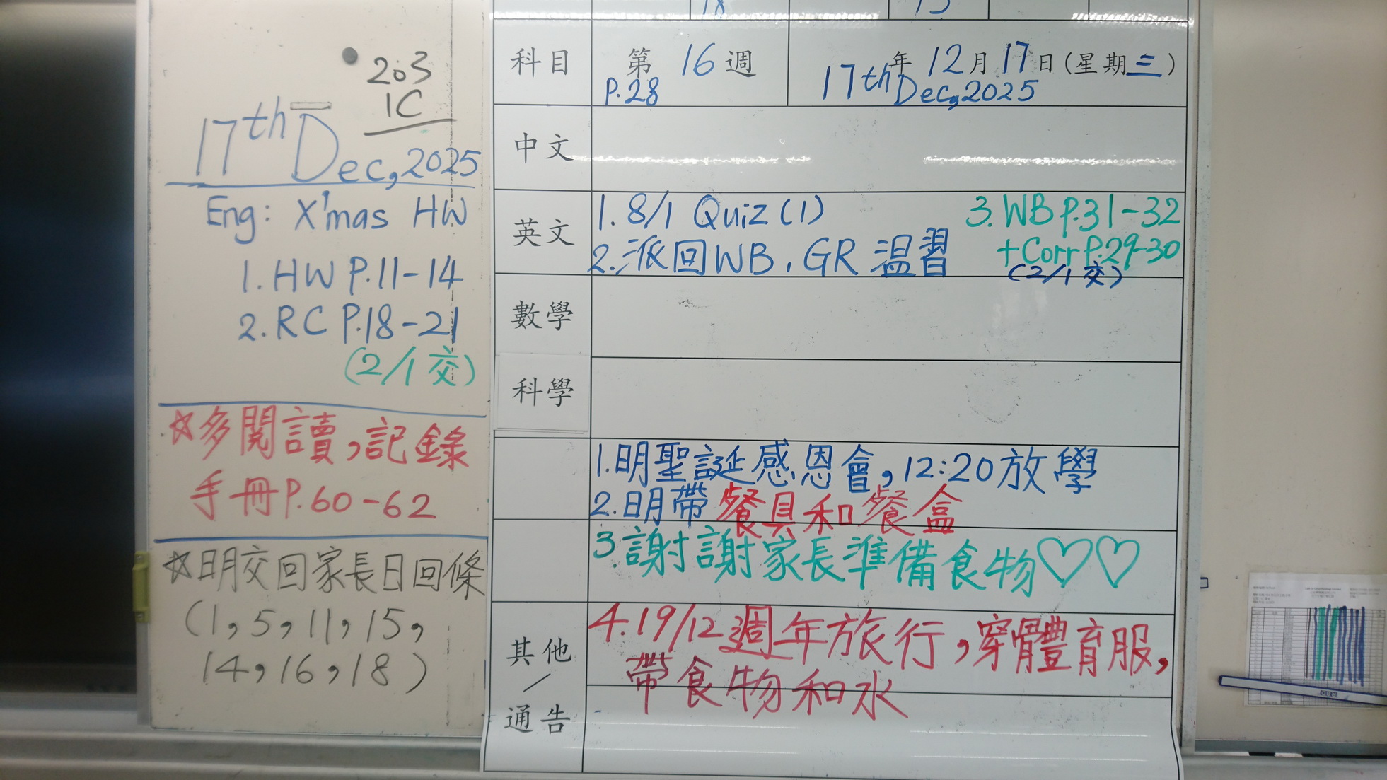 一年級家課代號表