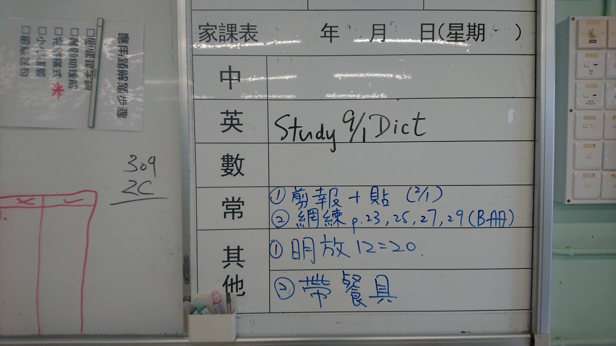 二至三年級家課代號表
