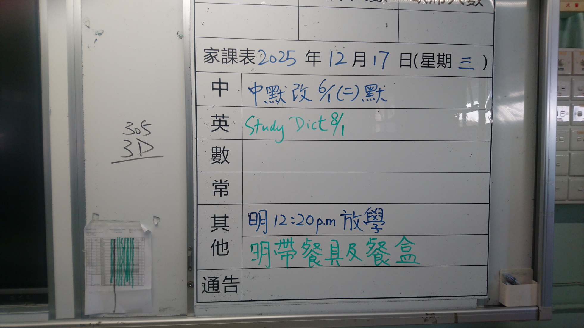 四年級家課代號表