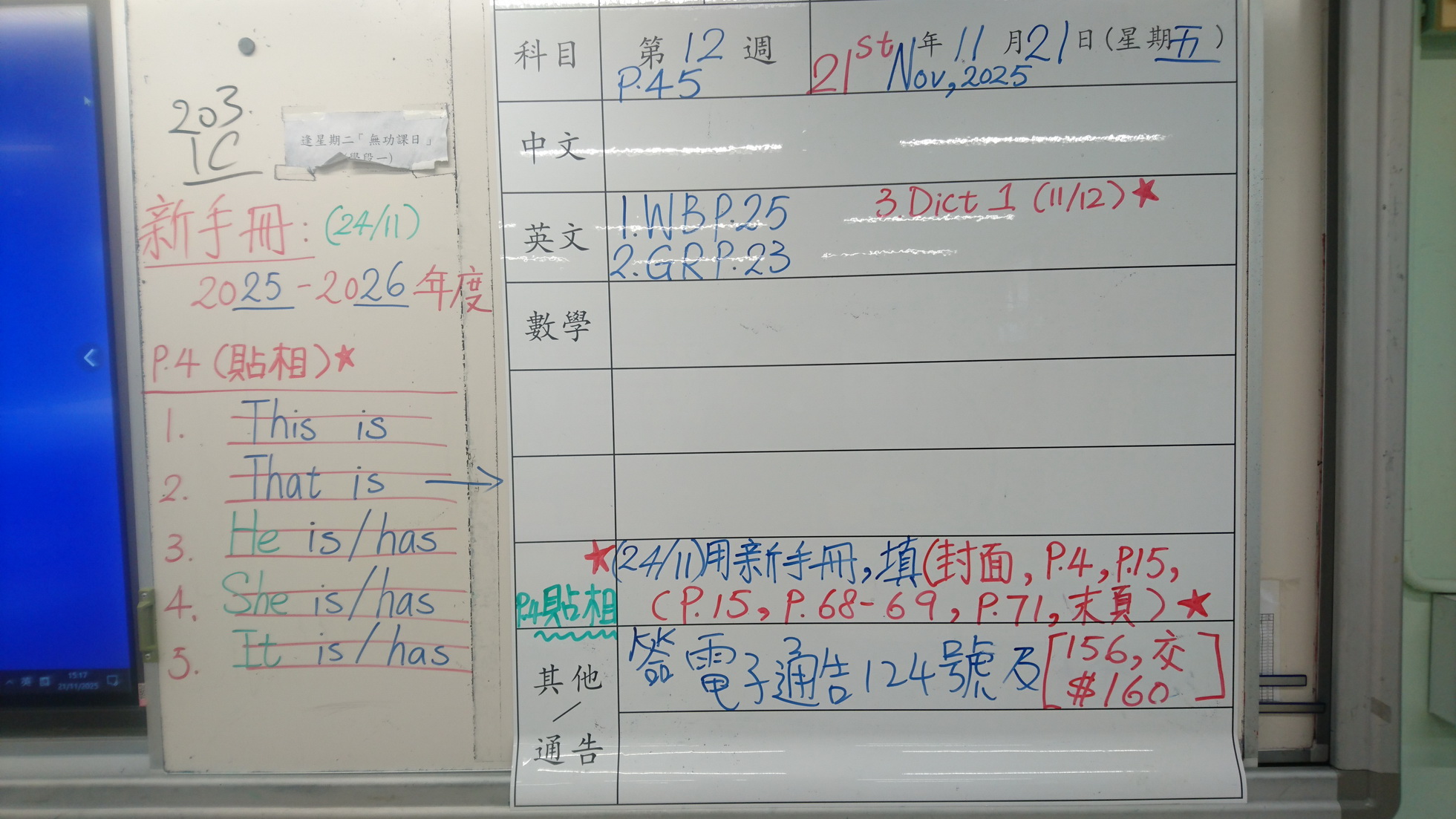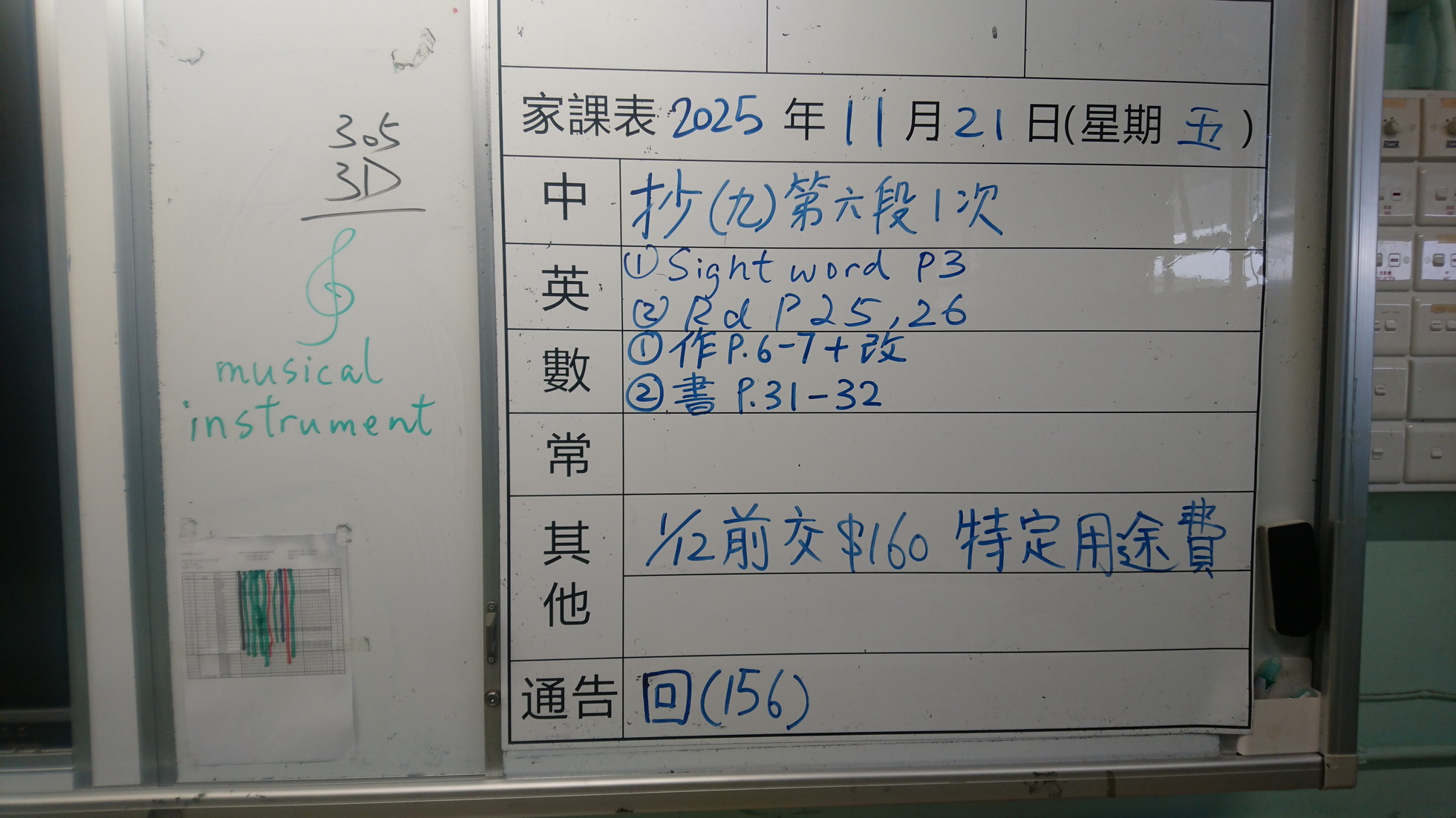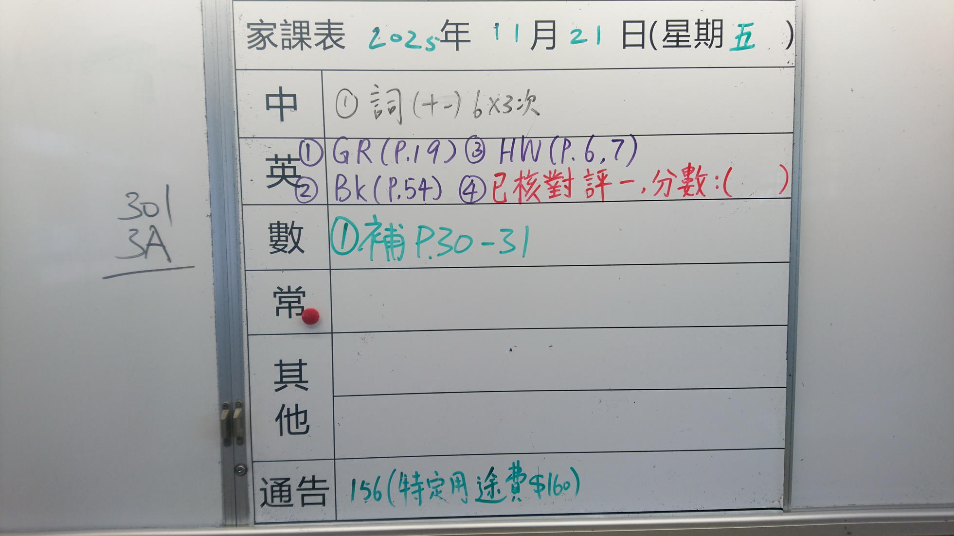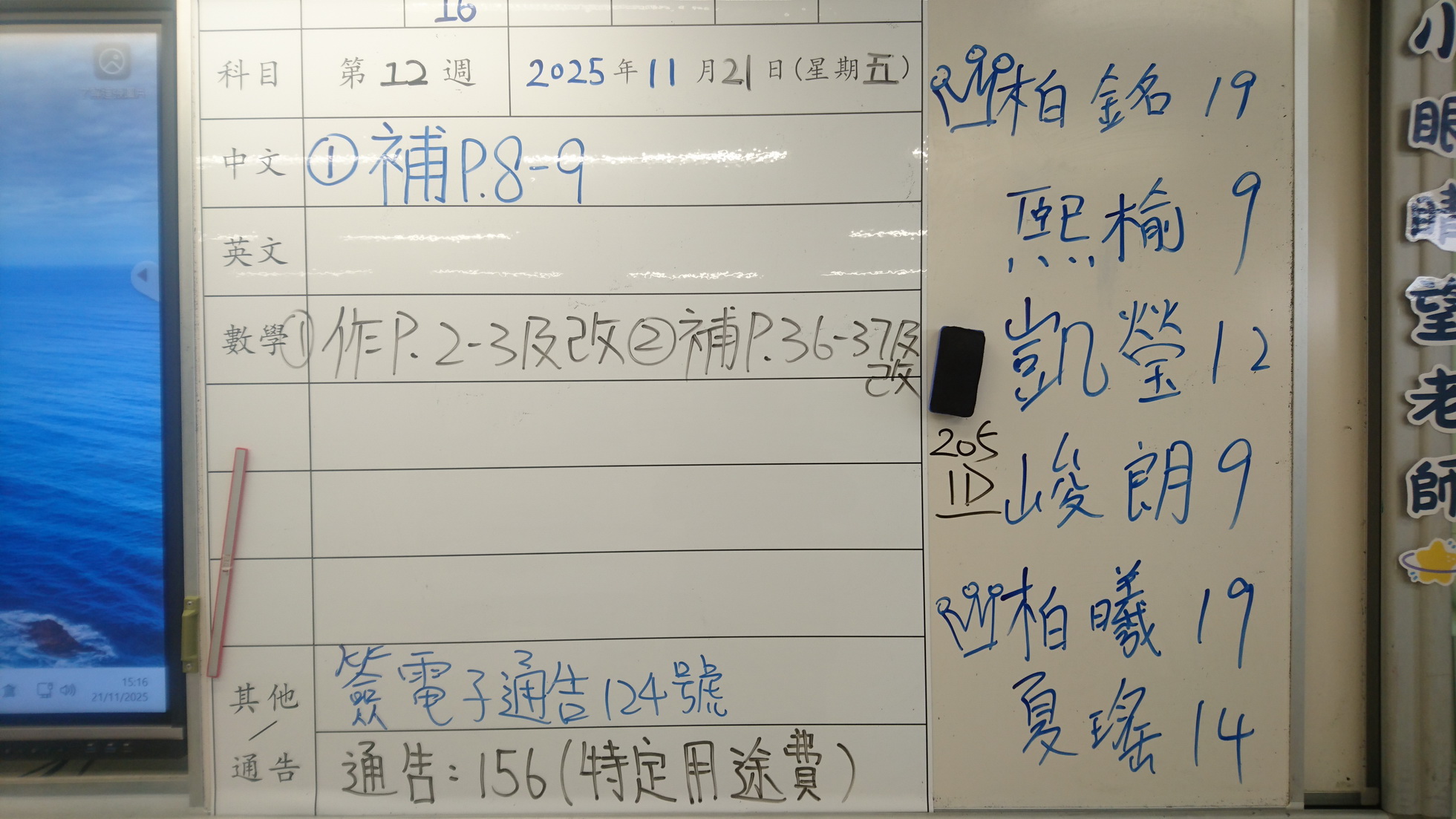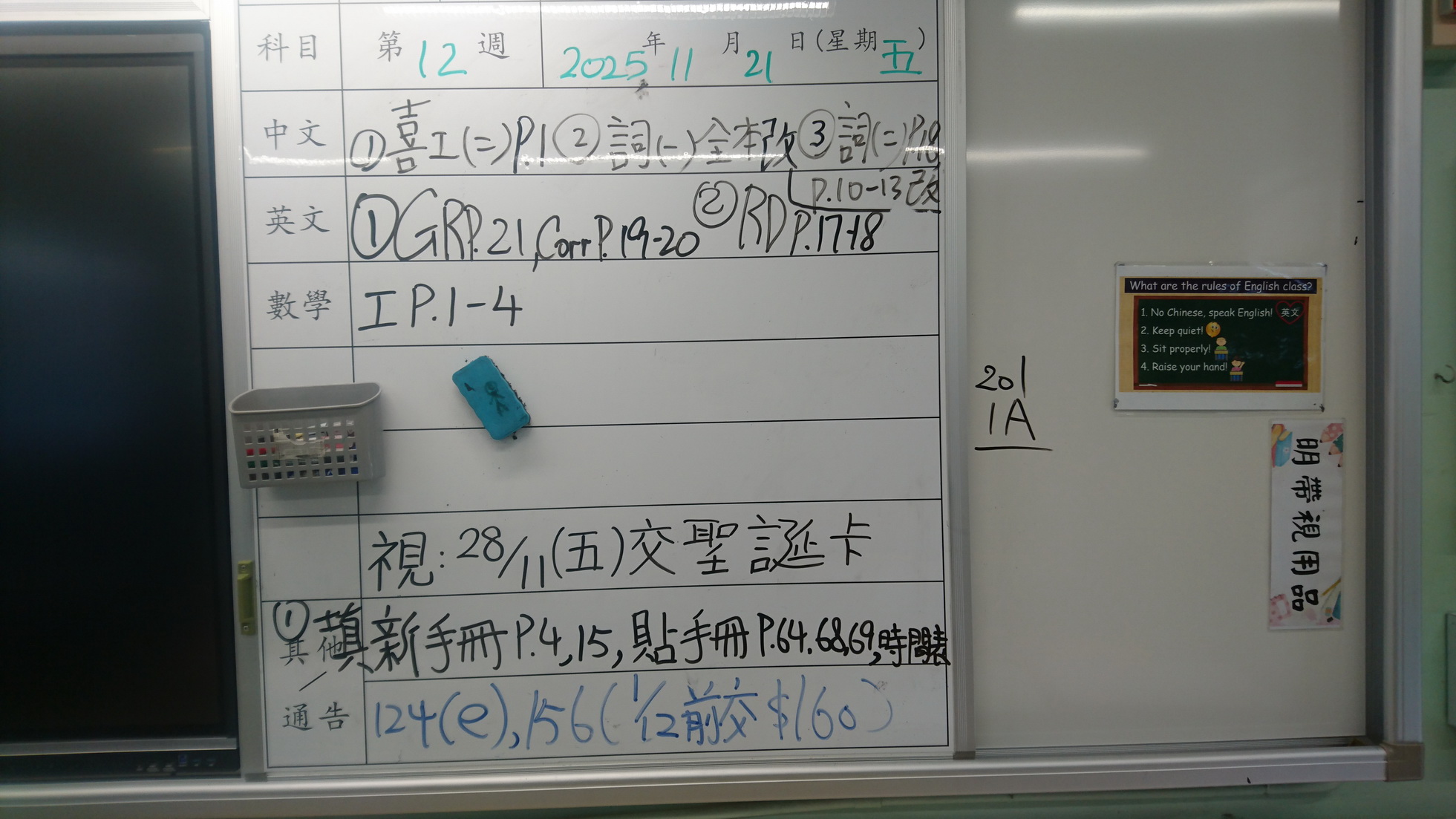 四年級家課代號表