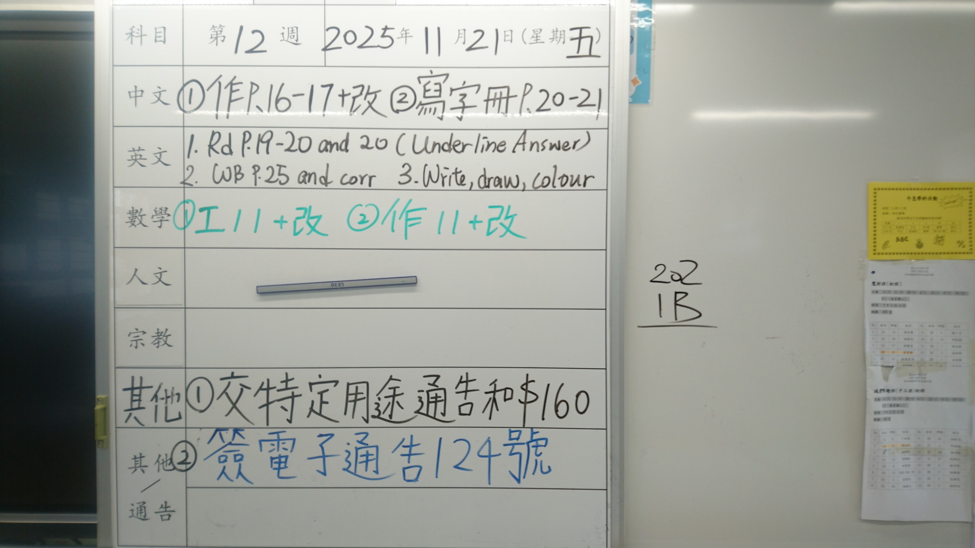 一年級家課代號表