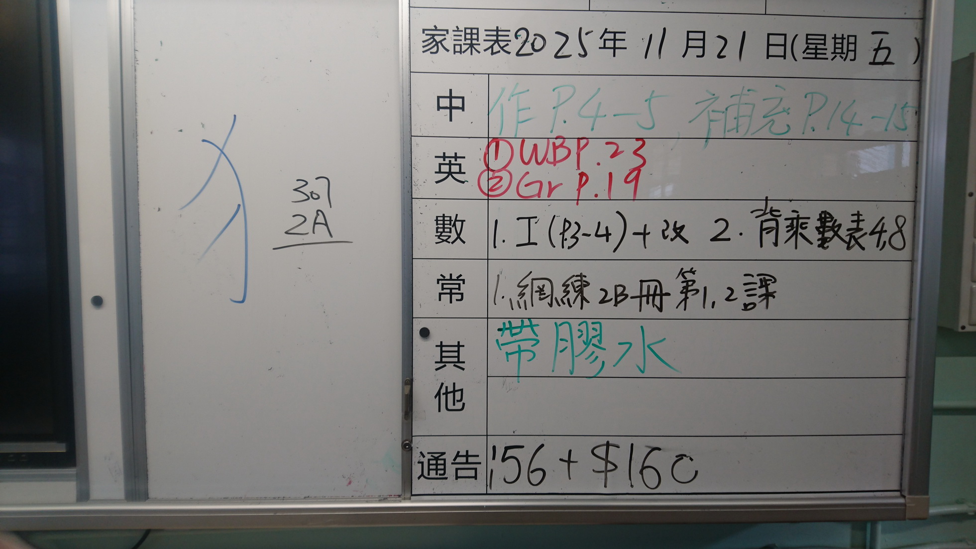 二至三年級家課代號表