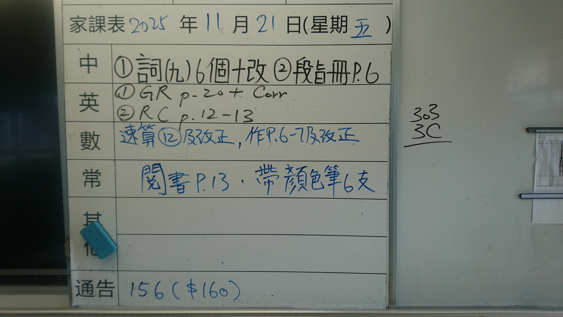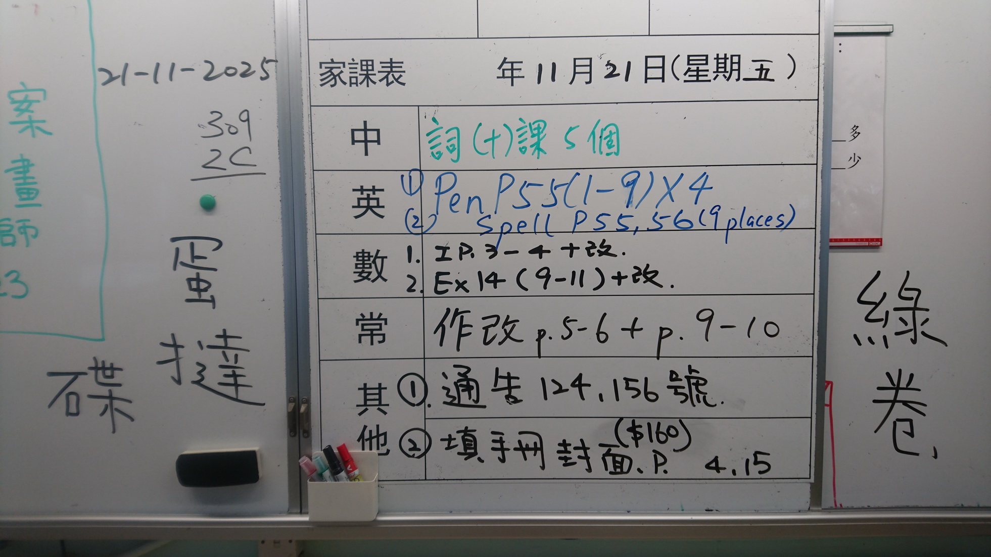 五至六年級家課代號表