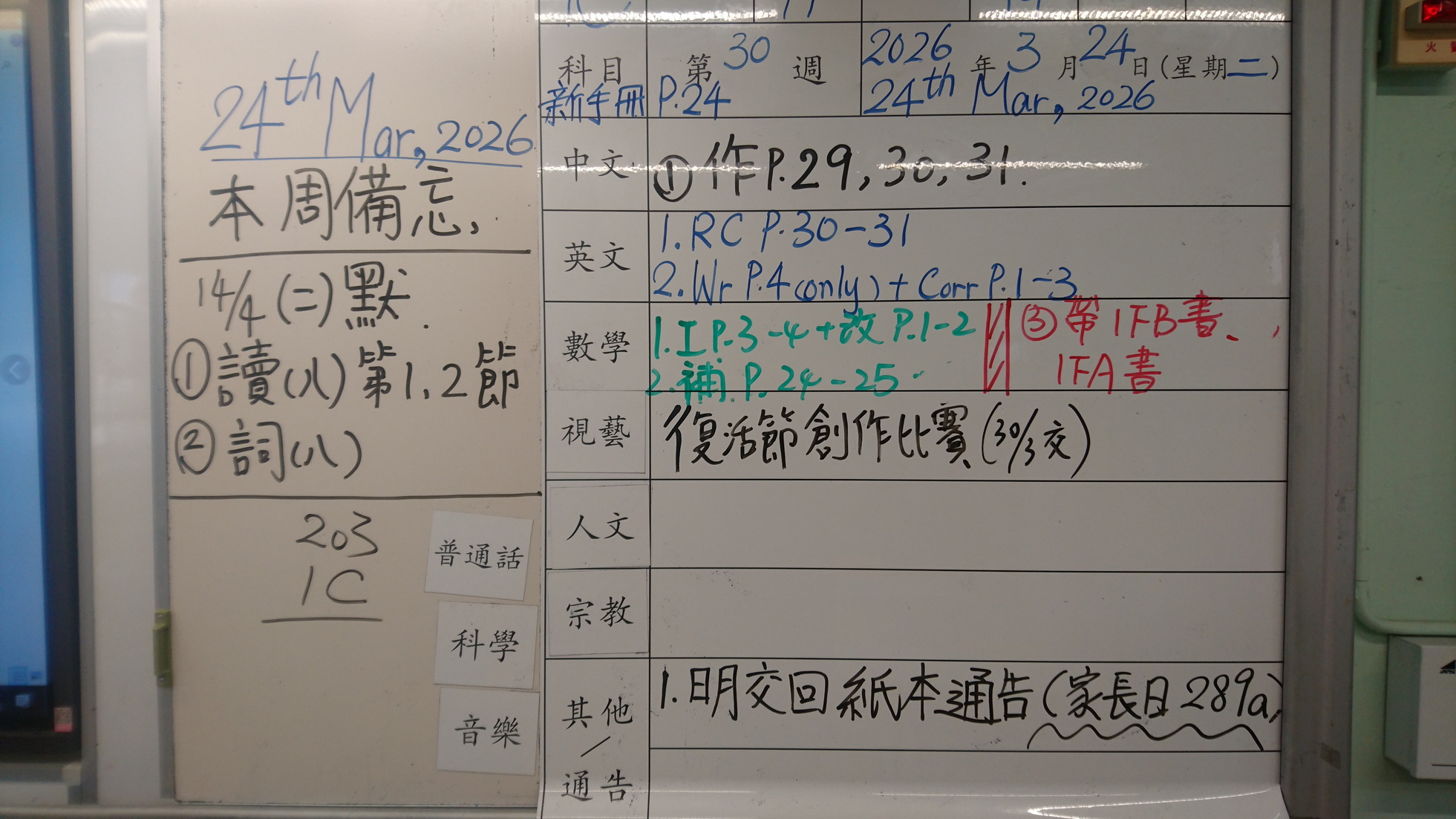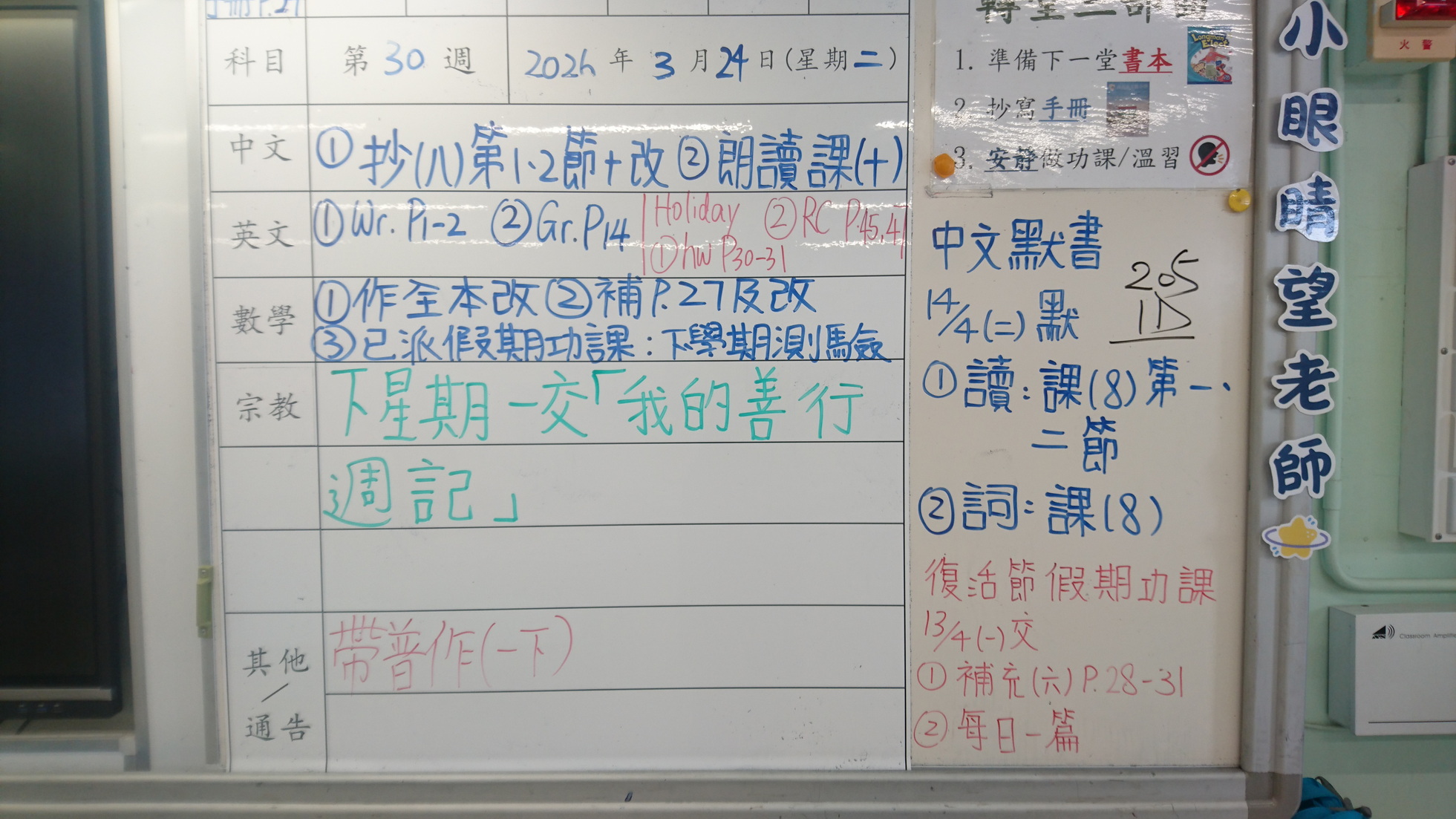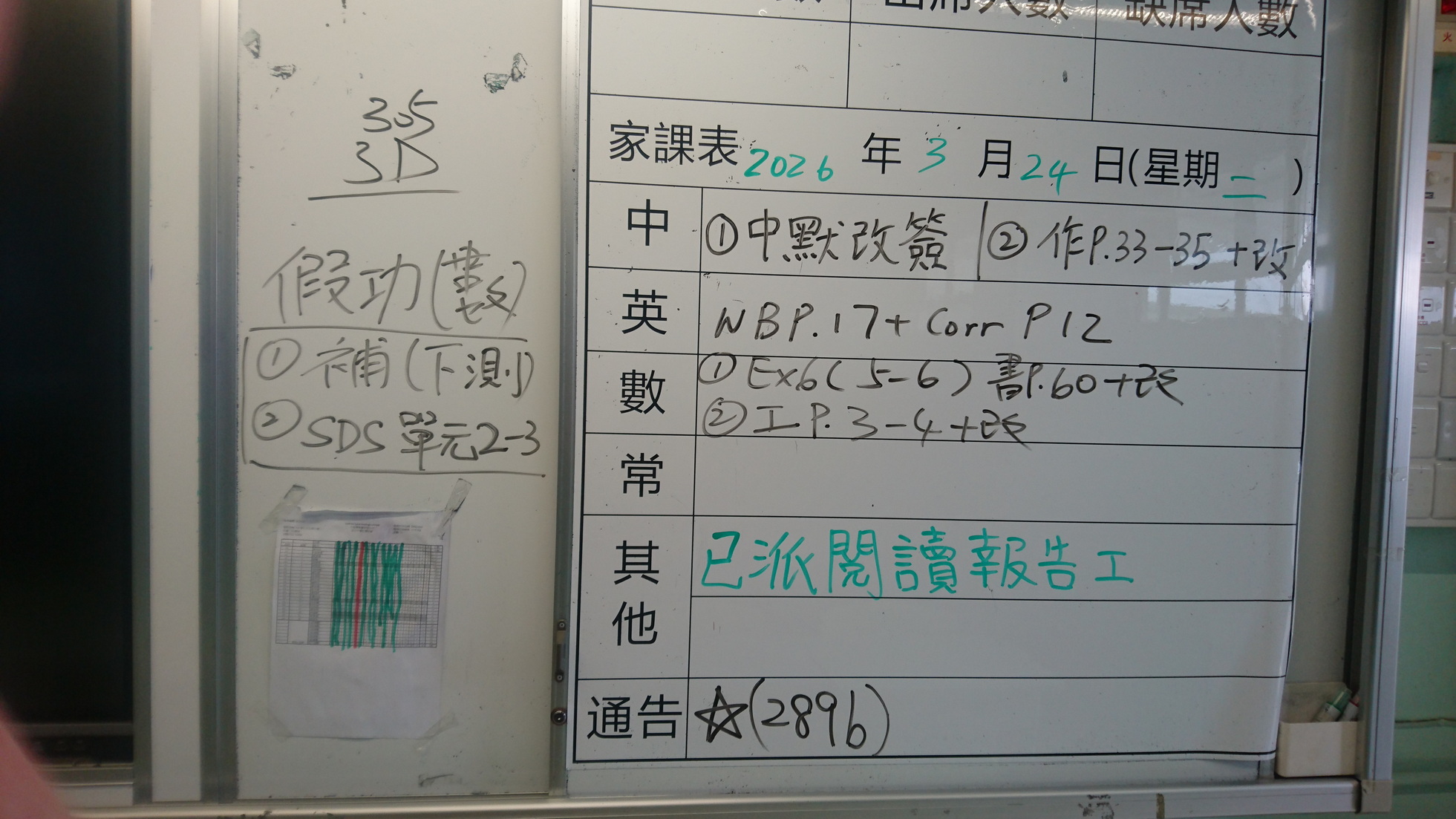 四年級家課代號表