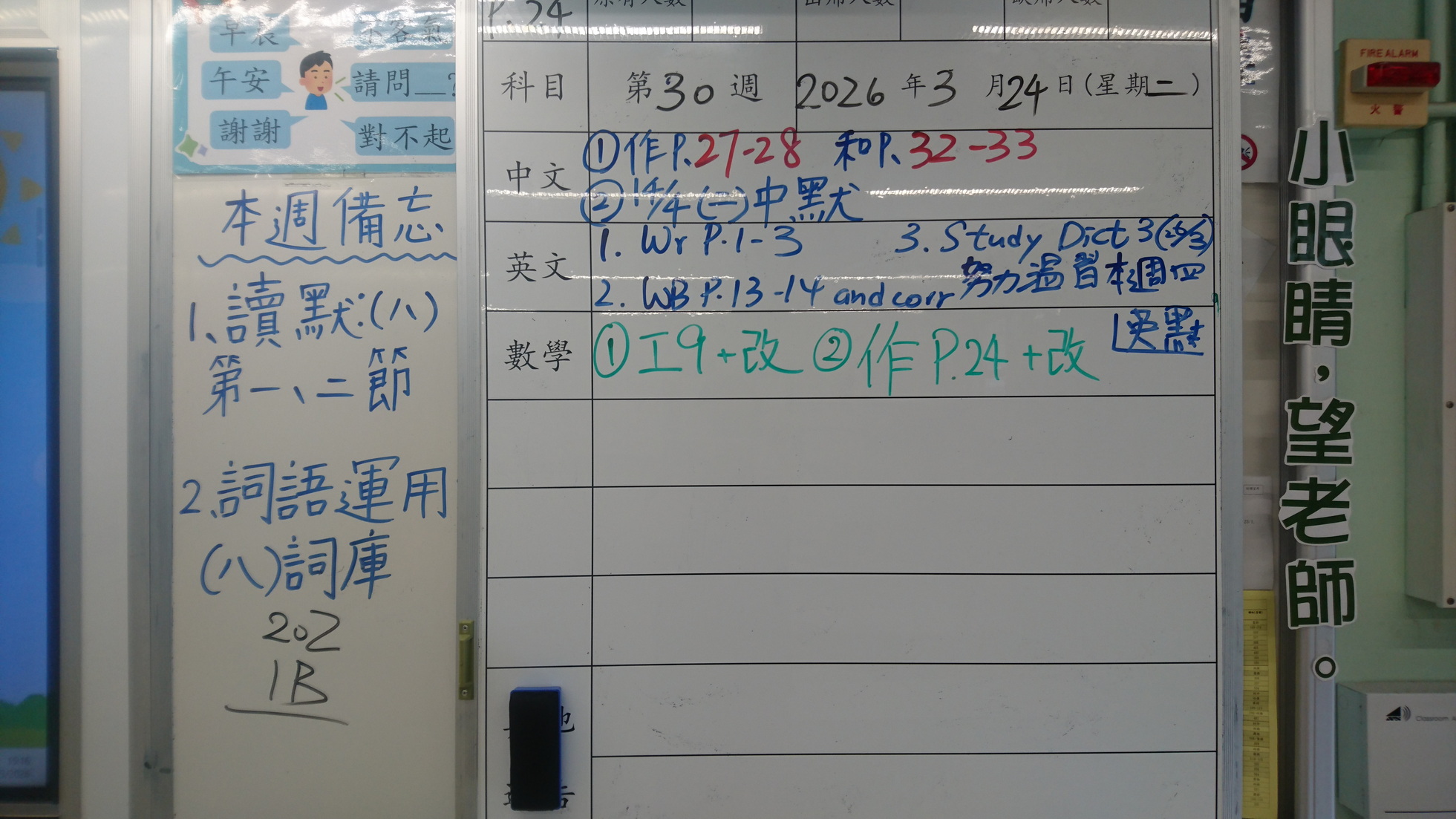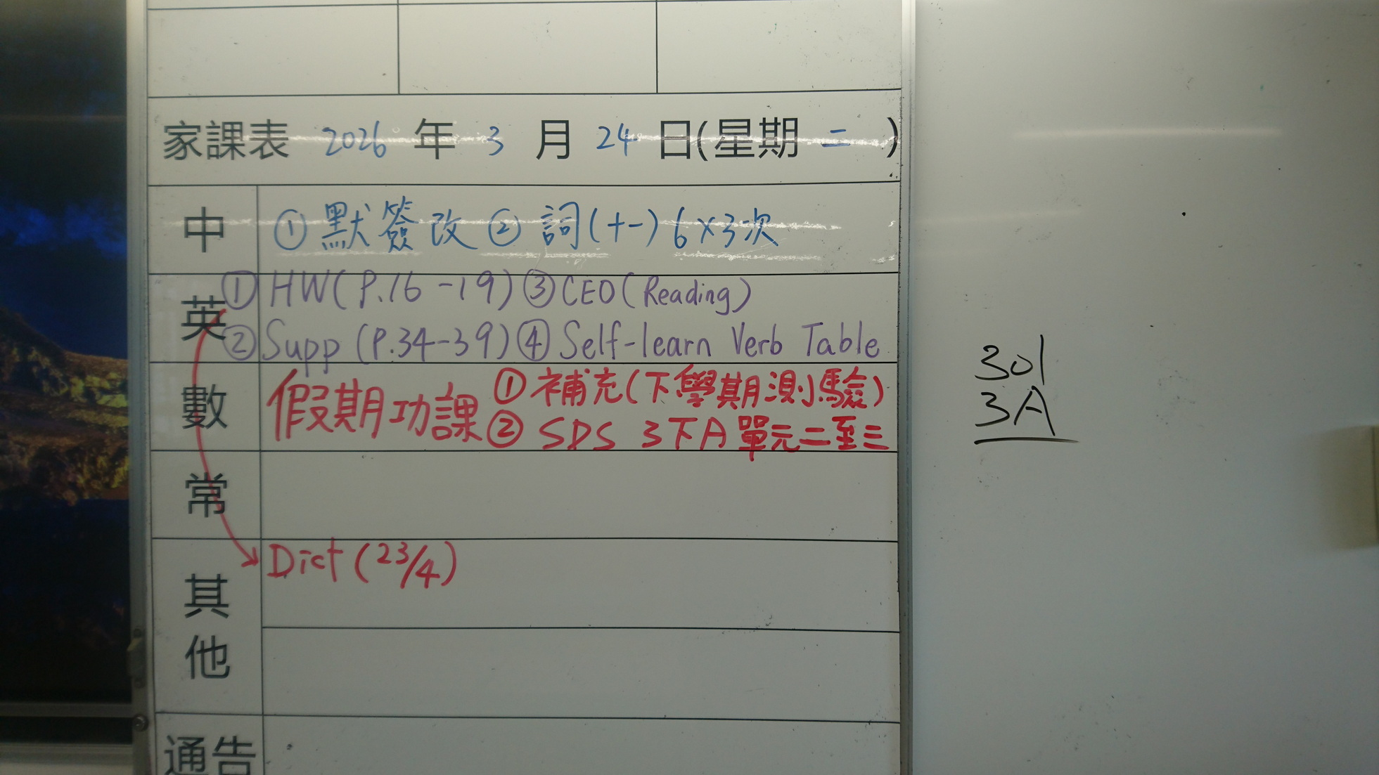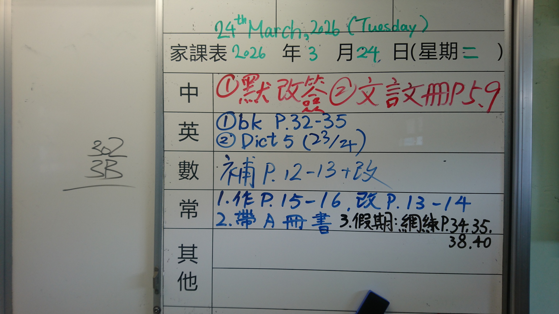 四年級家課代號表