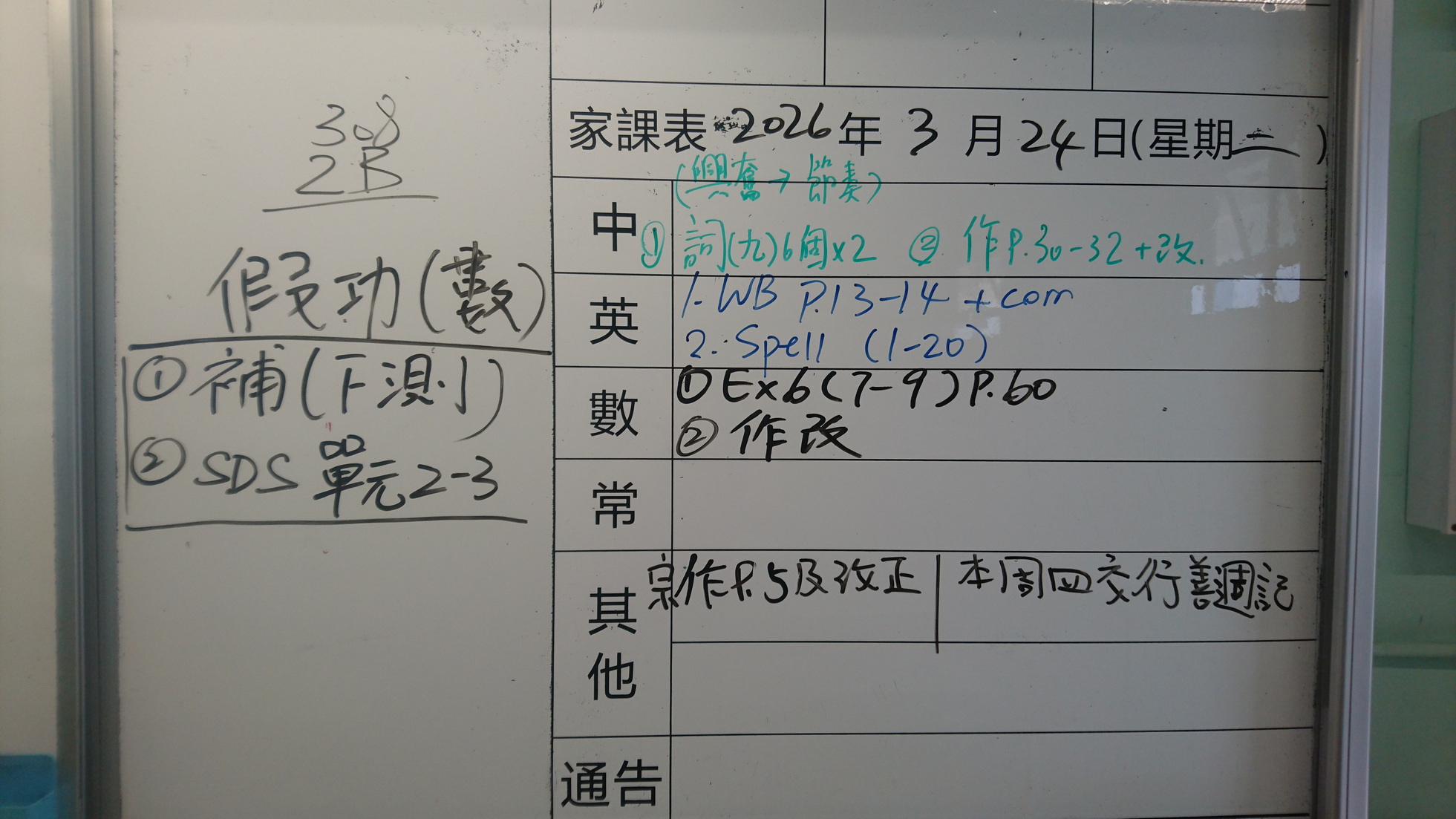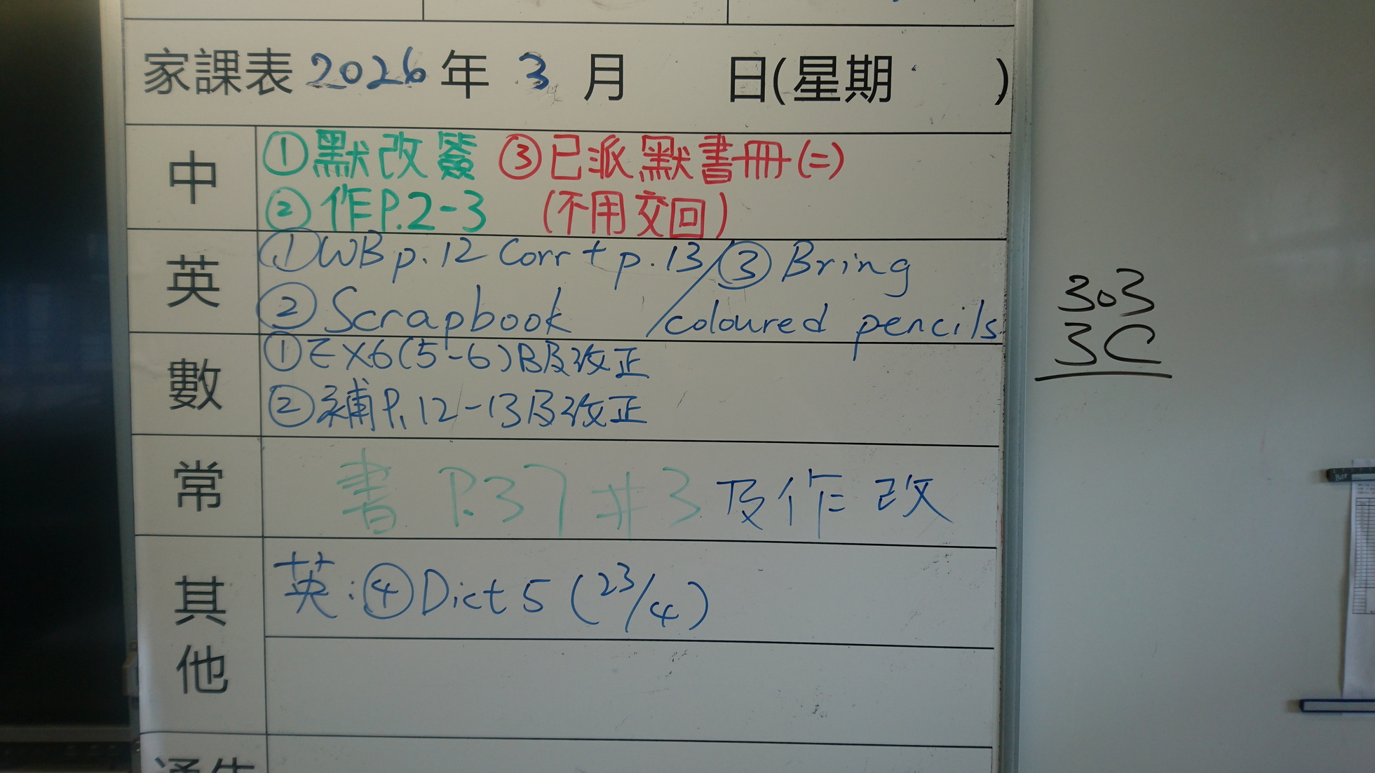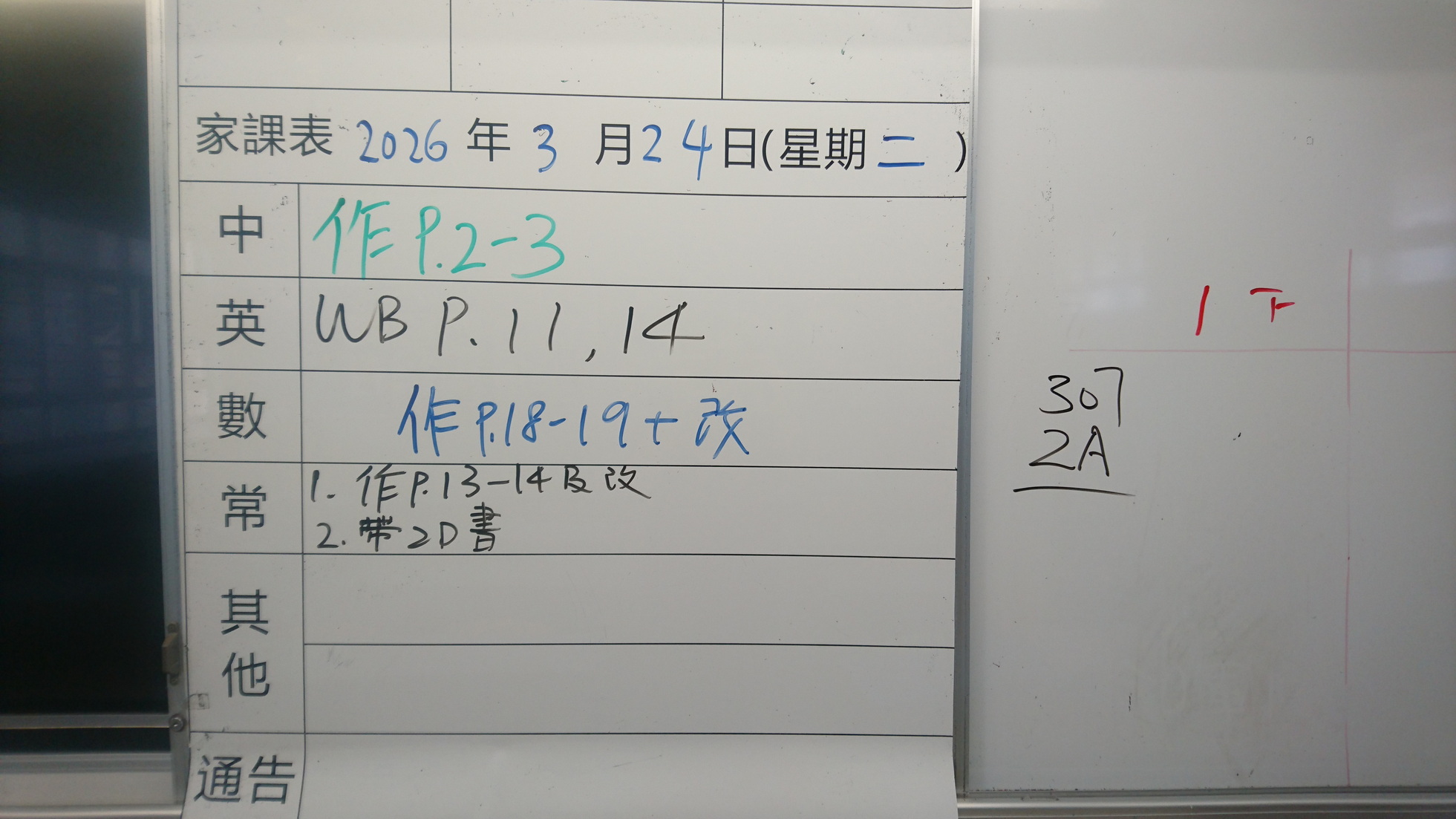 二至三年級家課代號表