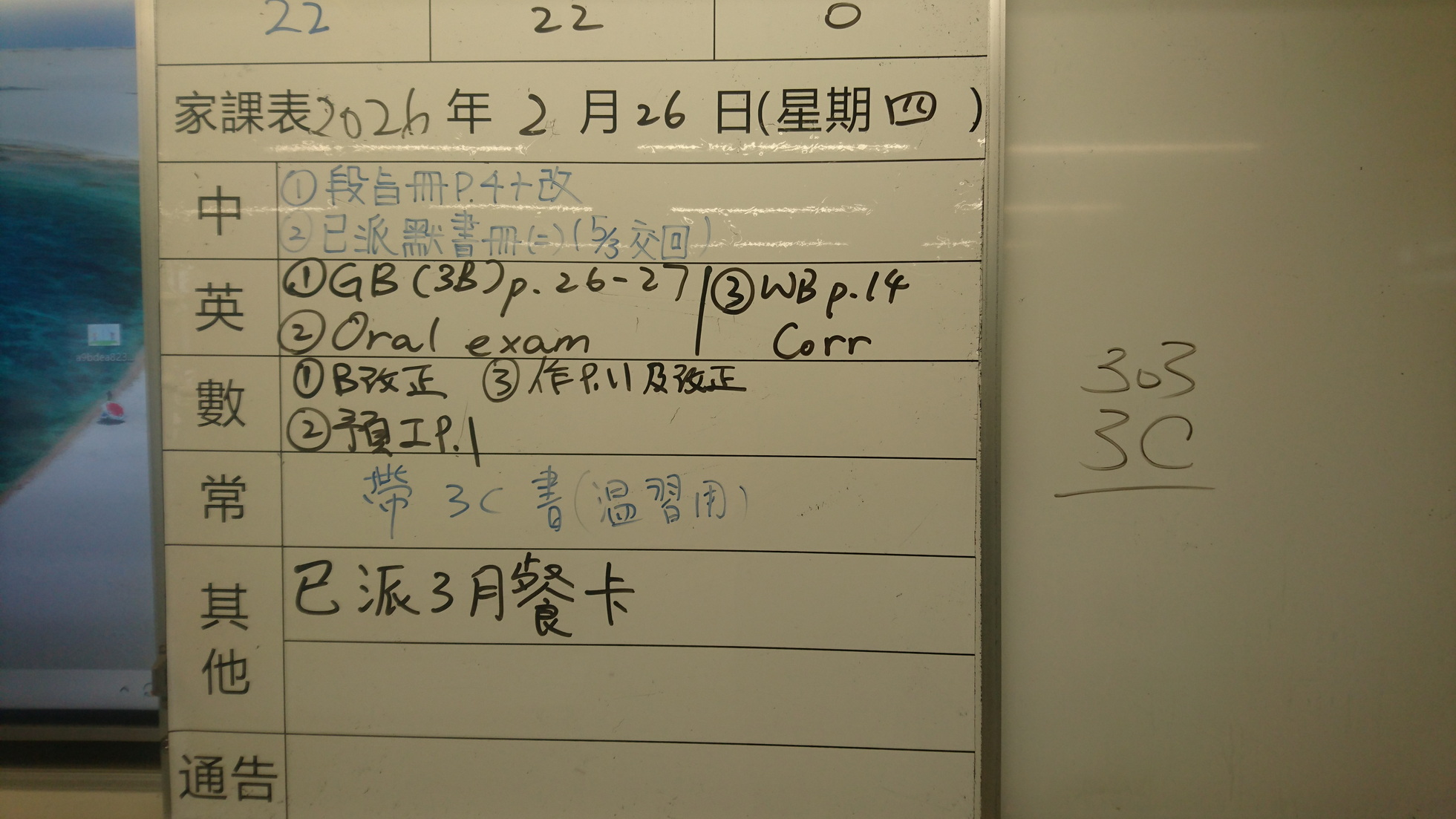 二至三年級家課代號表
