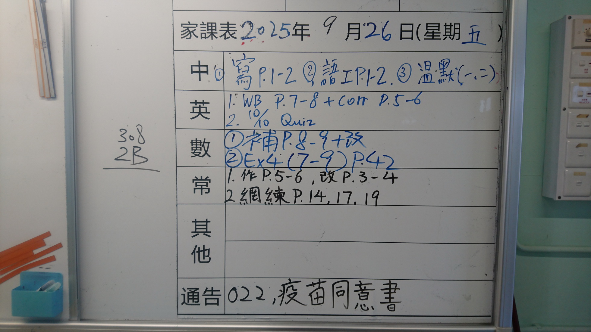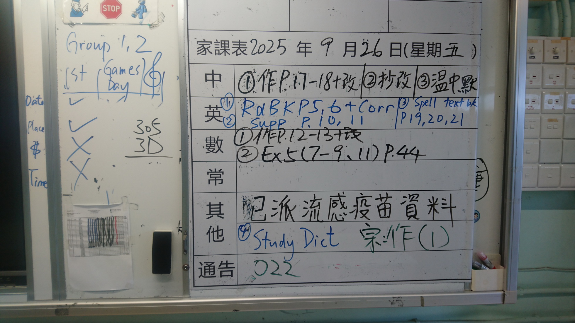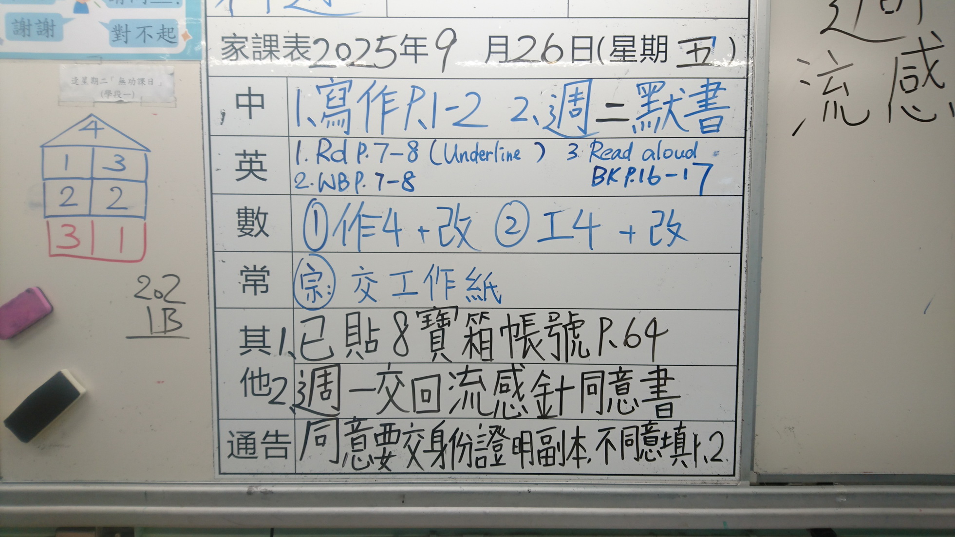 四年級家課代號表