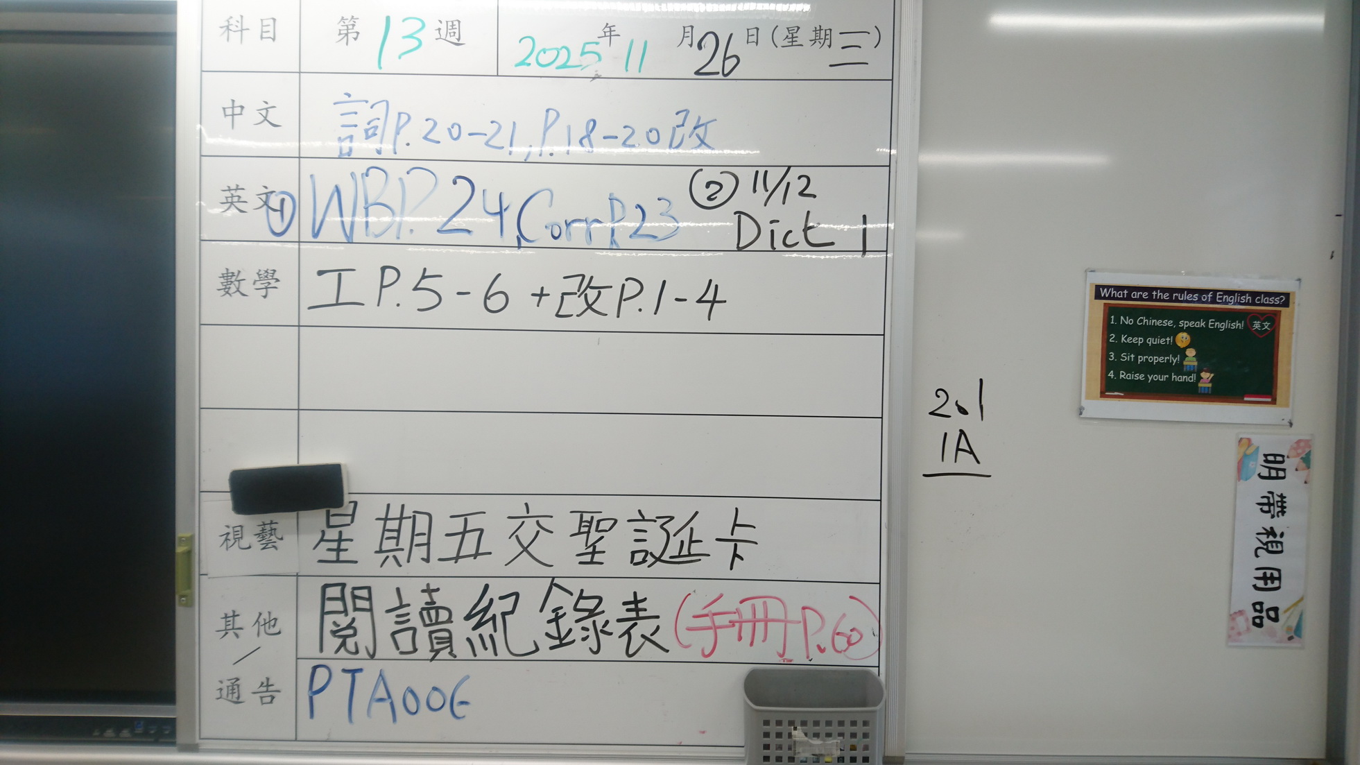 一年級家課代號表