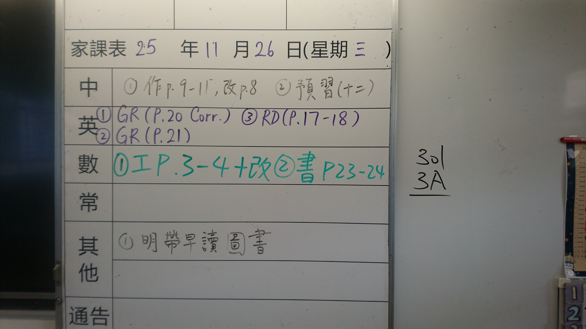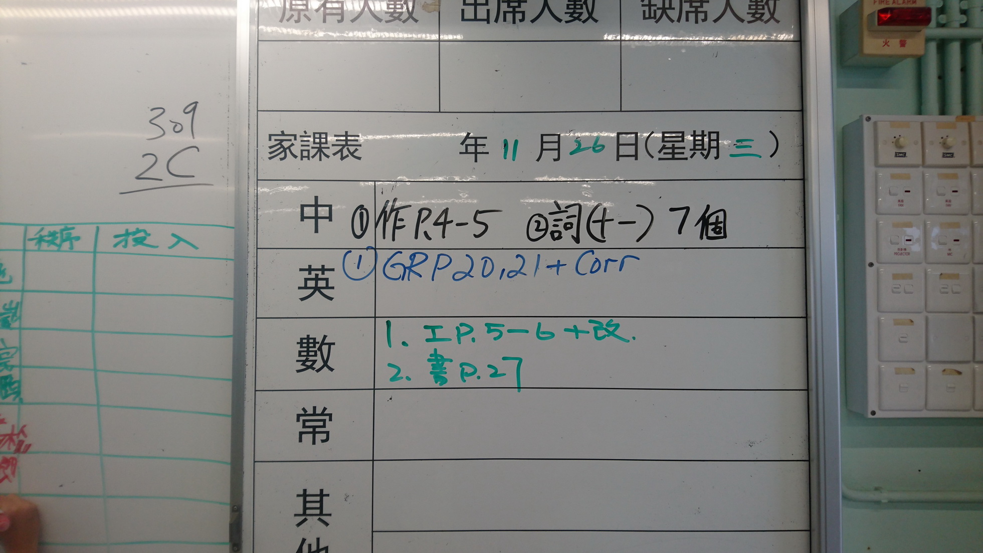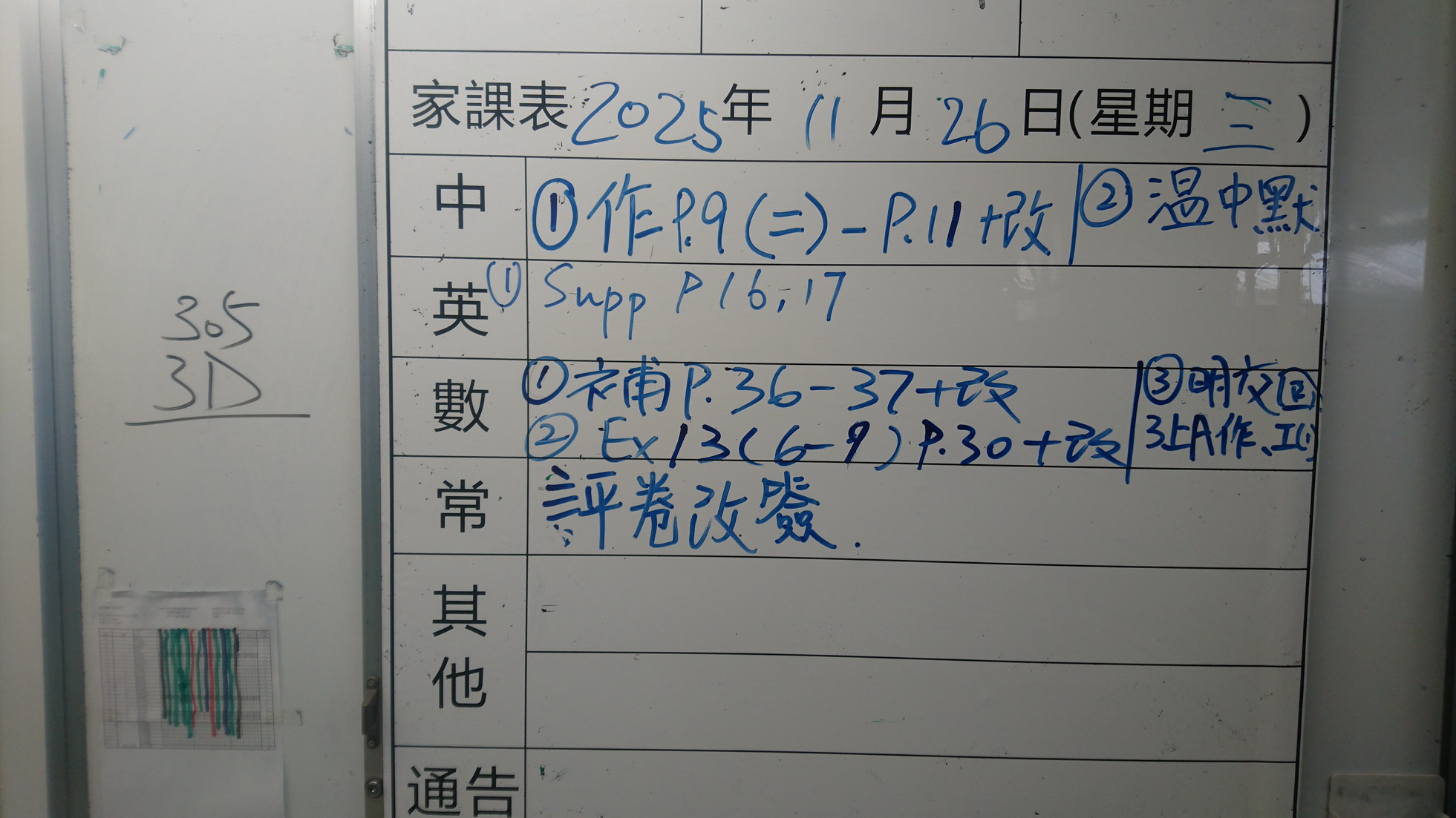 四年級家課代號表