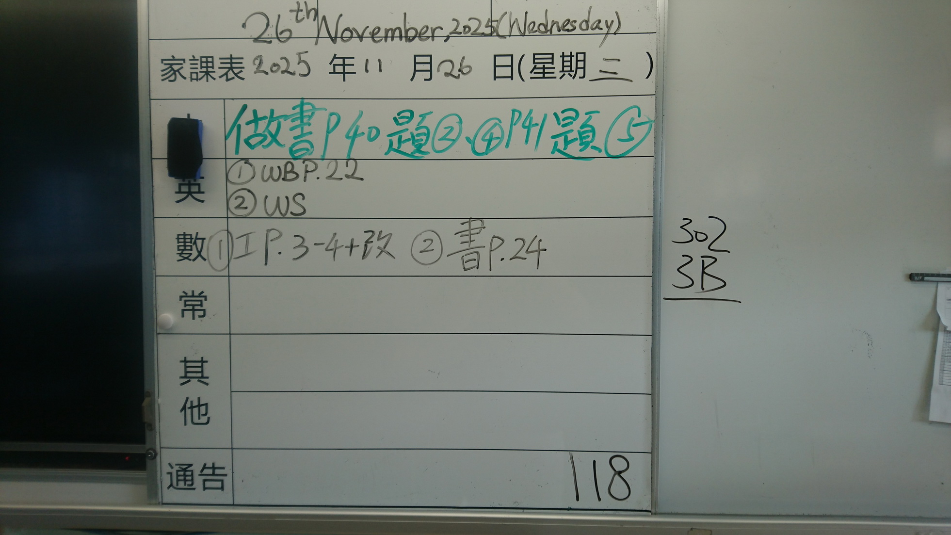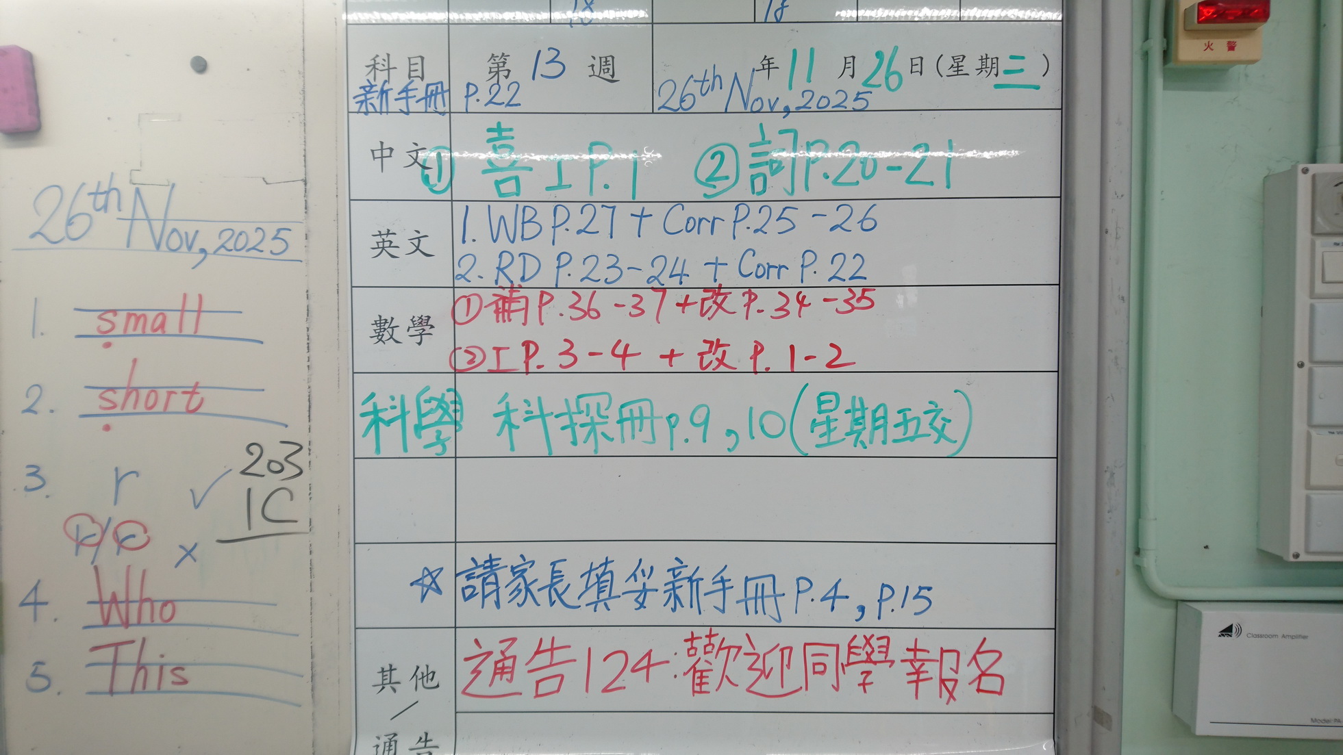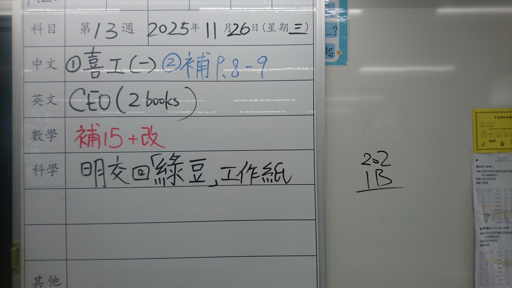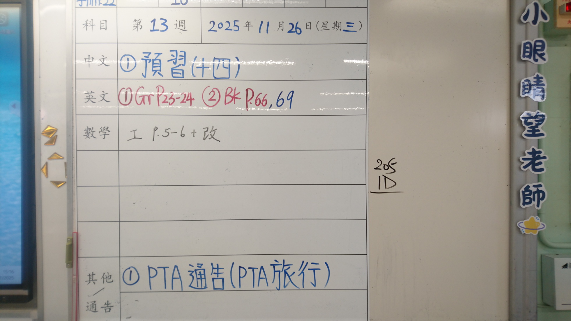 四年級家課代號表