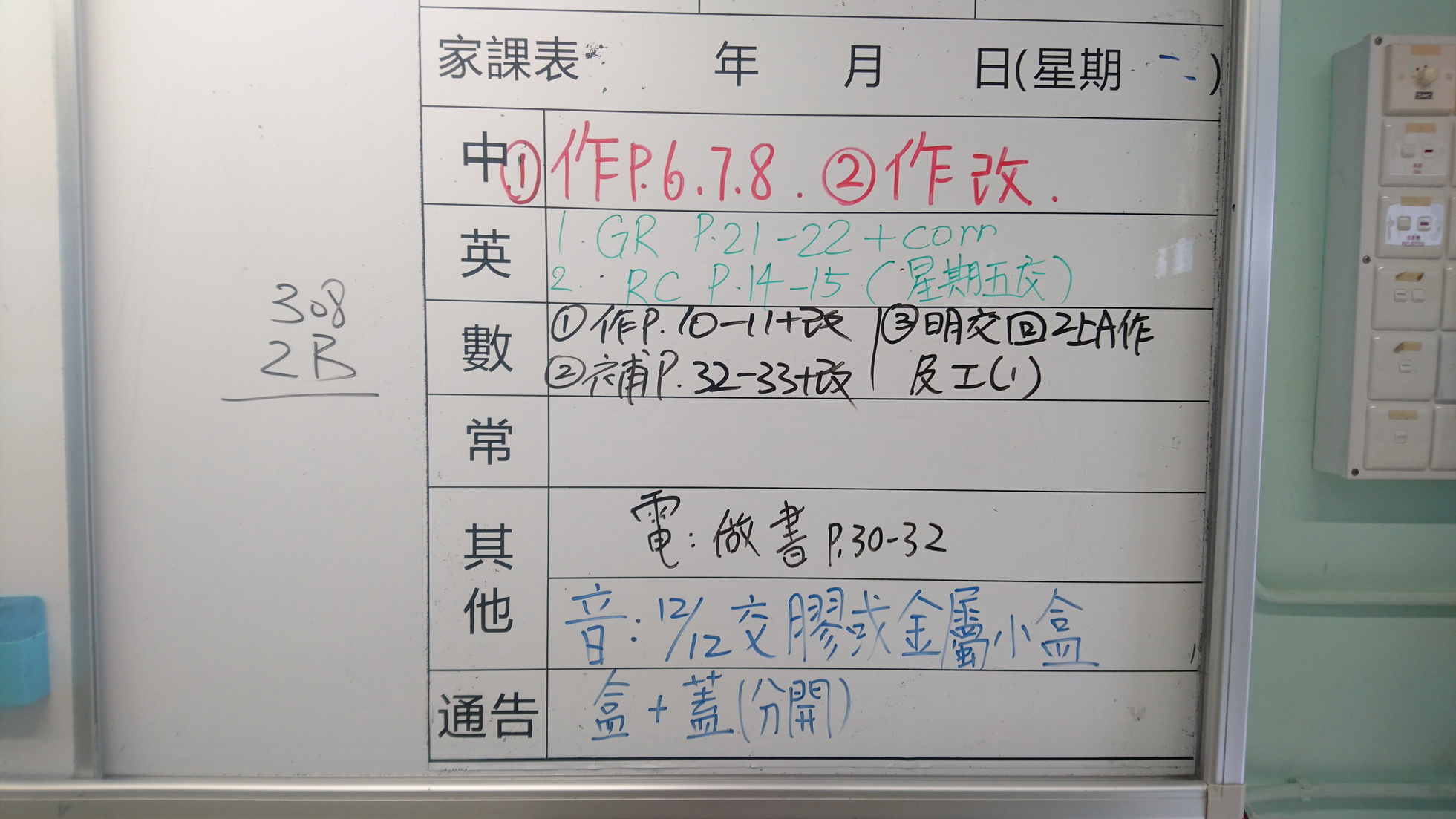 五至六年級家課代號表