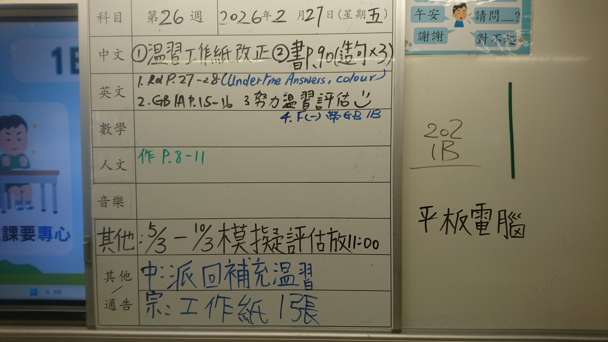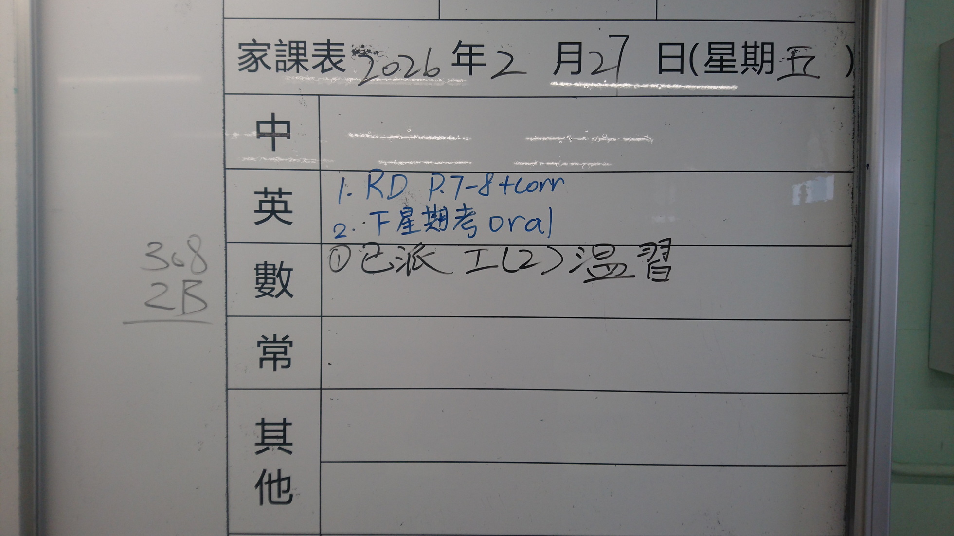 四年級家課代號表