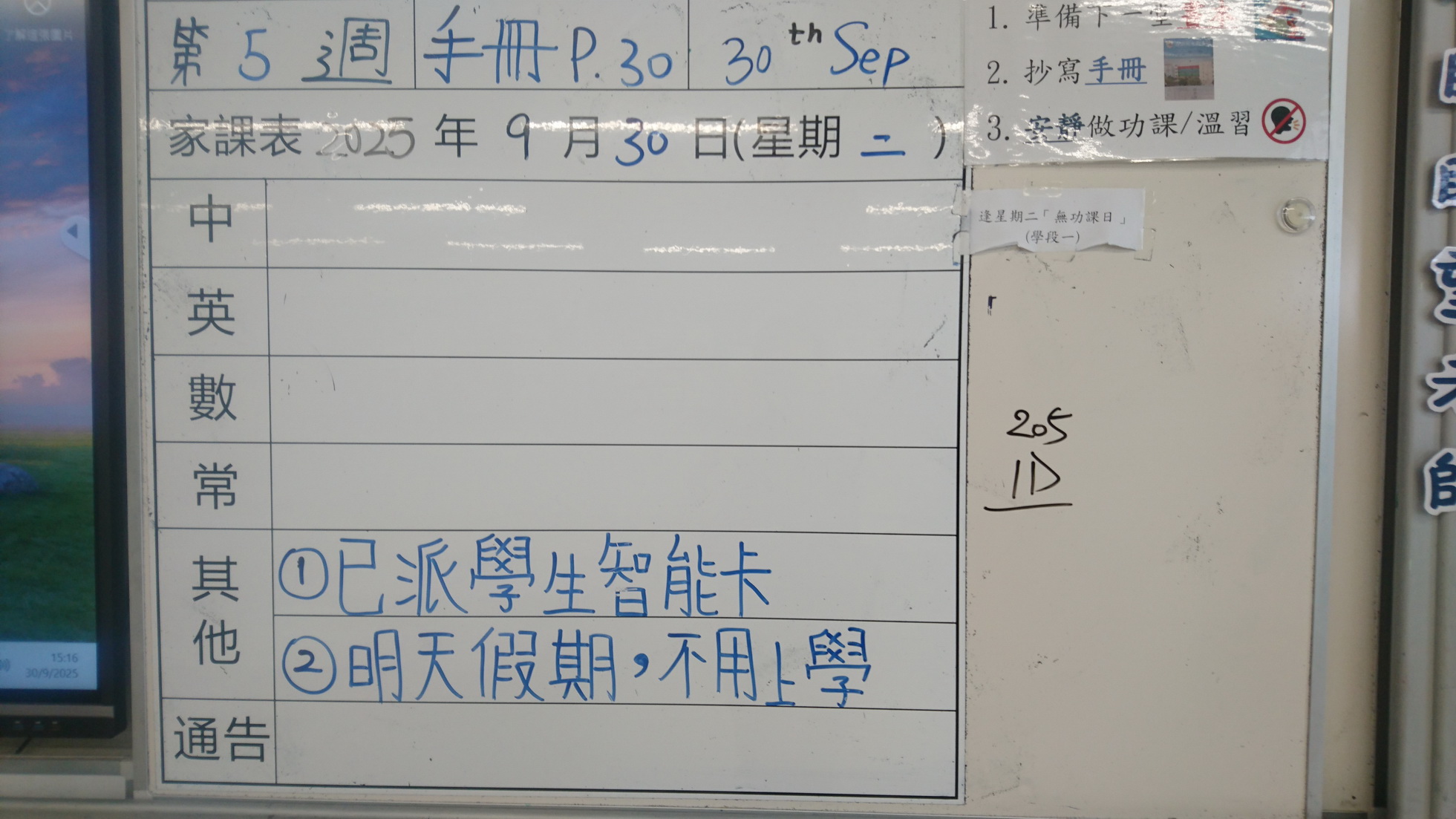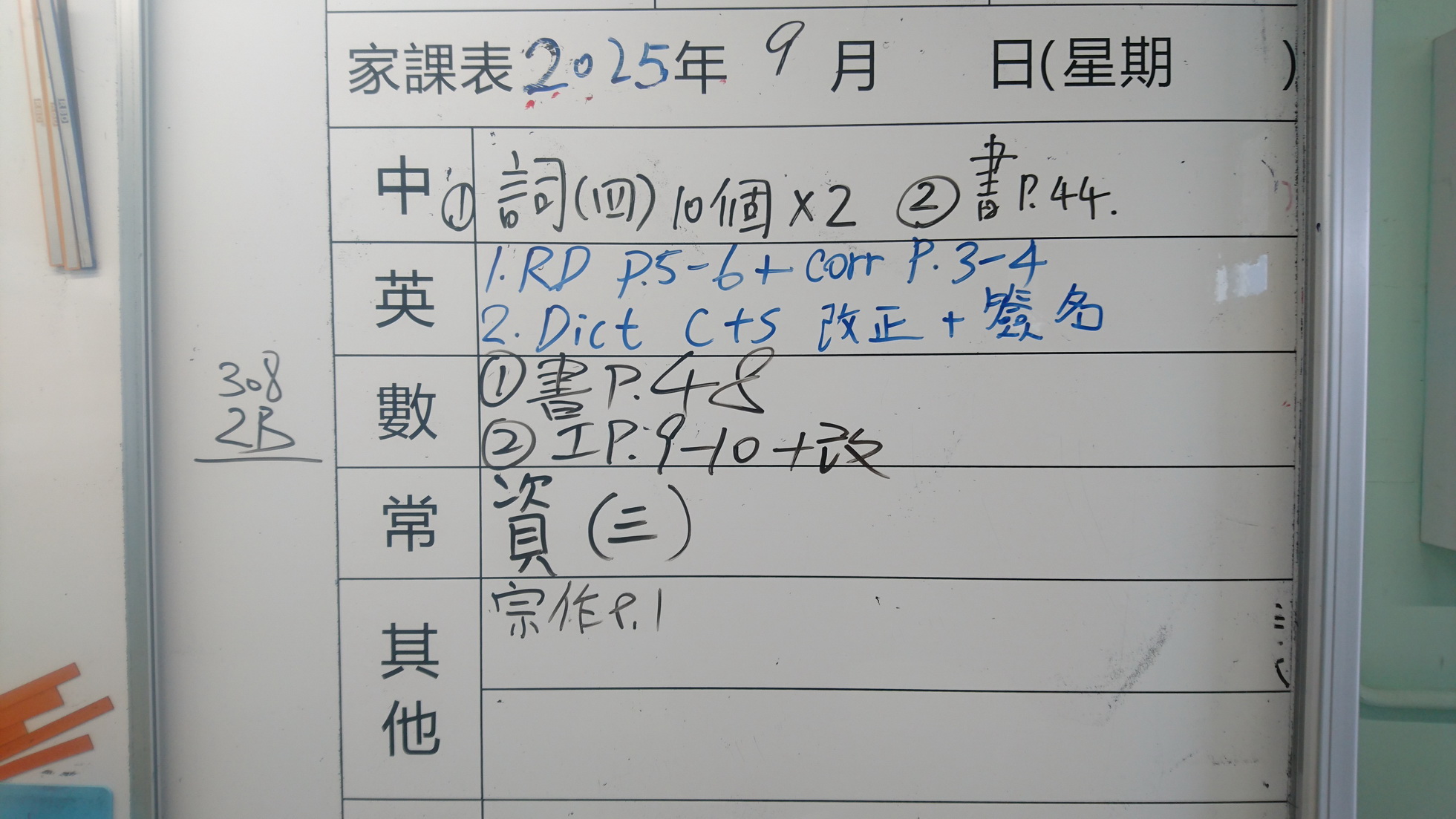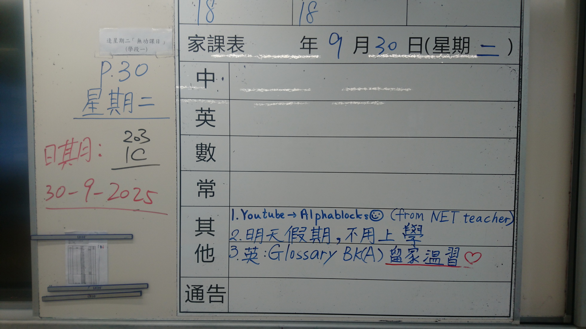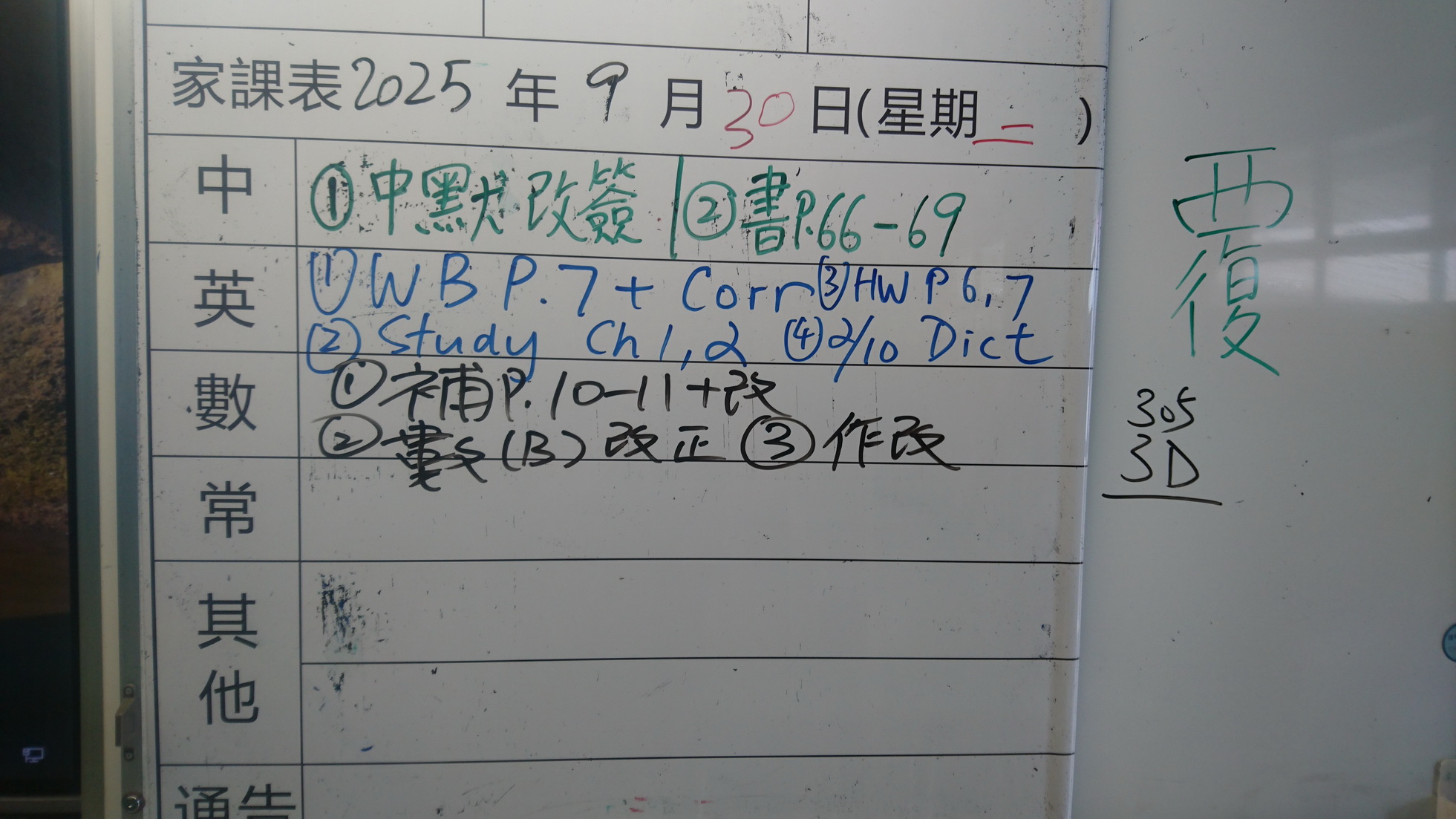 四年級家課代號表
