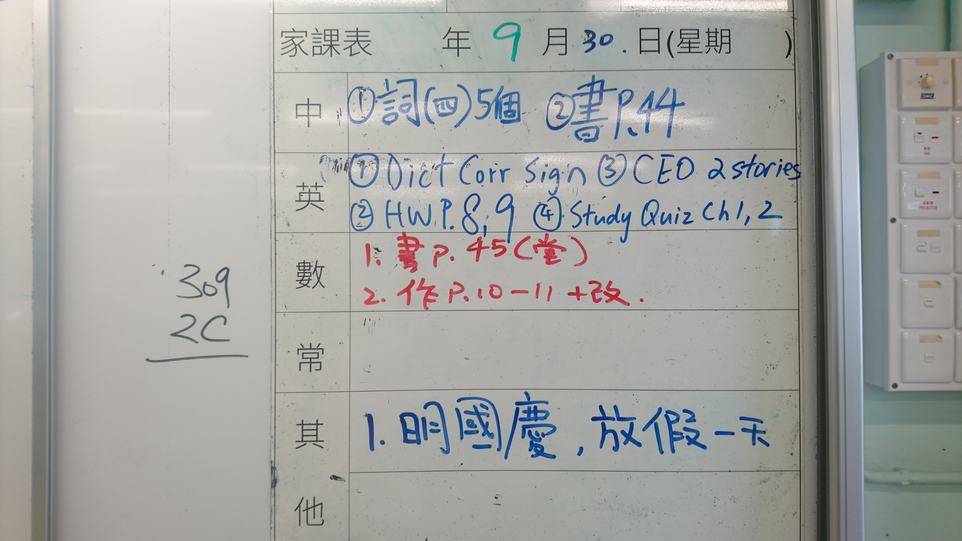 五至六年級家課代號表