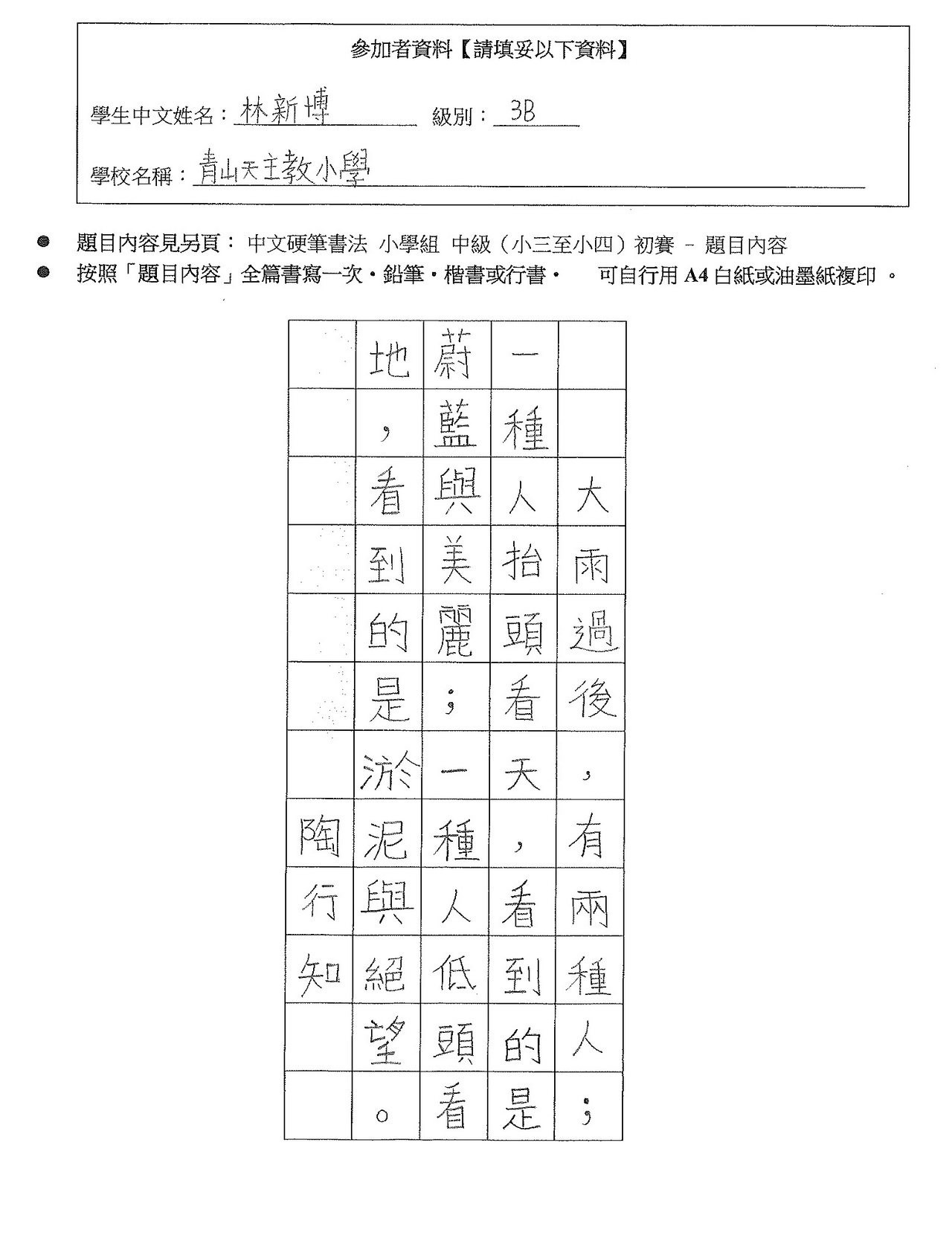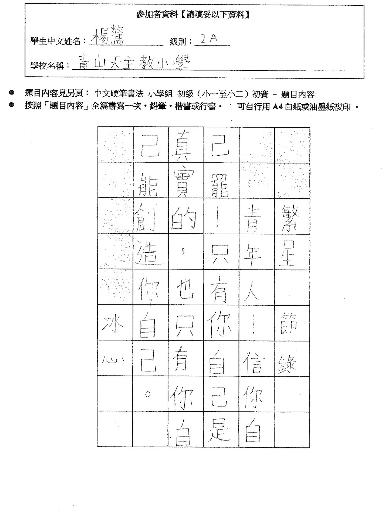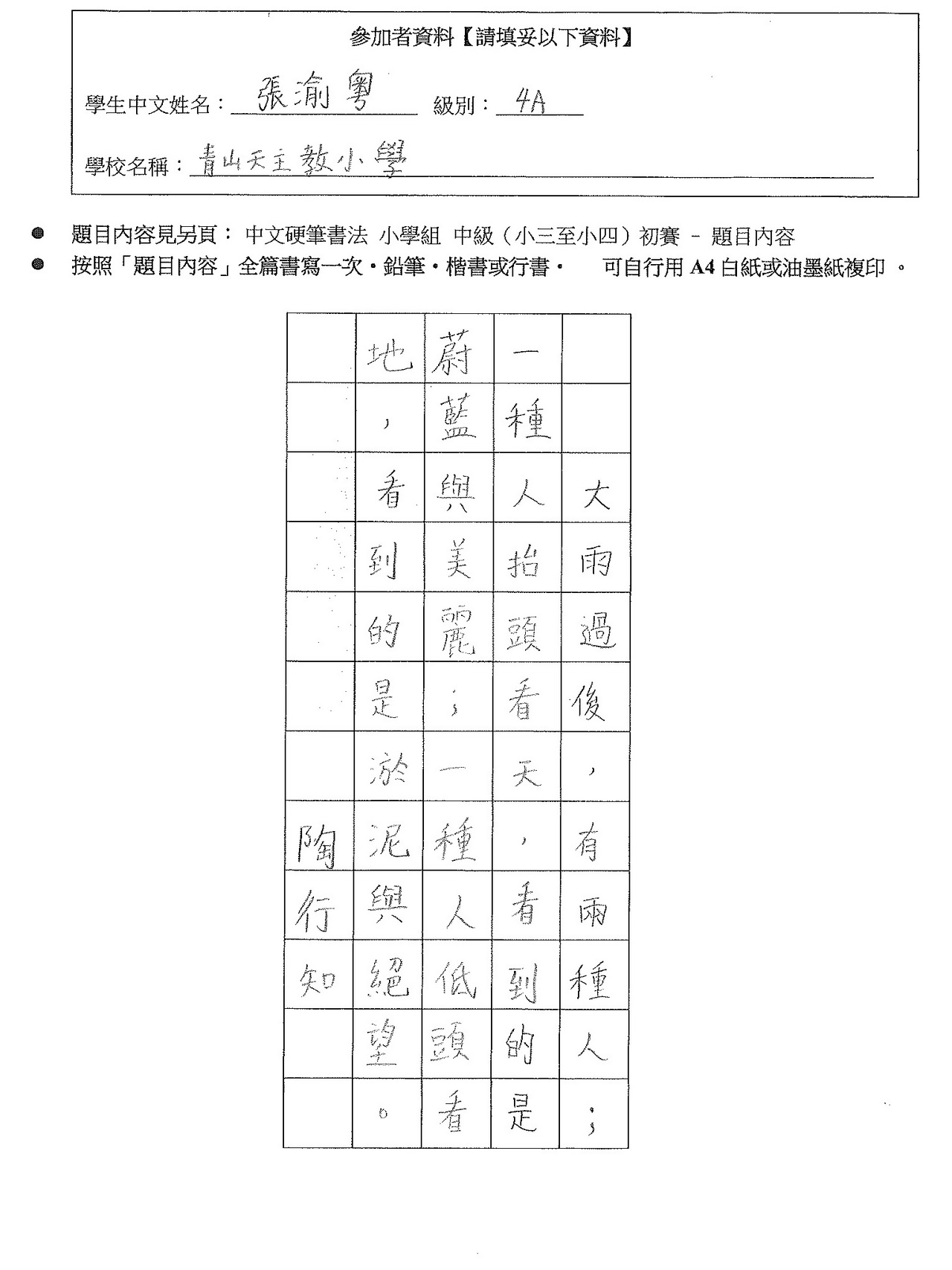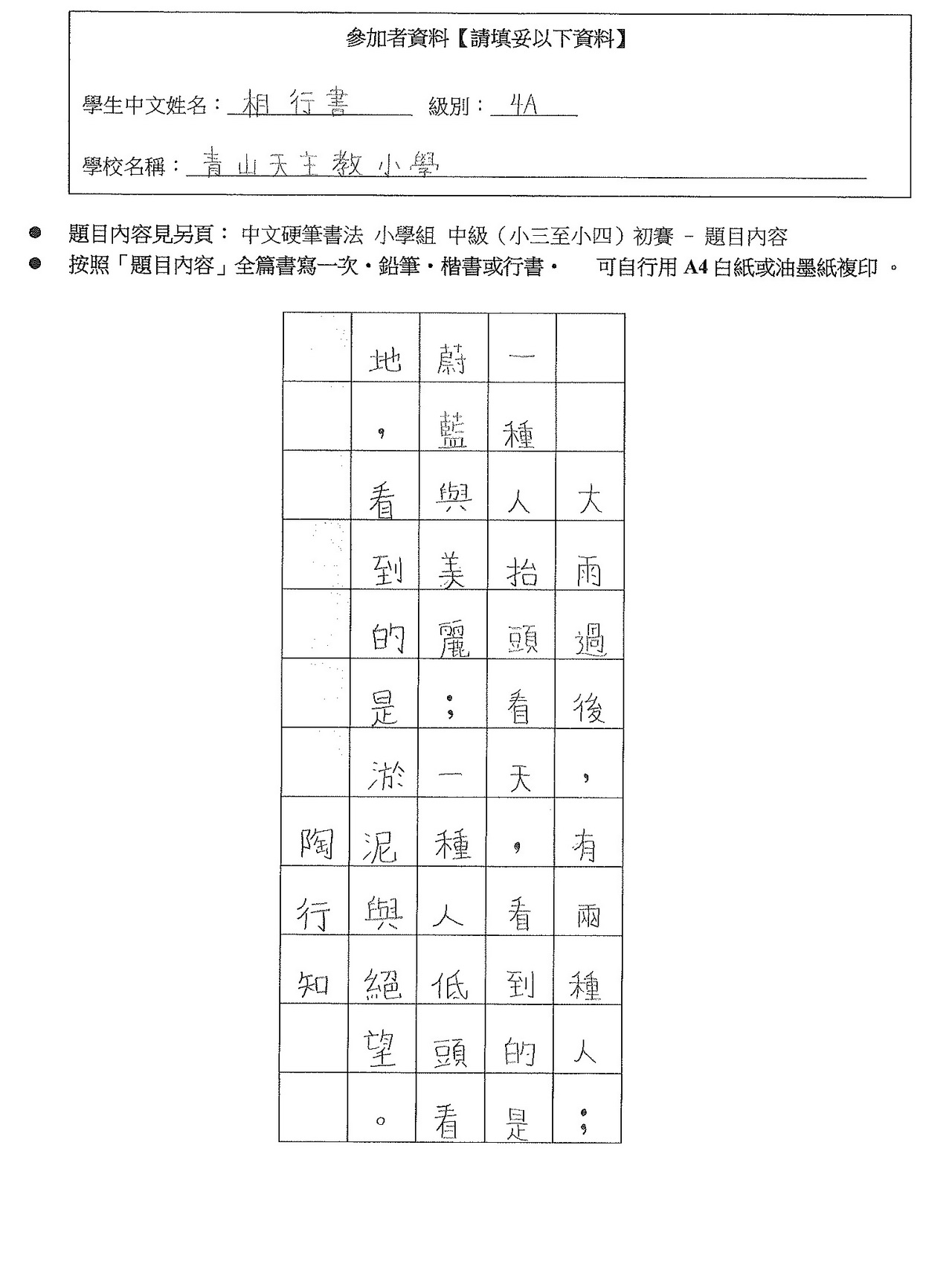 青山天主教小學 2017-2018年度 中文硬筆書法比賽得獎學生名單 |