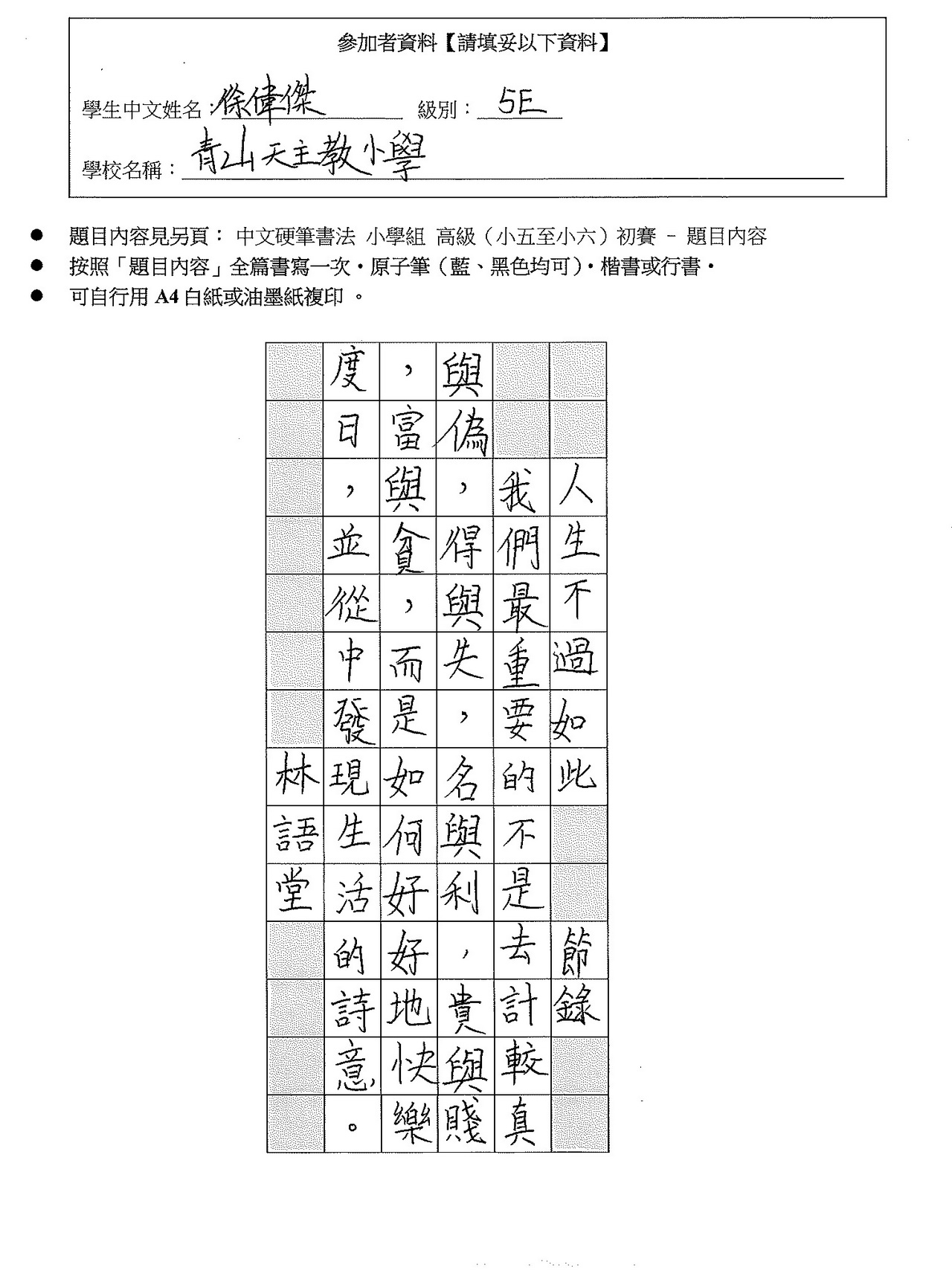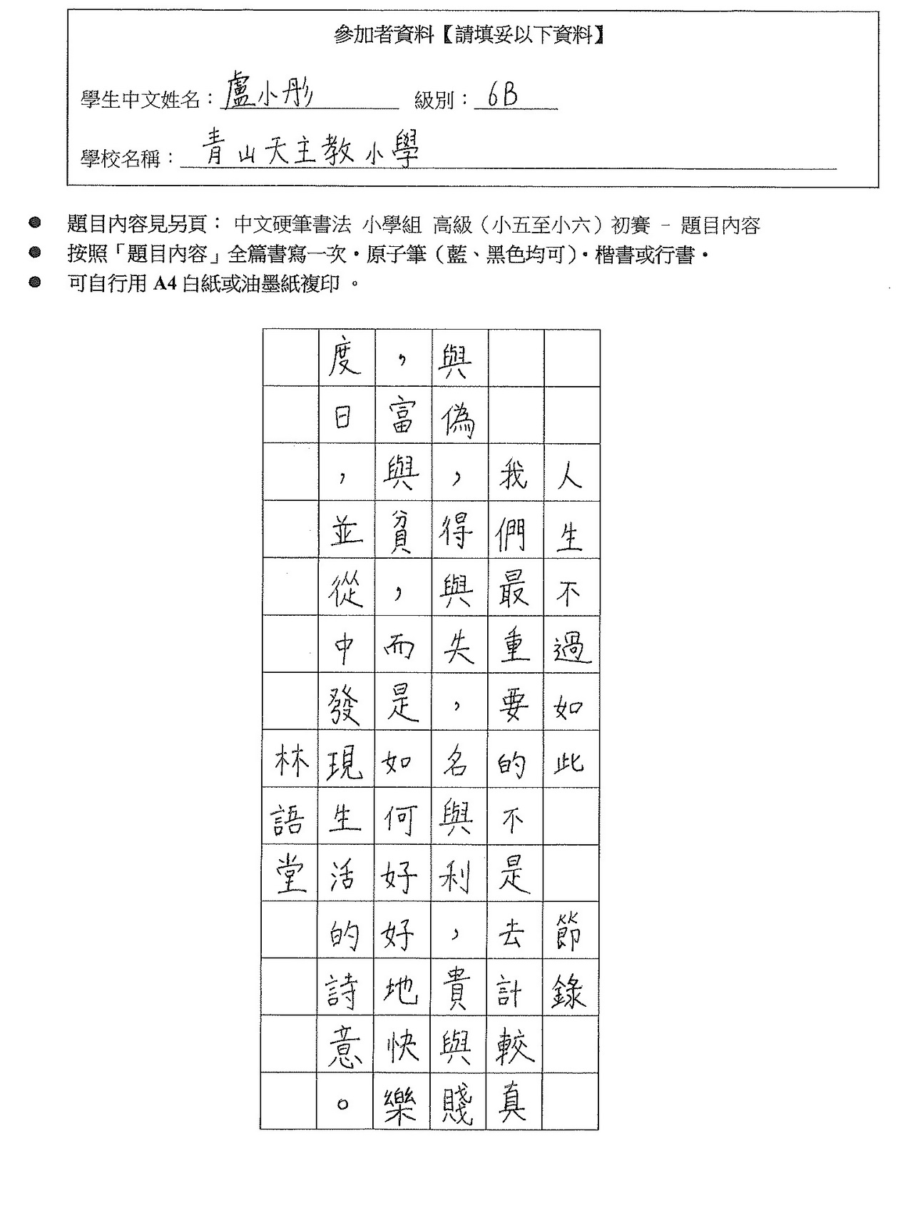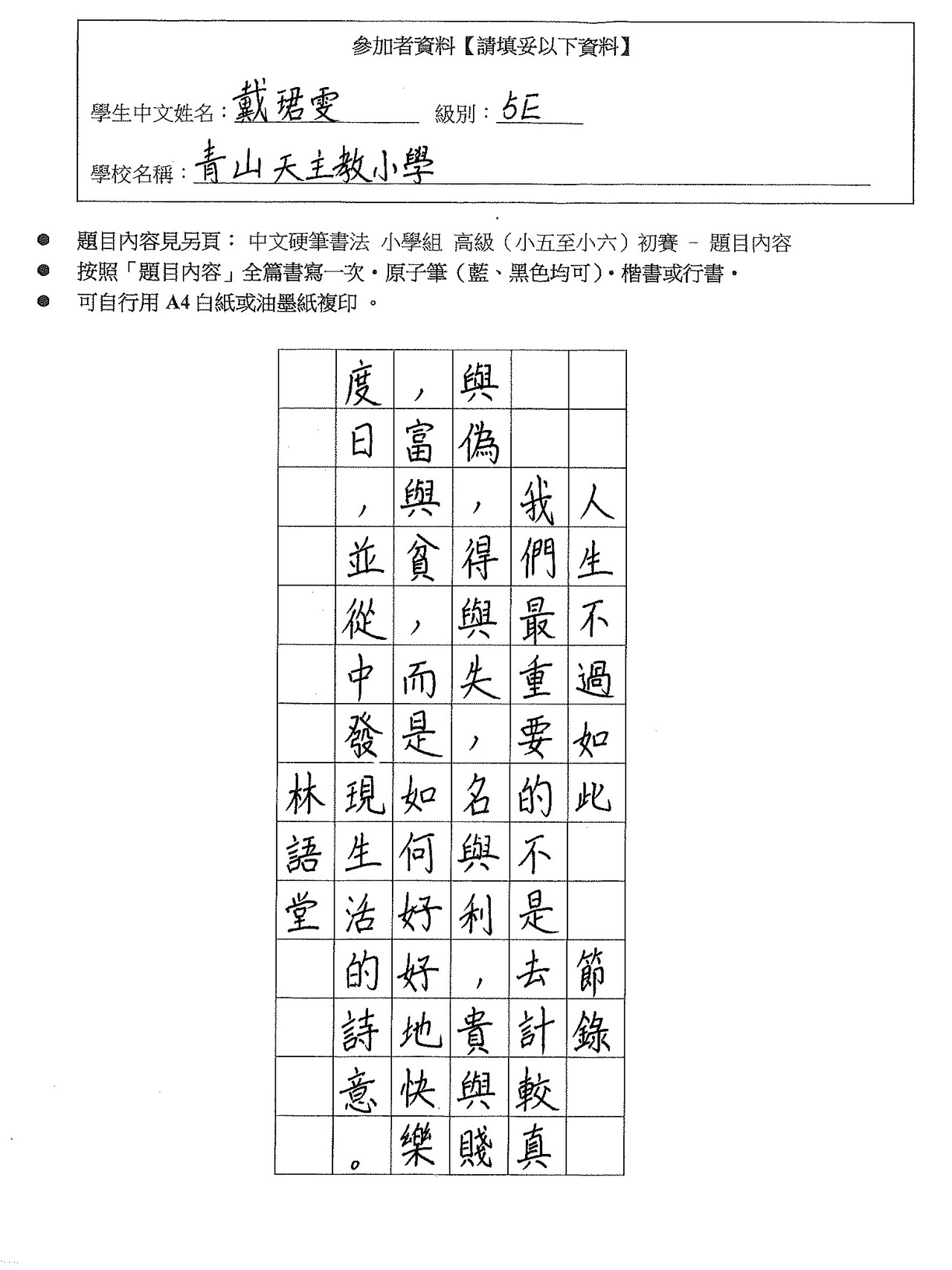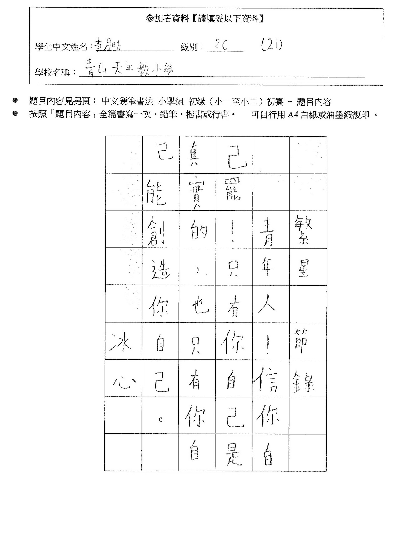 青山天主教小學 2017-2018年度 中文硬筆書法比賽得獎學生名單 |