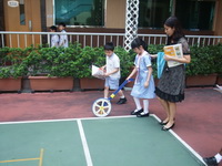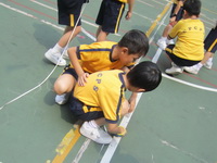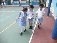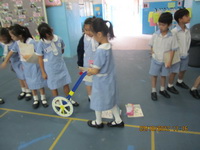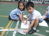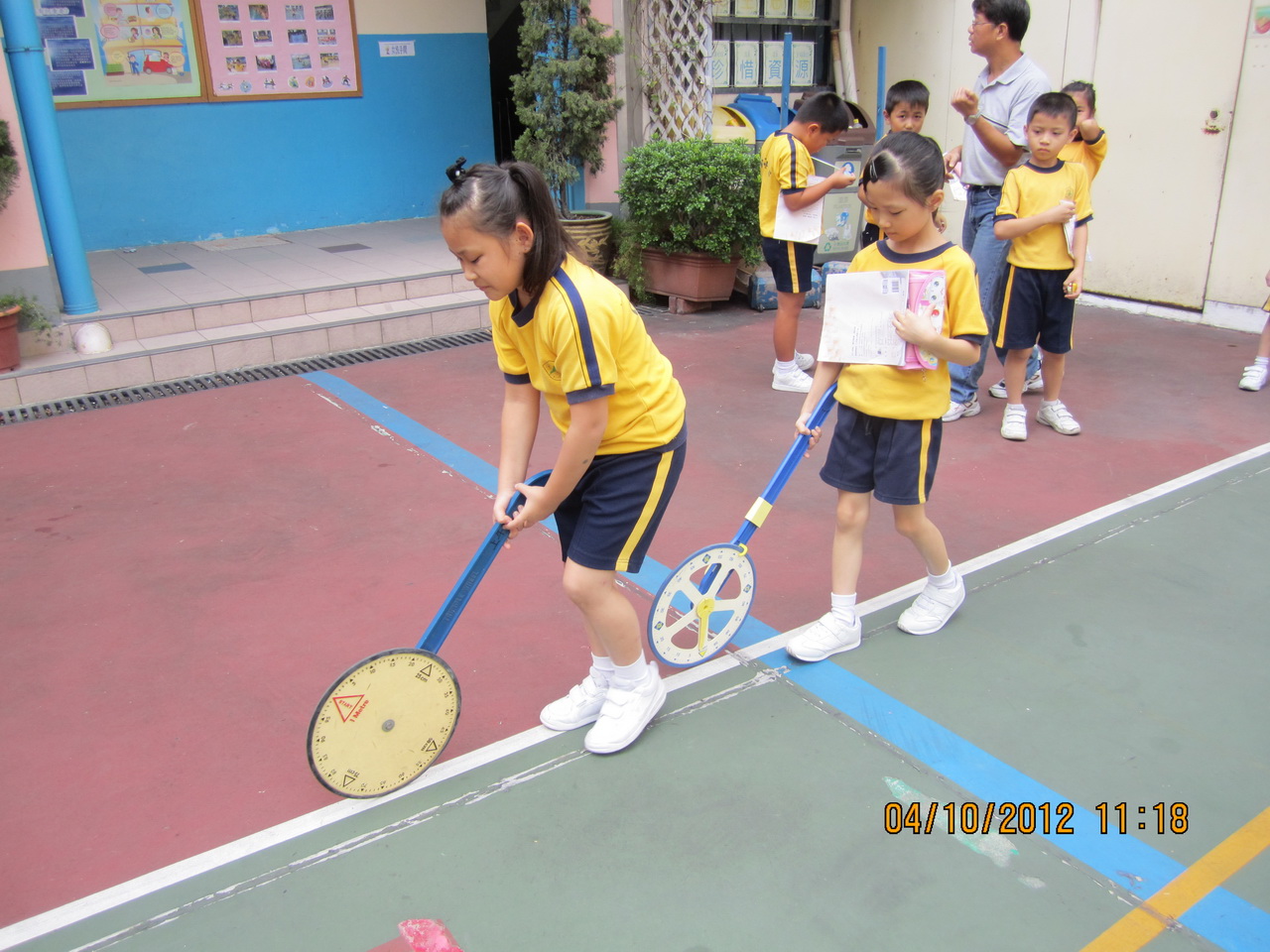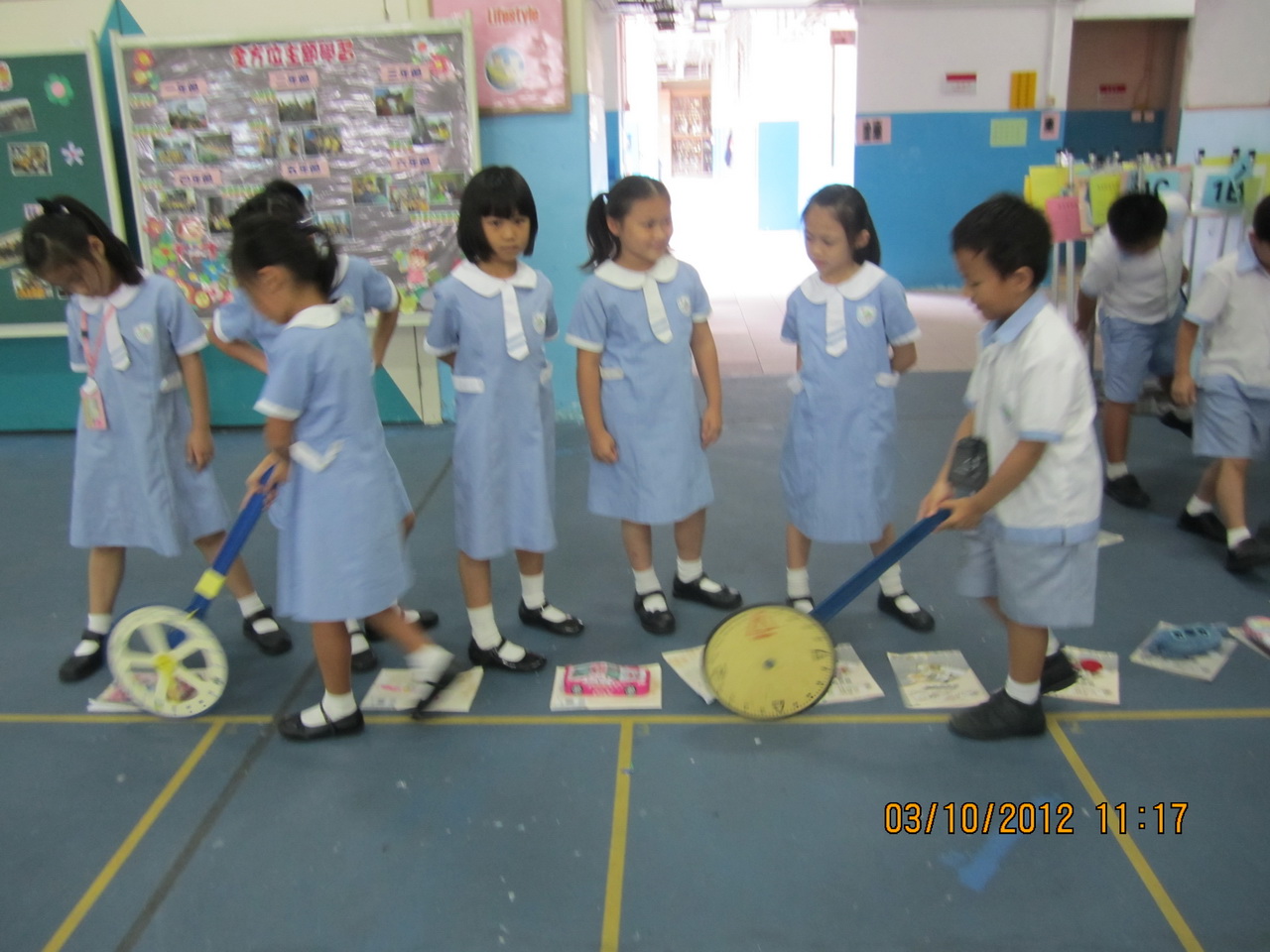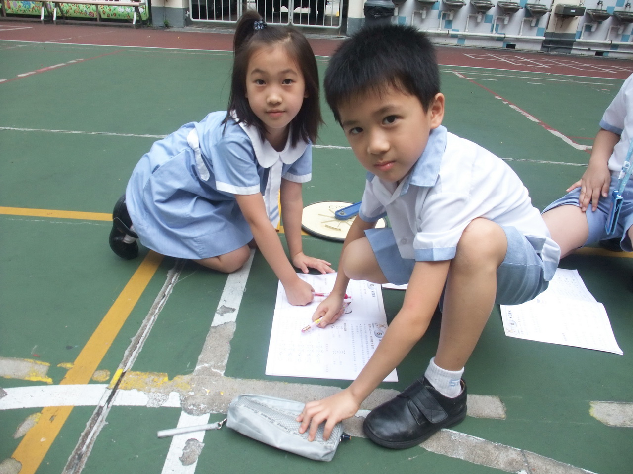 二年級的同學利用滾輪量度籃球場的長度,從活動中學習,同學們都非常投入。