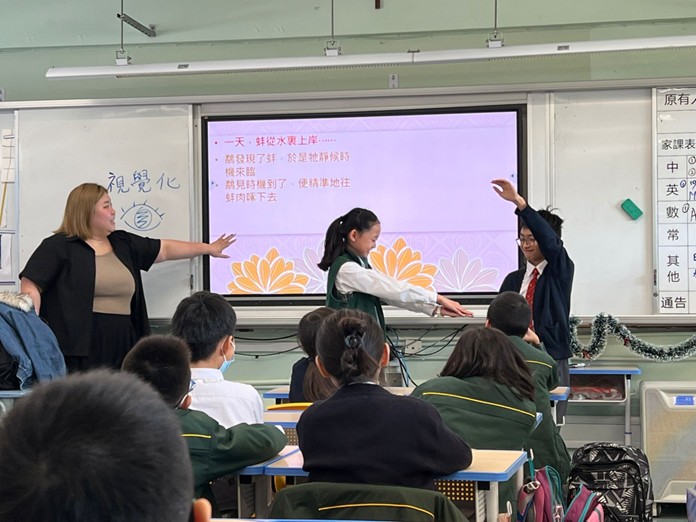 7A班戲劇組的導師為學生上了一節有趣的文言文戲劇課堂,學生認真投入地上課。