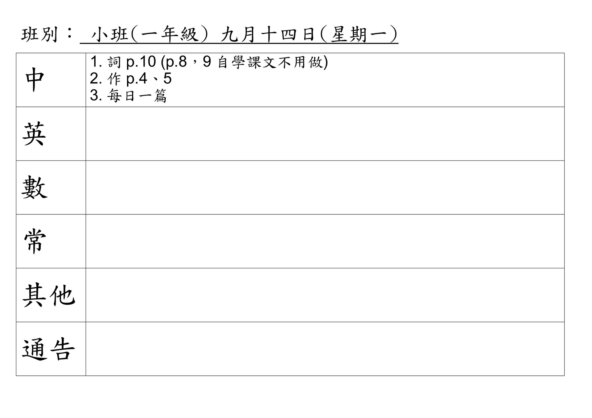 網上家課冊只供參考,一切內容以學生手冊為準。