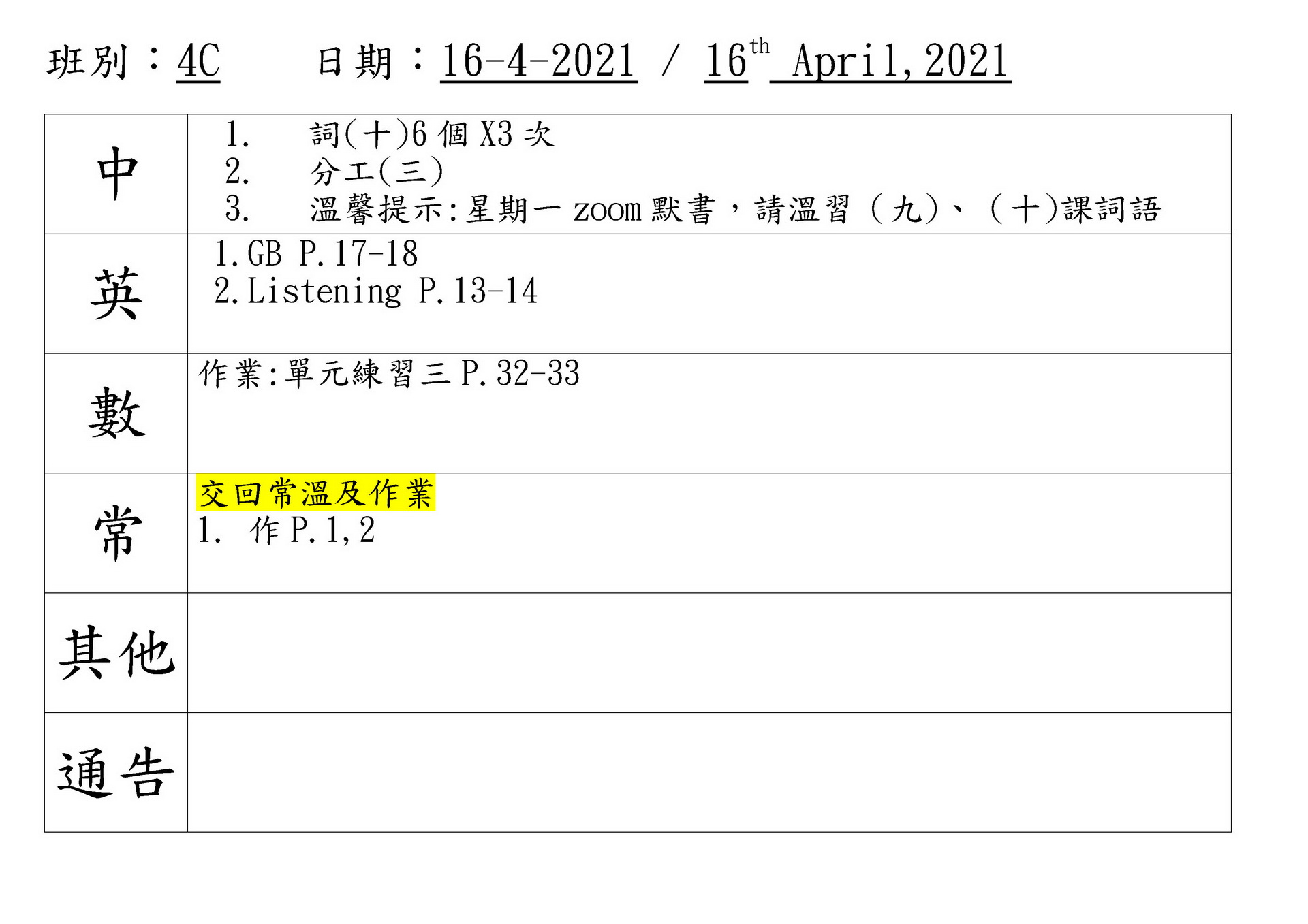 網上家課冊只供參考,一切內容以學生手冊為準。