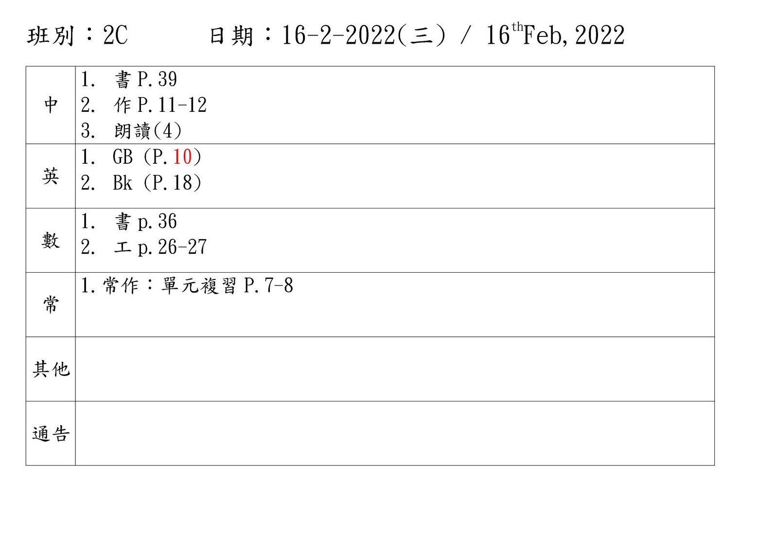 網上家課冊只供參考,一切內容以學生手冊為準。